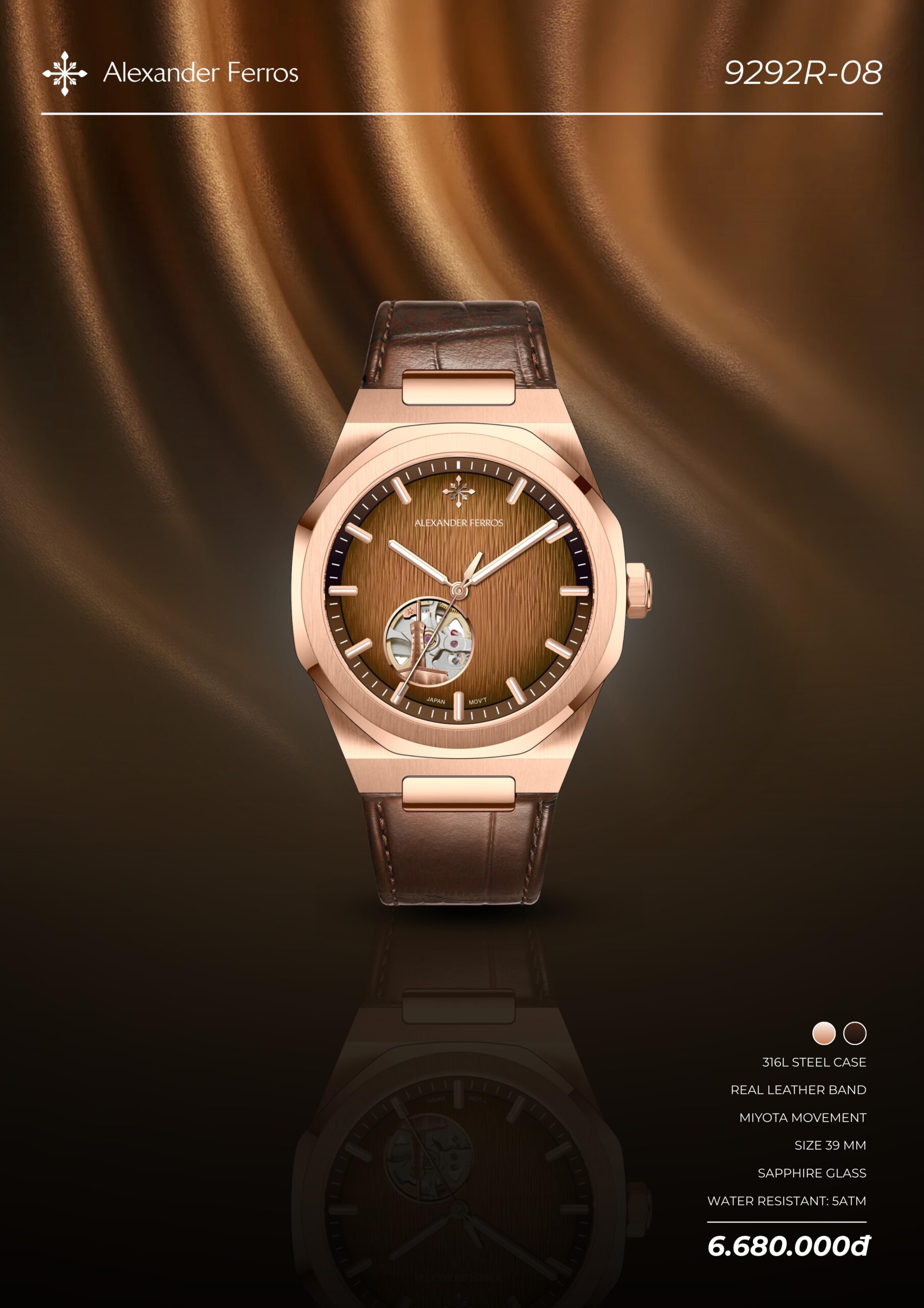 Là mẫu đồng hồ nam nổi bật với phong cách thể thao lịch lãm và thiết kế hiện đại. Mặt số với nhiều phiên bản màu được trang trí bằng họa tiết vân gỗ độc đáo, kết hợp cùng bộ kim và cọc số dạng vạch phủ dạ quang, giúp dễ dàng quan sát giờ trong điều kiện thiếu sáng. Điểm đặc biệt của mẫu này là thiết kế Open heart góc 7h kết hợp với hình ảnh Cột cờ Dinh Độc Lập mang bản sắc riêng. Vỏ được chế tác từ thép không gỉ cao cấp, mang đến sự bền bỉ và cảm giác chắc chắn khi đeo. Viền bezel cách điệu với các đường cắt góc cạnh, tăng thêm vẻ nam tính và năng động.