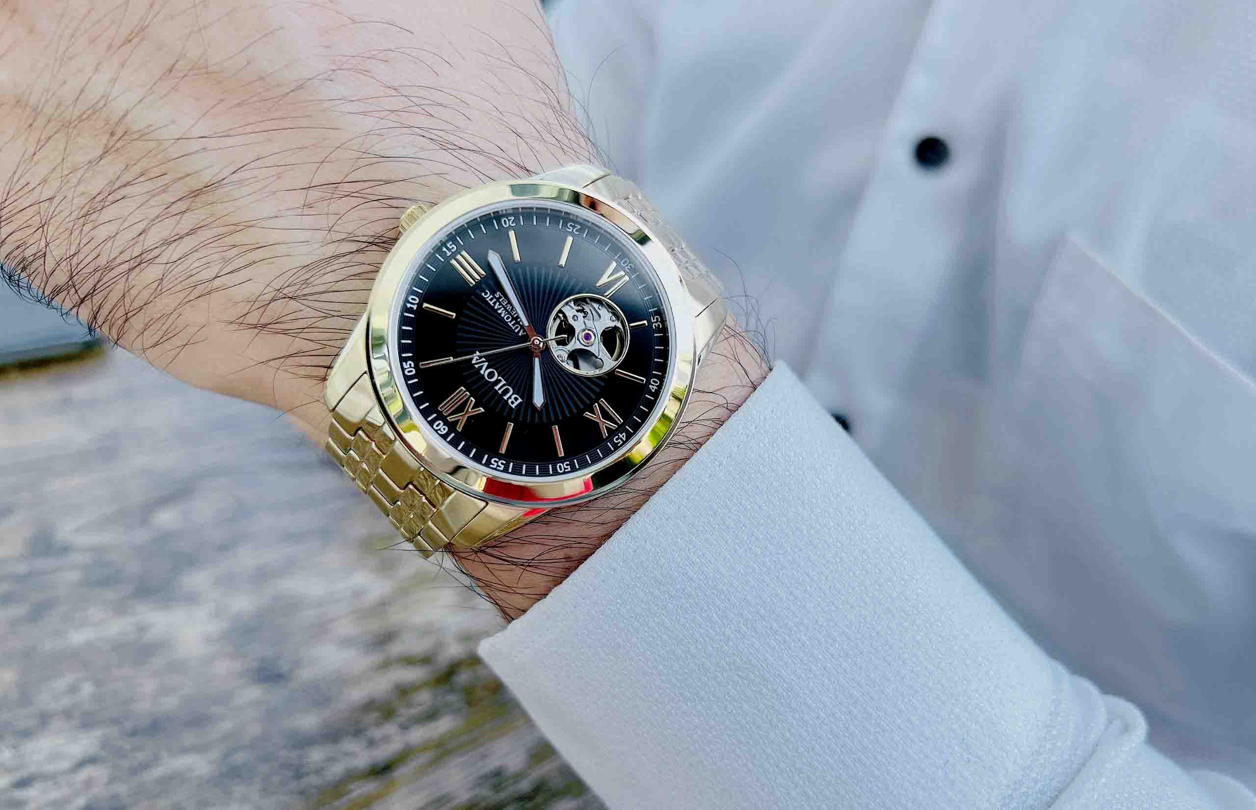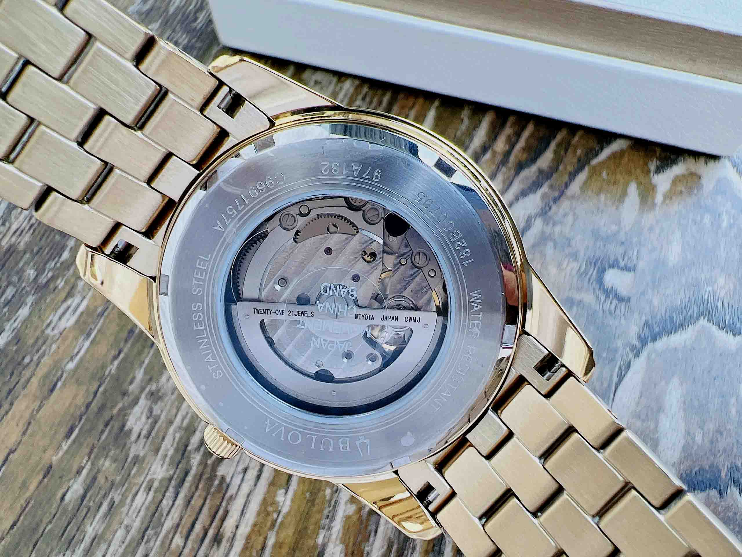 Đồng Hồ Nam Bulova 97A132 Automatic Dây Sắt Vàng Mặt Đen