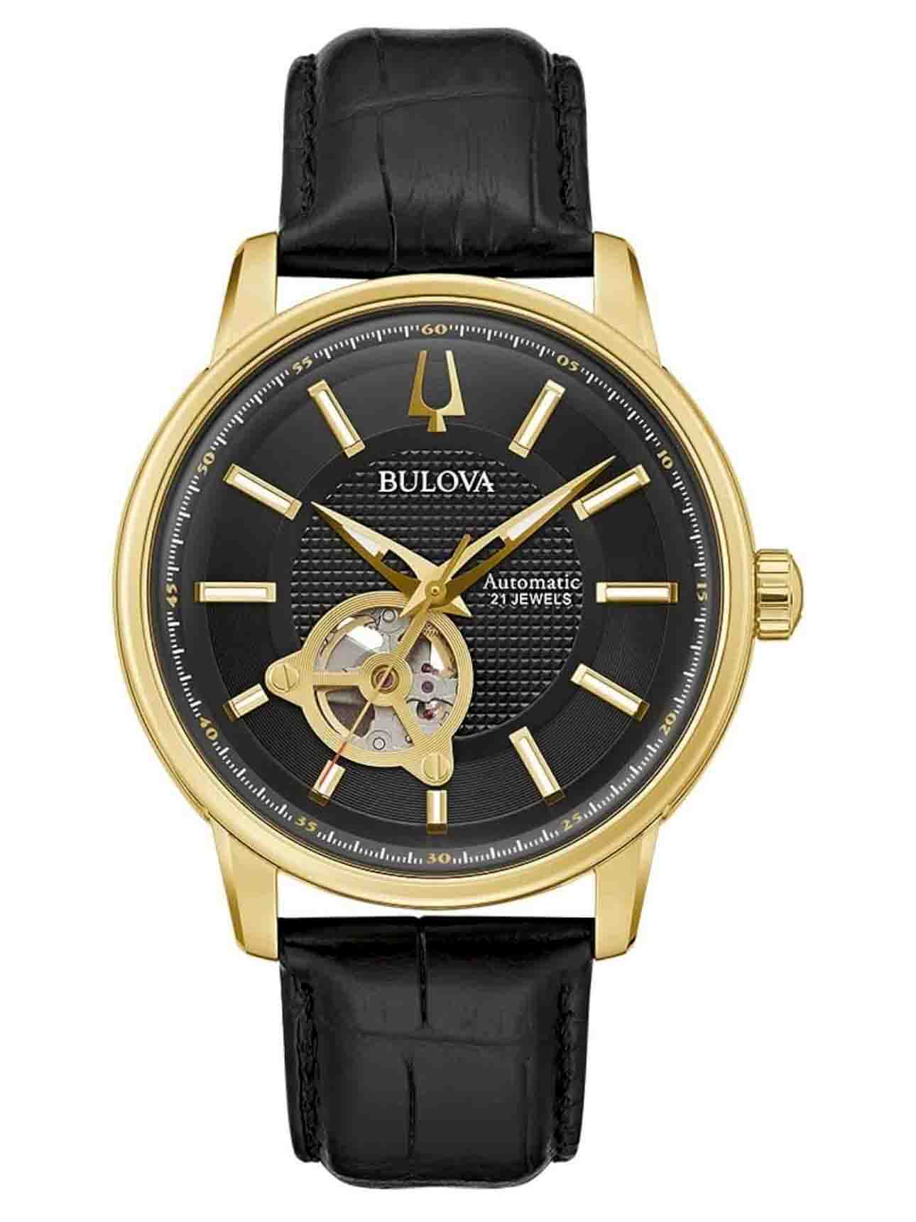 Mặt đồng hồ màu đen tinh xảo, kim phút và kim giờ được làm thon một cách tinh tế.