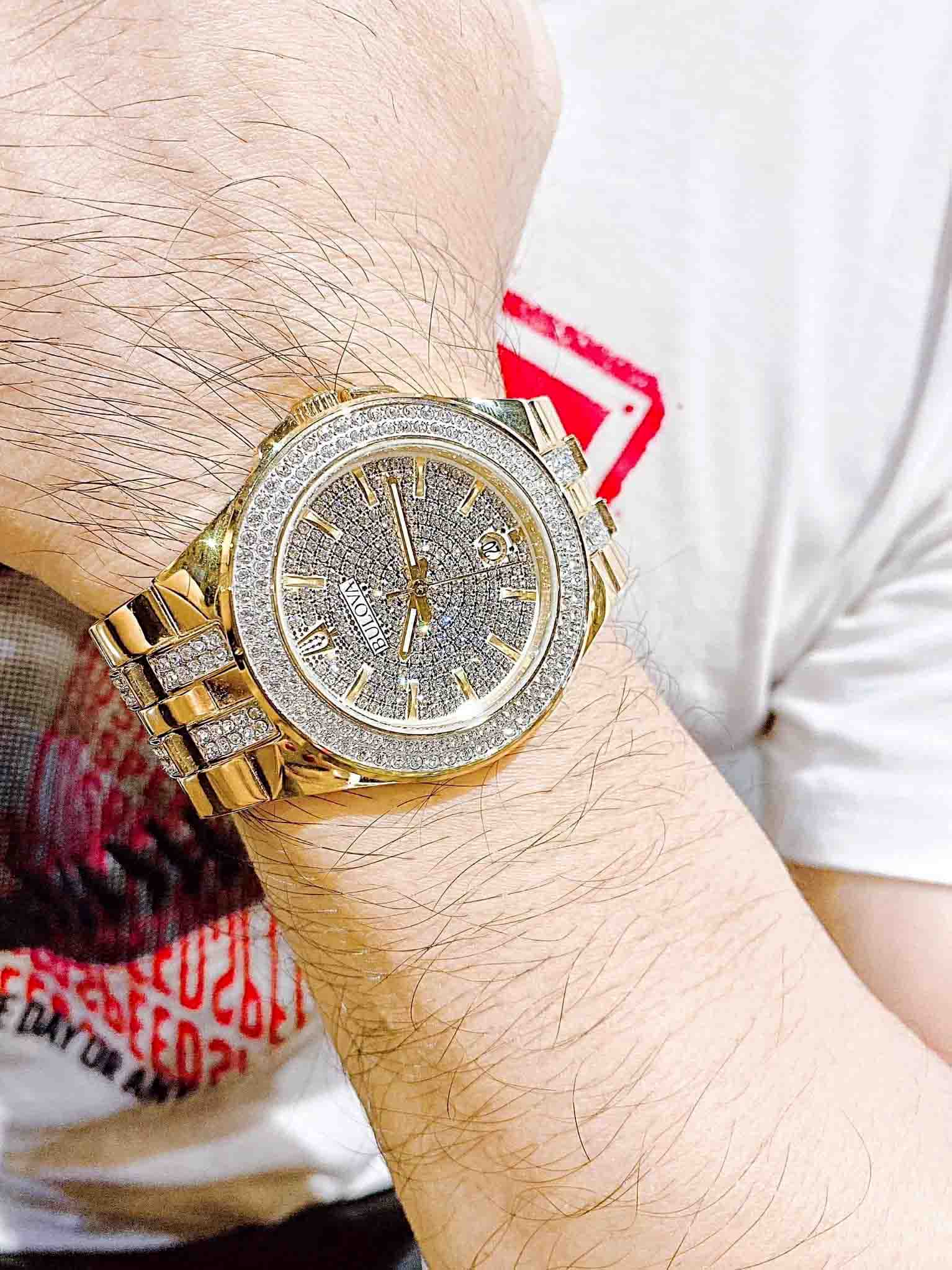 – Mặt số thiết kế độc đáo khi viên pha lê Swa.rovski bao phủ toàn bộ, dây đeo kim loại chắc chắn, còn có ô lịch ngày vị trí 6h, tạo nên phụ kiện thời trang sang trọng, lịch lãm dành cho phái mạnh.
