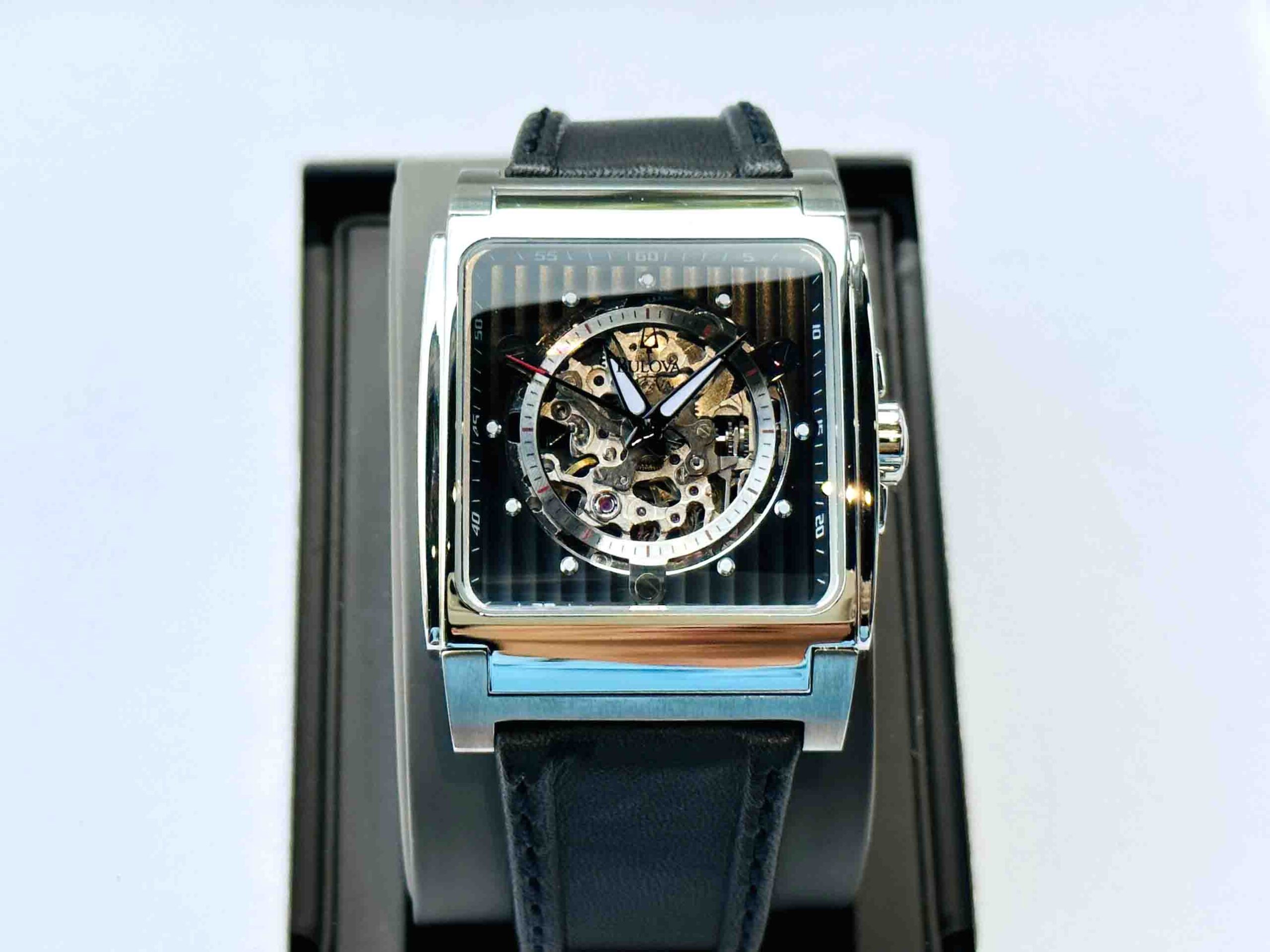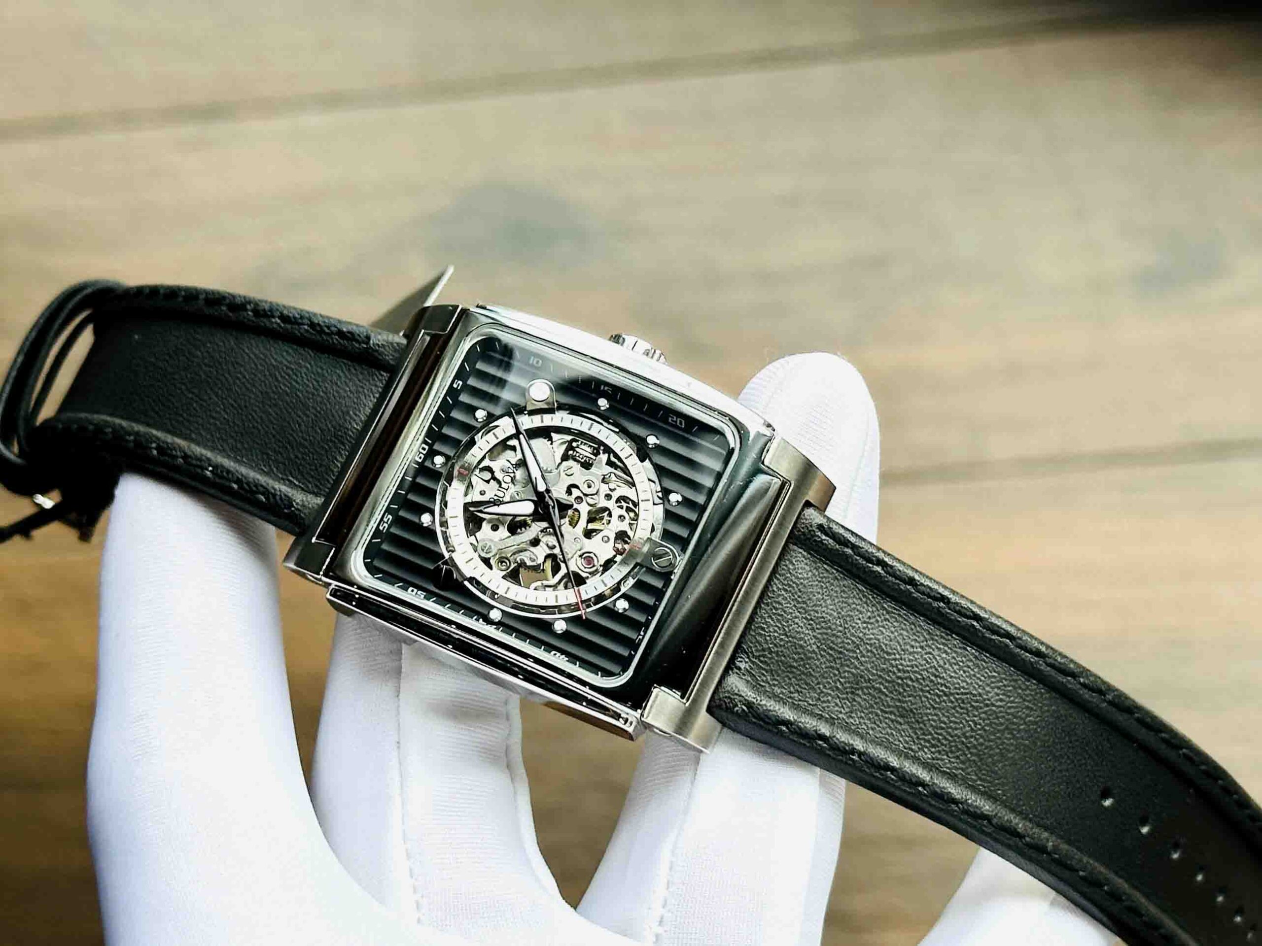 Ẩn bên dưới mặt kính mẫu đồng hồ Bulova mang đến cho phái mạnh 1 vẻ ngoài độc đáo cùng mặt số chân kính trong suốt phô diễn ra cả một trải nghiệm thú vị đến từ bộ máy cơ