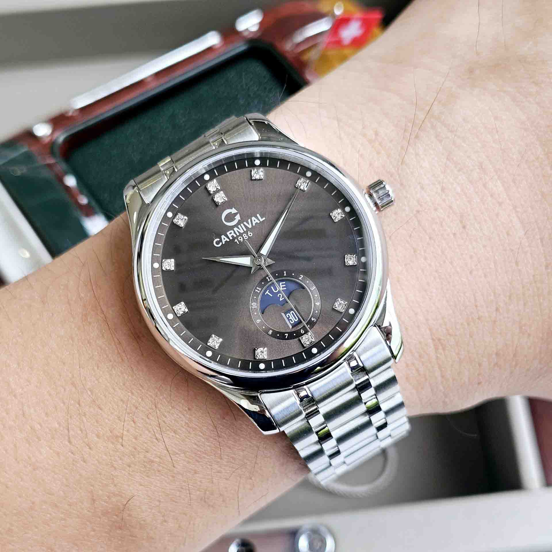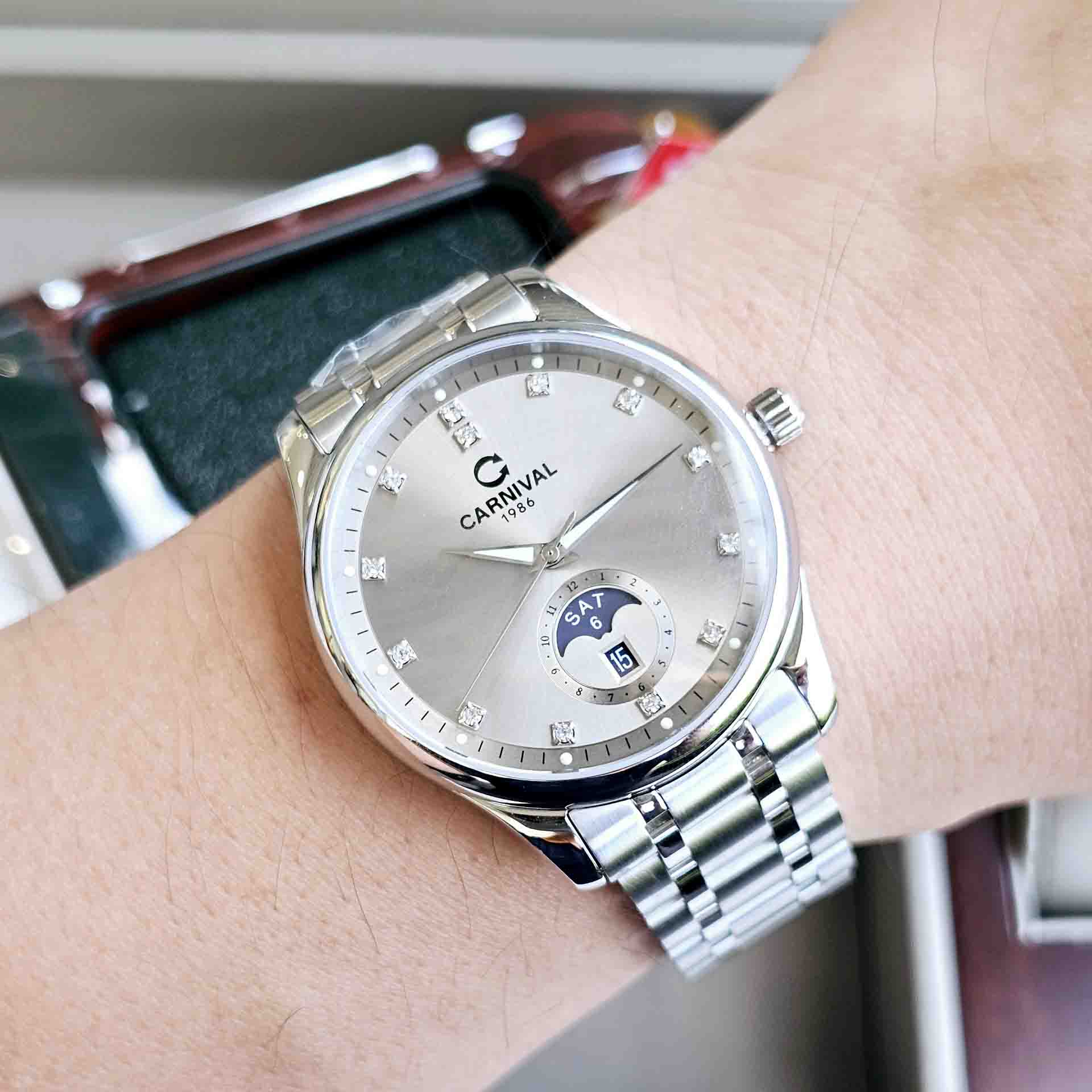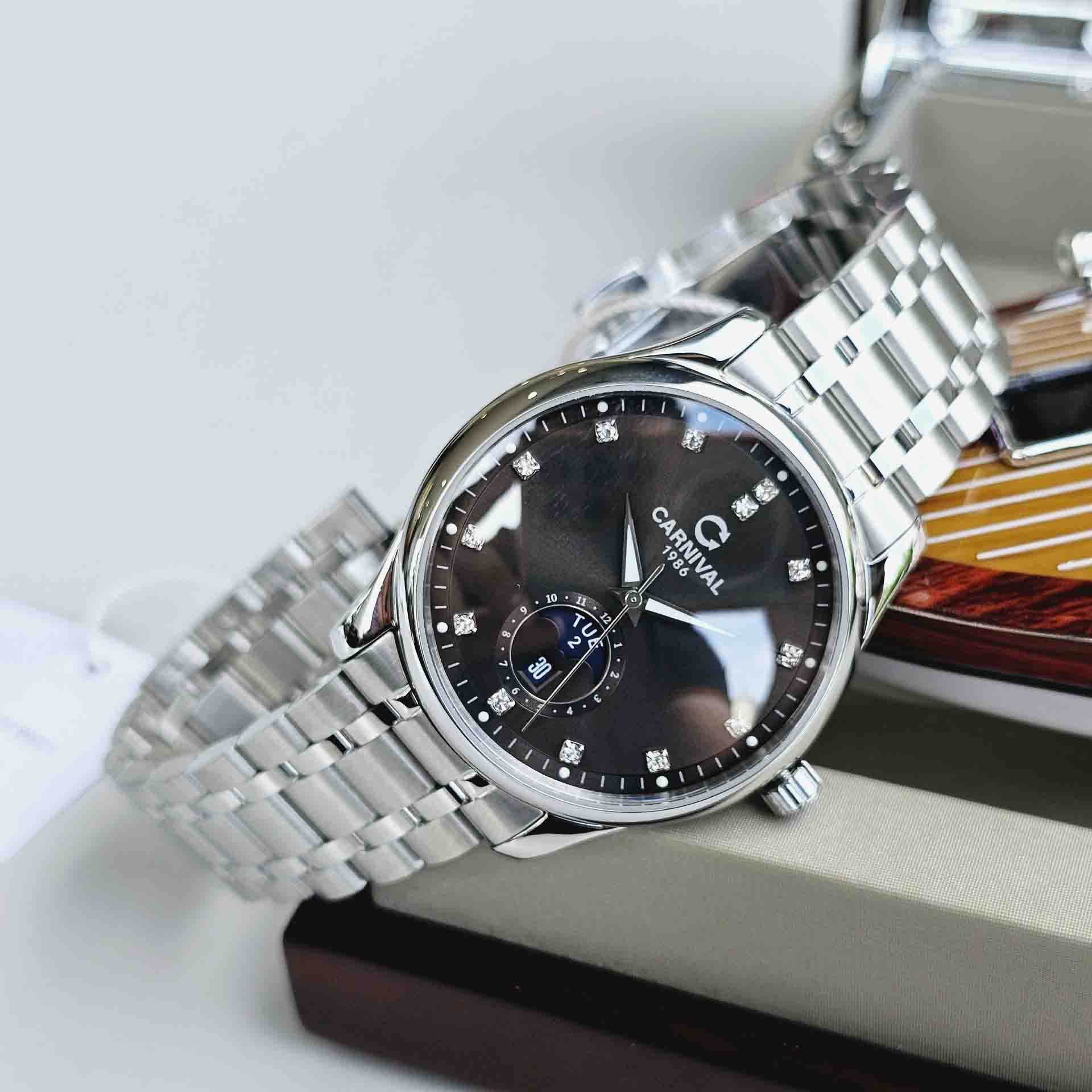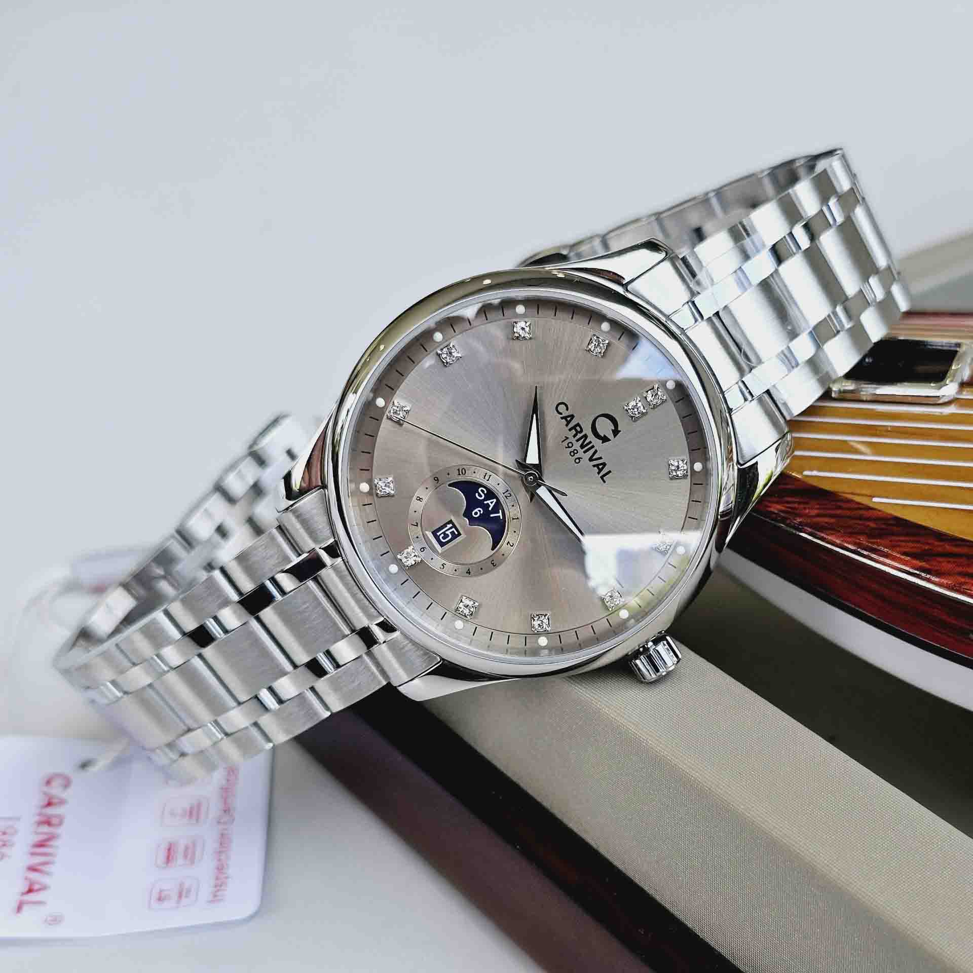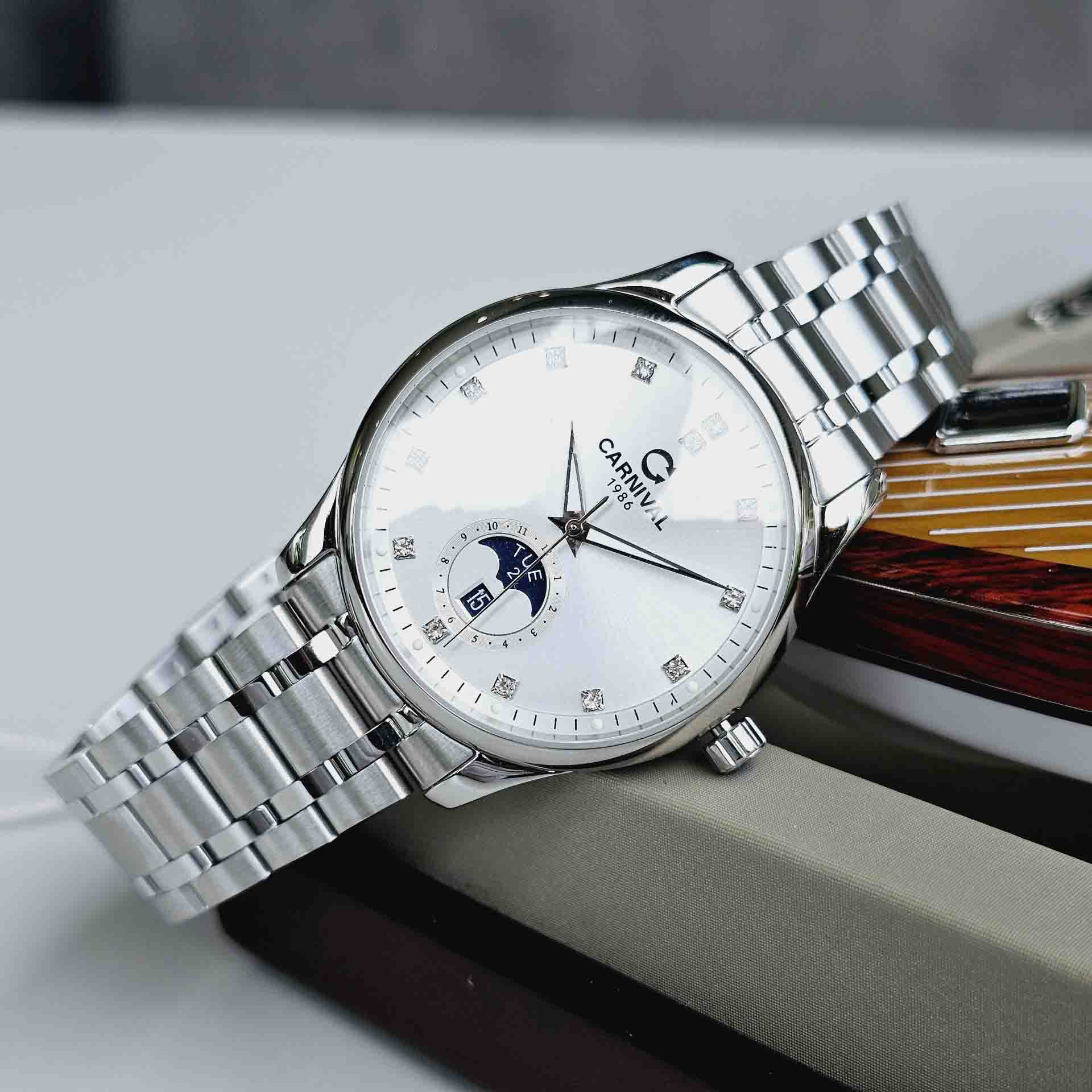 Đỉnh cao của sự thanh lịch và sang trọng trong nét đẹp tinh tế của Carnival 8105G thiết kế dáng moonphase – New Version 2023