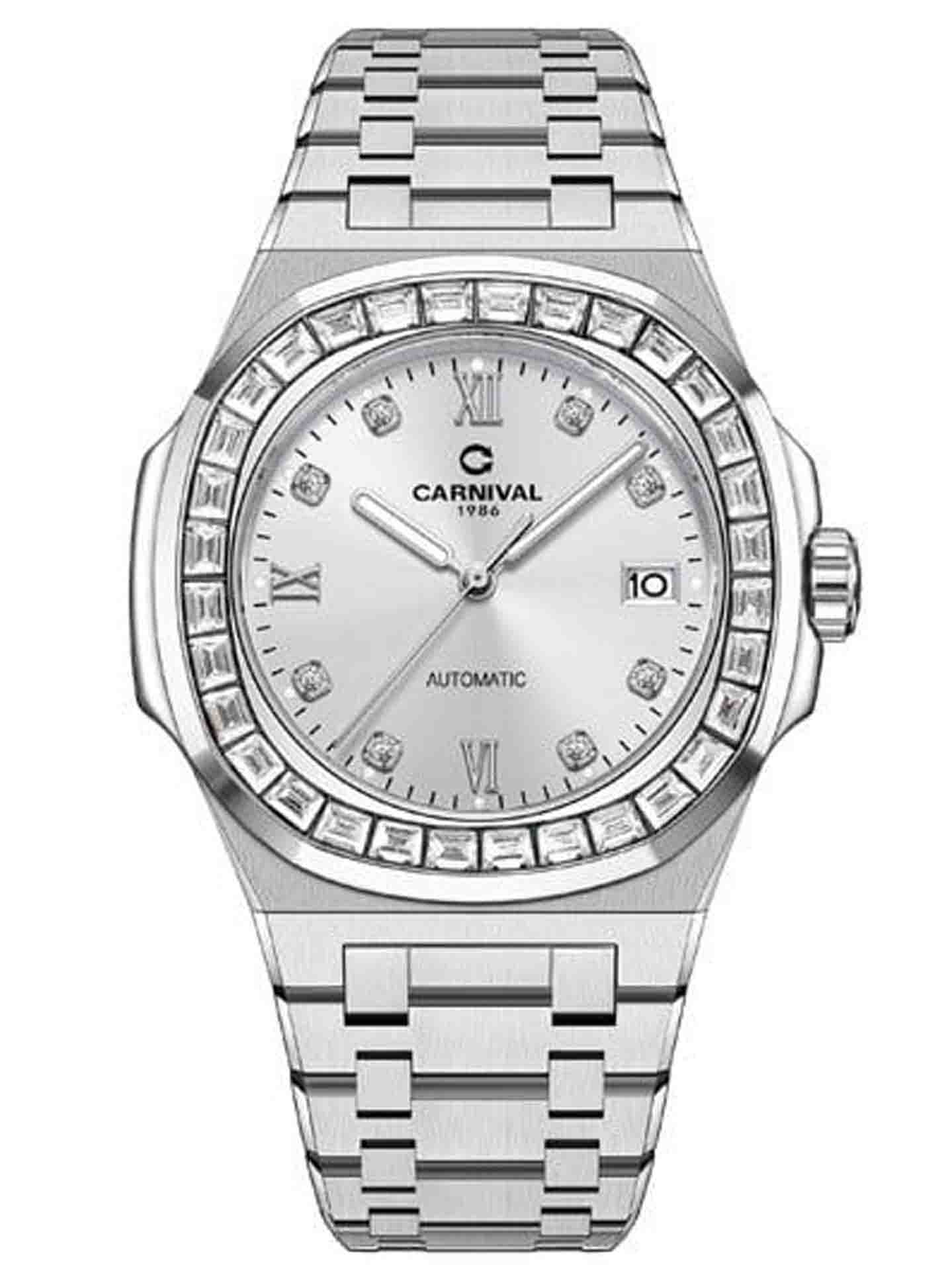 Nằm trong BST với phom dáng Nautilus nhà Carnival đã một lần nữa khẳng định được sức hút vượt thời gian của dòng sản phẩm mới 8129G Dial mới với cọc số và viền đính đá sáng bóng, mặt trải tia cực đẹp