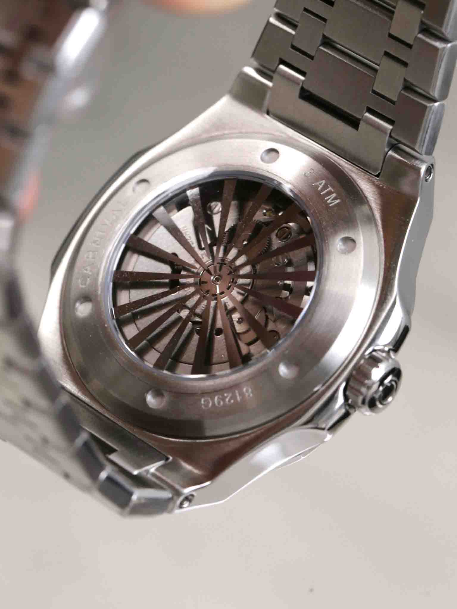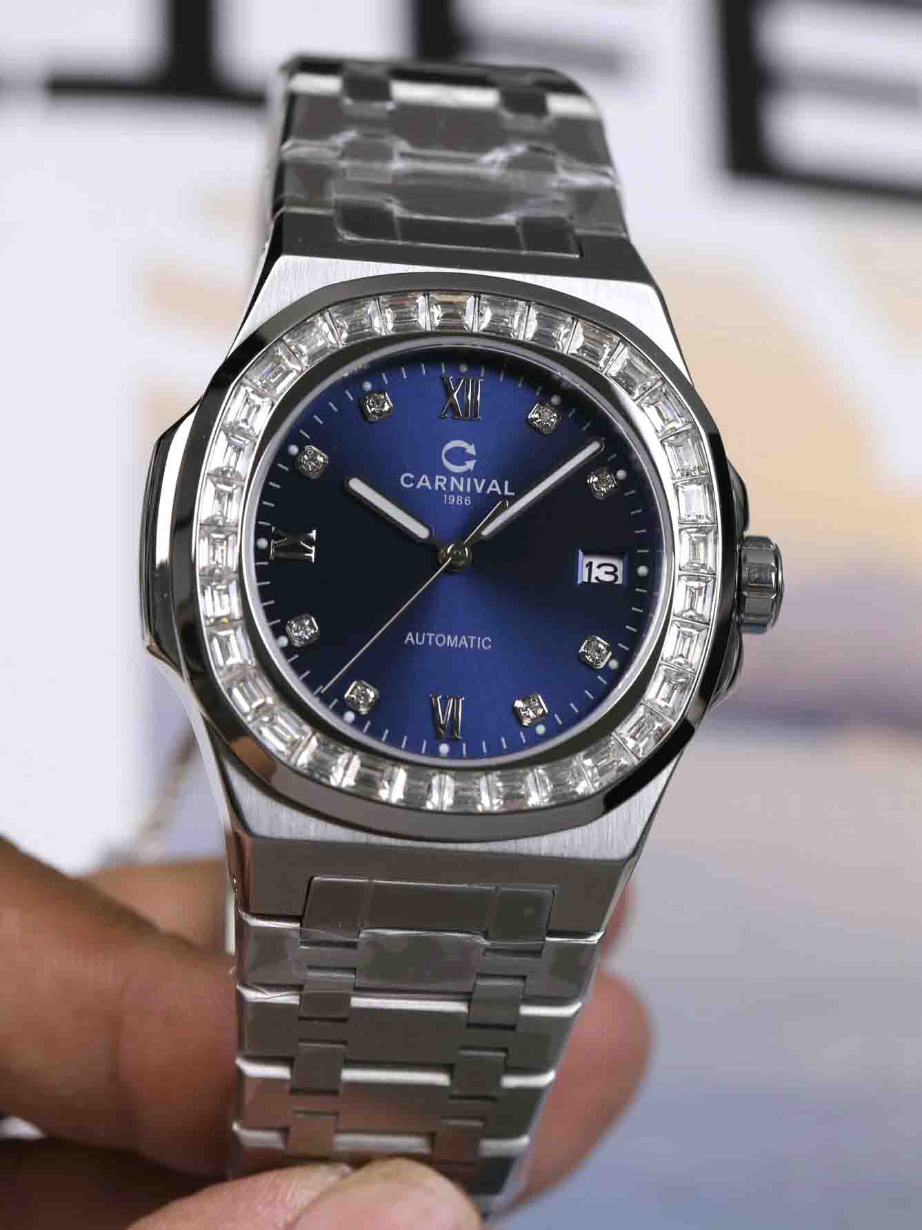 Nằm trong BST với phom dáng Nautilus nhà Carnival đã một lần nữa khẳng định được sức hút vượt thời gian của dòng sản phẩm mới 8129G Dial mới với cọc số và viền đính đá sáng bóng, mặt trải tia cực đẹp