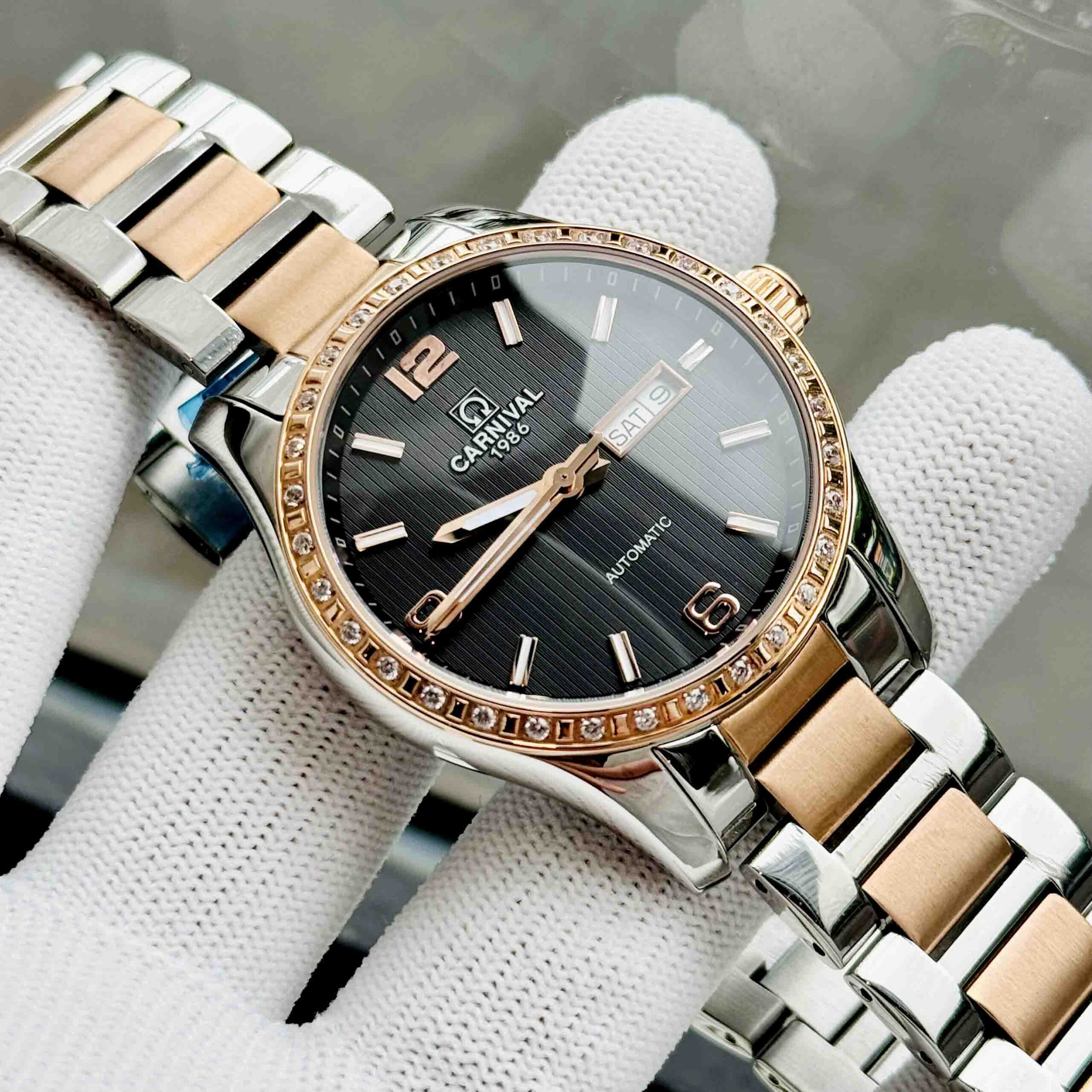 CARNIVAL 8685G chính hãng thiết kế Sang Trọng 2 lịch tiện lợi, nhìn qua cứ ngỡ Longines trăm triệu