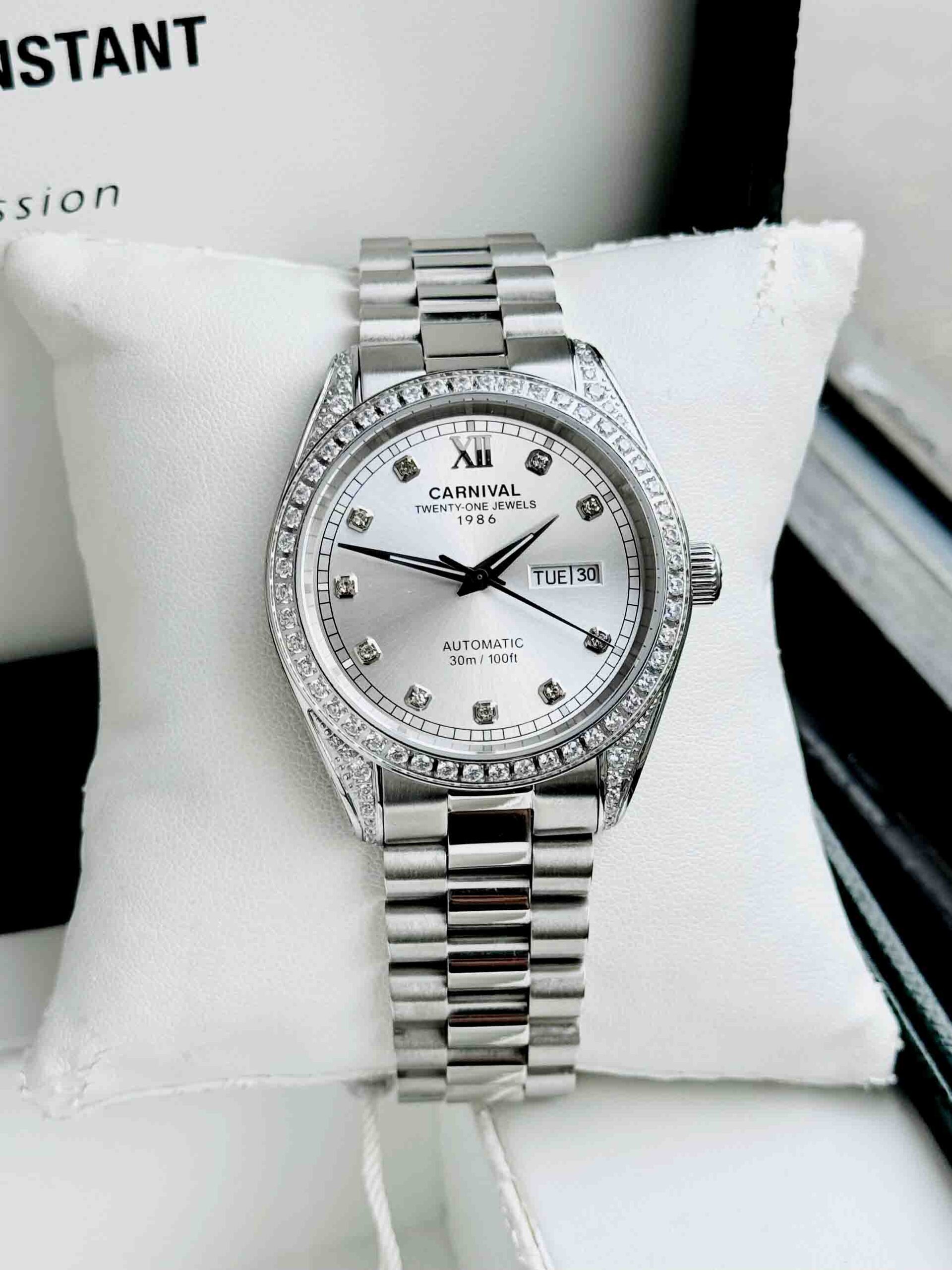Chinh phục mọi ánh nhìn với đồng hồ Carnival 8907G, nổi bật với kiểu dáng tinh tế và đẳng cấp. Với vỏ làm từ chất liệu cao cấp 316L, đồng hồ không chỉ thể hiện đẳng cấp mà còn đảm bảo độ bền lâu dài.
