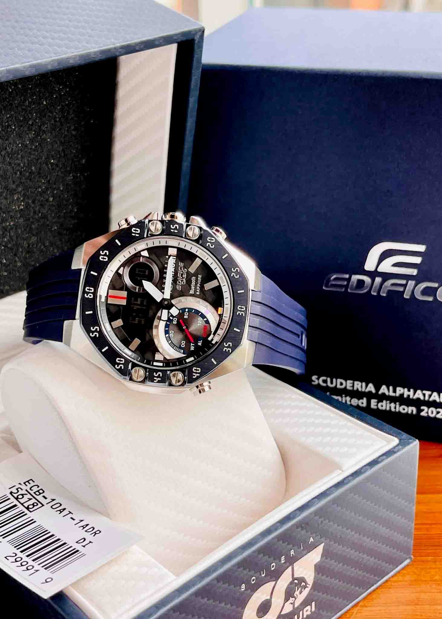 Mẫu hợp tác với đội tuyển F1 Scuderia AlphaTauri của “EDIFICE.”, màu sắc lấy cảm hứng từ màu chủ đạo xanh hải quân của đội F1 cực chất