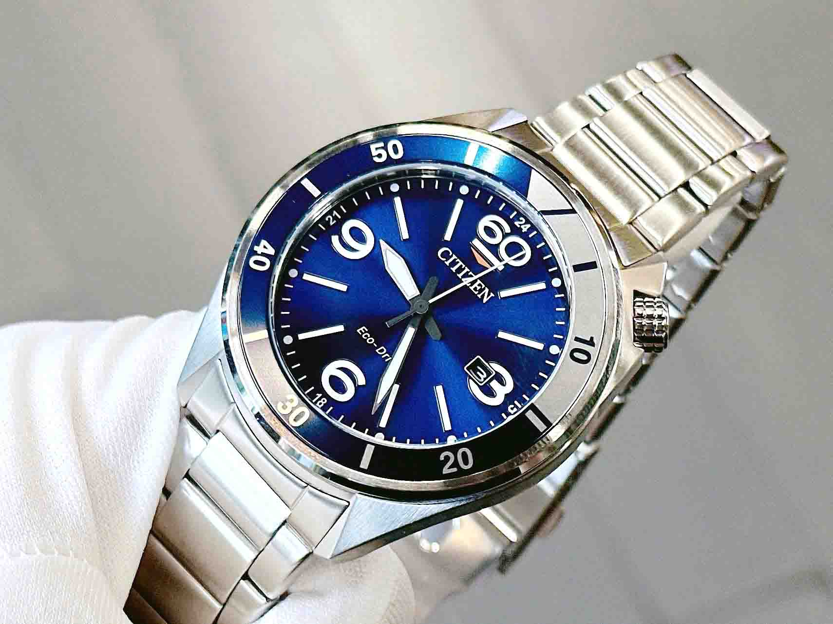 Hiển thị ngày ở vị trí 3 giờ. Bộ chuyển động sinh thái Citizen Calibre Eco-Drive J810. Tinh thể khoáng chống trầy xước.