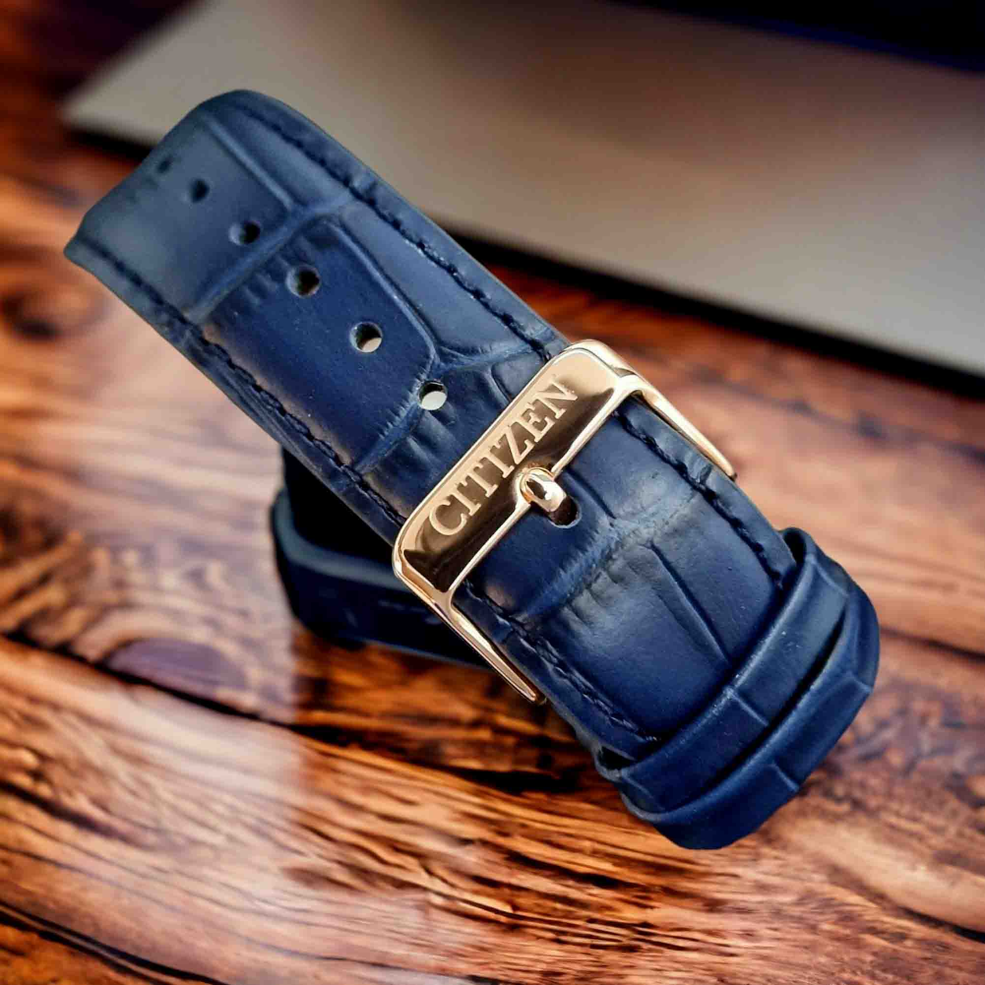 Đồng Hồ Nam Citizen Pin BH5003-00L Dây Da Vỏ Vàng Hồng Mặt Xanh
