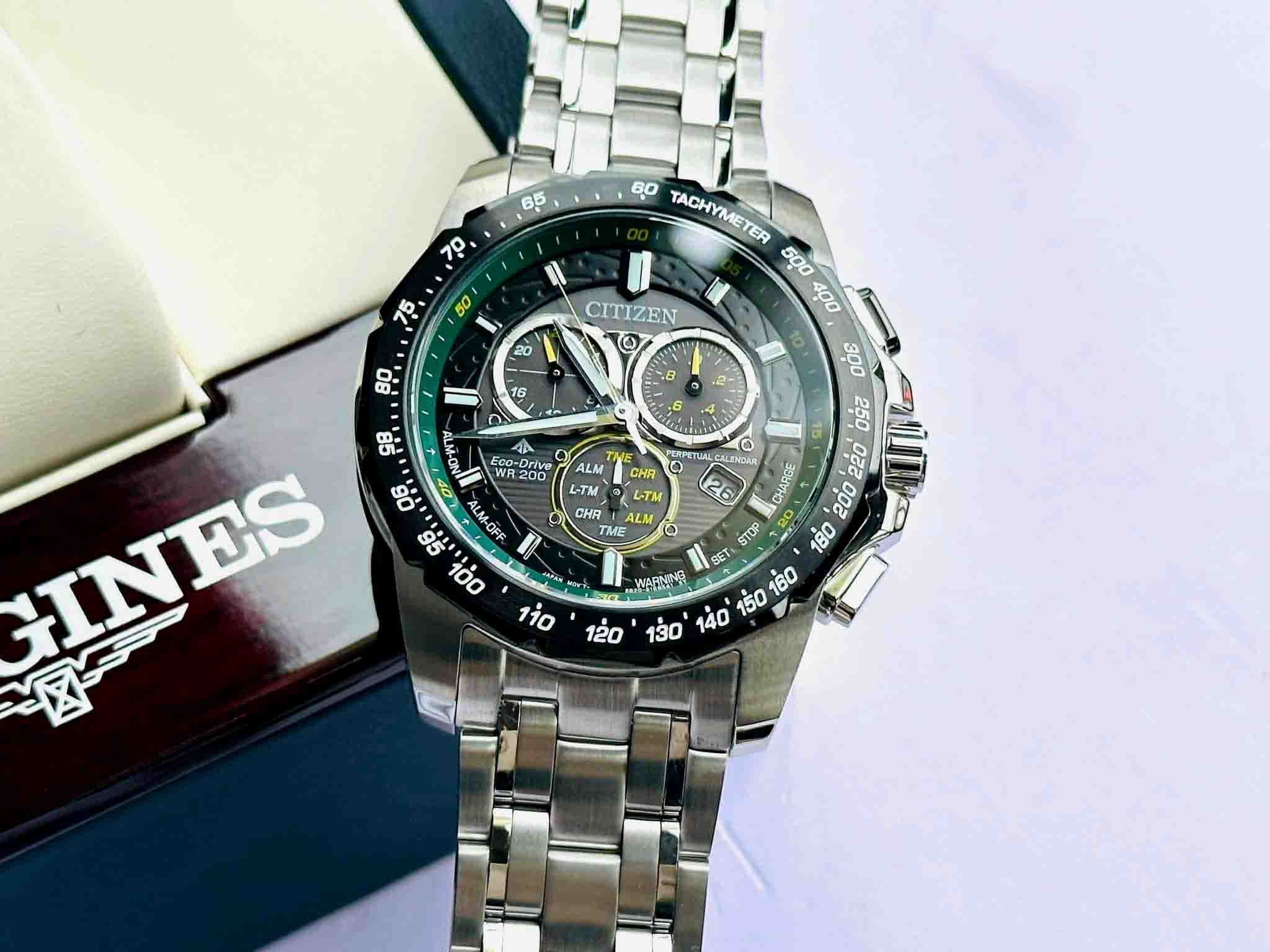 Với thời gian thế giới ở 26 múi giờ, lịch vạn niên, chống sốc và ngày tháng trong vỏ thép không gỉ, dây đeo bằng thép không gỉ