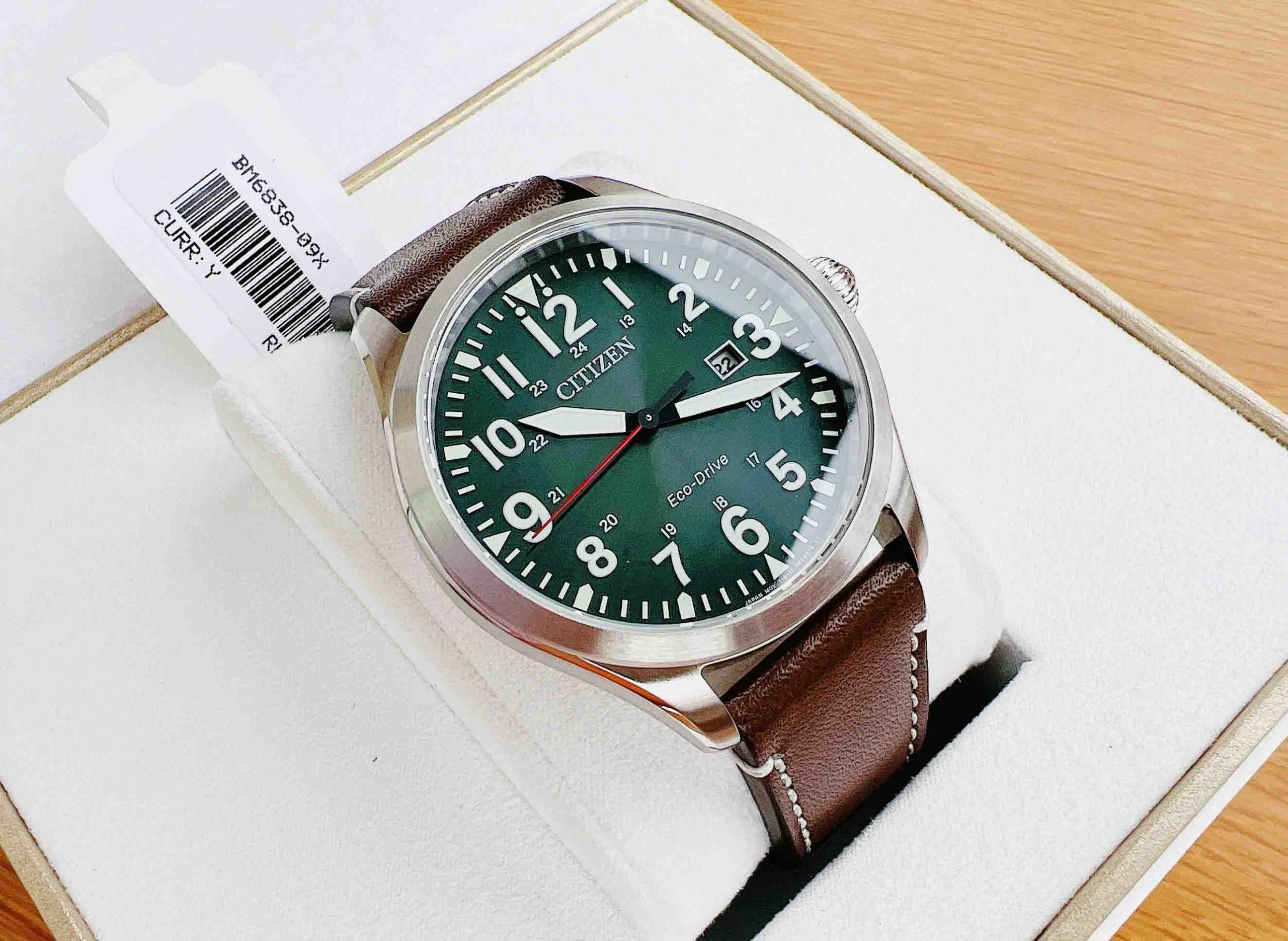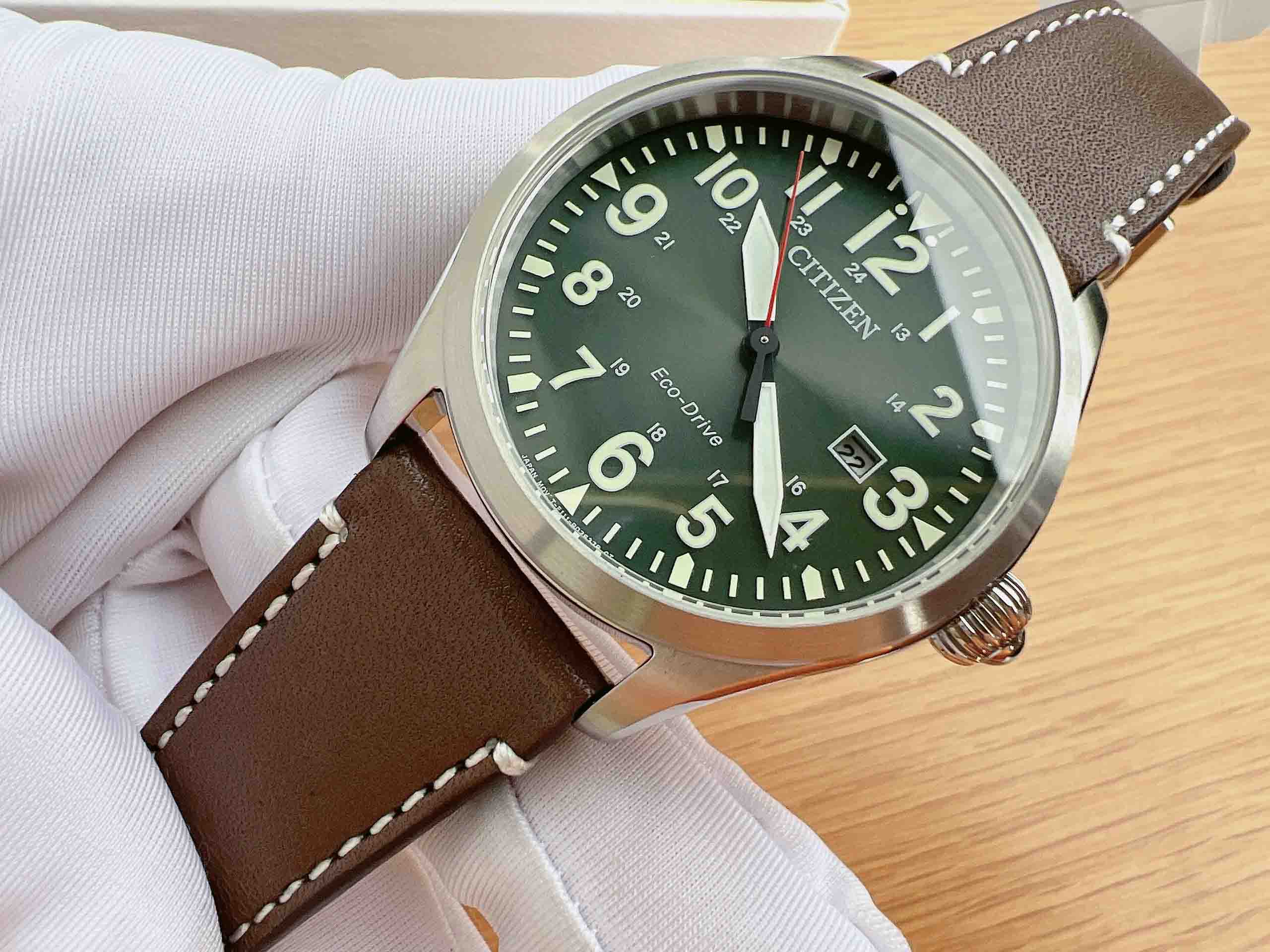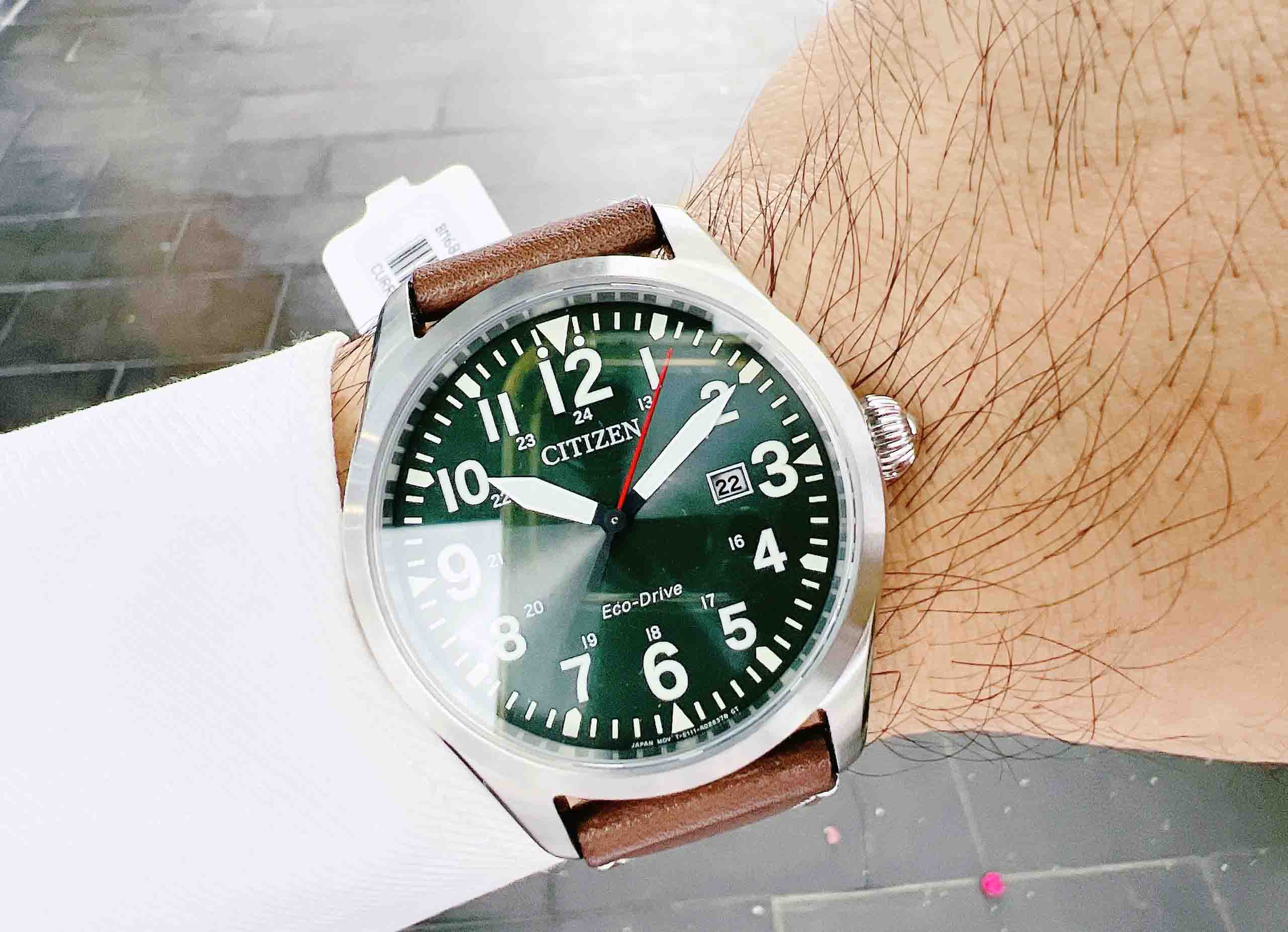 CITIZEN ECO DRIVE BM6838-09X Thiết kế lịch lãm, lạ mắt với dial xanh lá độc đáo, bộ kim to bản khỏe khoắn, kim giây đỏ nổi bật!!!
