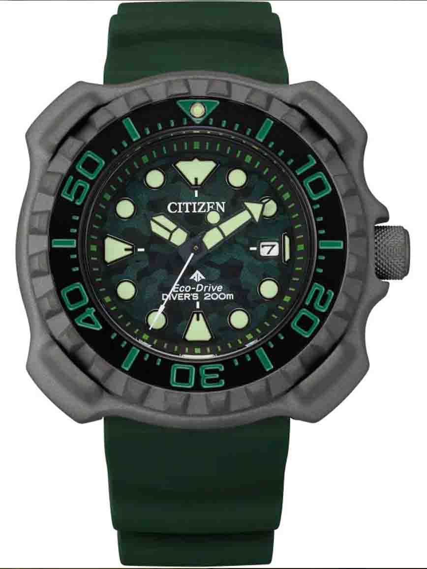Một trong những dòng đồng hồ dành cho thợ lặn cực kỳ nổi bật hiện nay với chỉ số chống nước cực khủng lên đến 200m. Với form mới cực độc cùng thiết kế vỏ supper titanium siêu nhẹ mạ màu xám đen phối cùng màu xanh camo bắt mắt. Citizen Eco-Drive Promaster Supper Titanium Gray Diver BN0228-06X