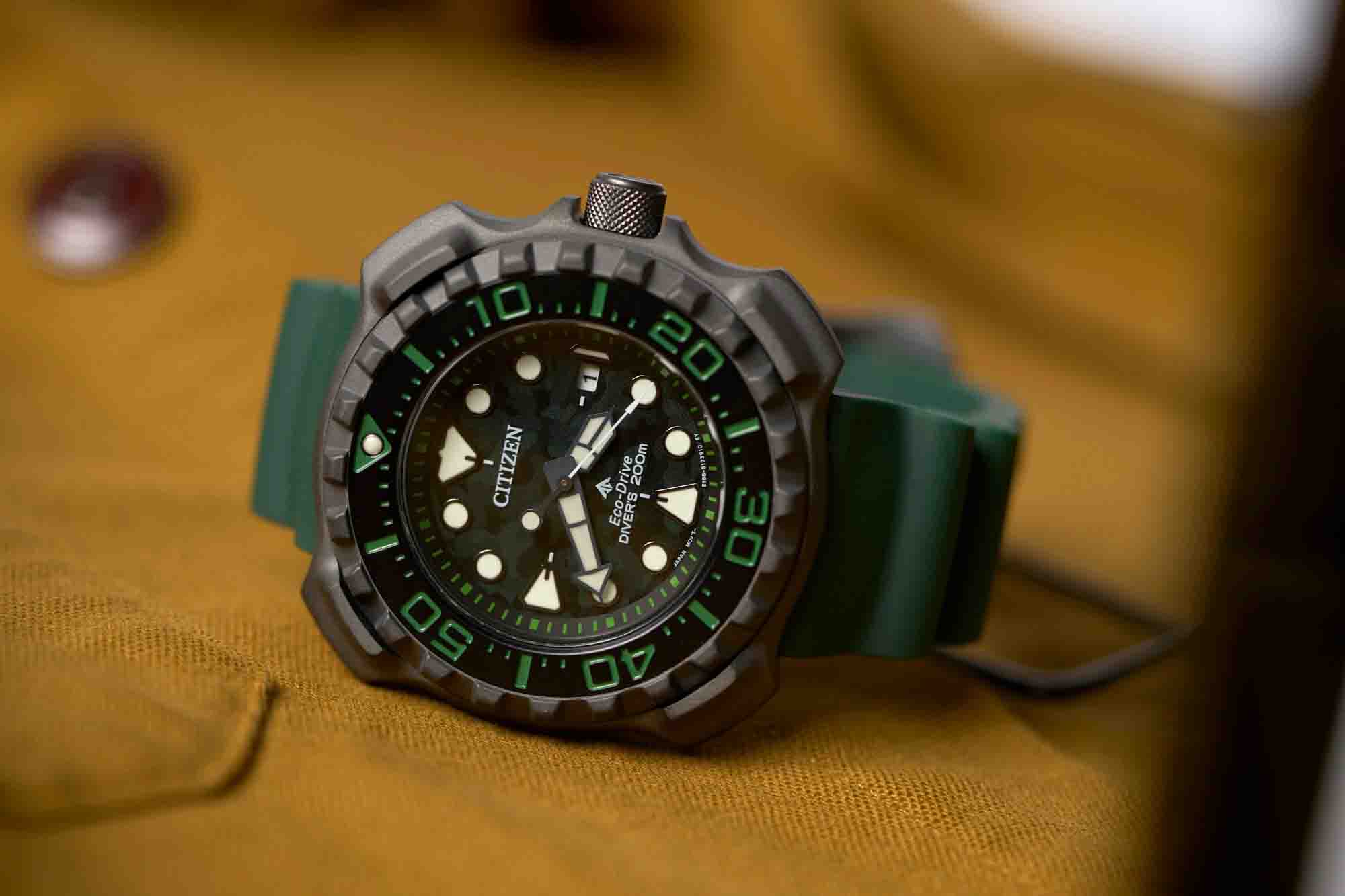 Một trong những dòng đồng hồ dành cho thợ lặn cực kỳ nổi bật hiện nay với chỉ số chống nước cực khủng lên đến 200m. Với form mới cực độc cùng thiết kế vỏ supper titanium siêu nhẹ mạ màu xám đen phối cùng màu xanh camo bắt mắt. Citizen Eco-Drive Promaster Supper Titanium Gray Diver BN0228-06X