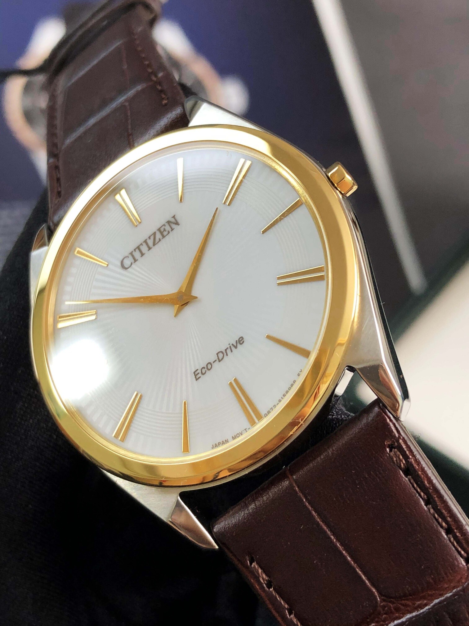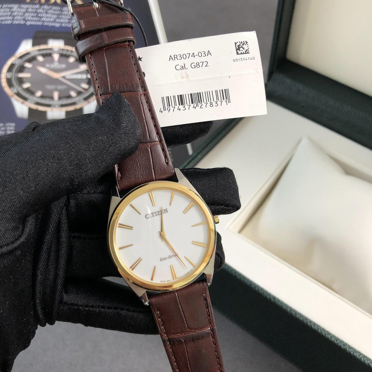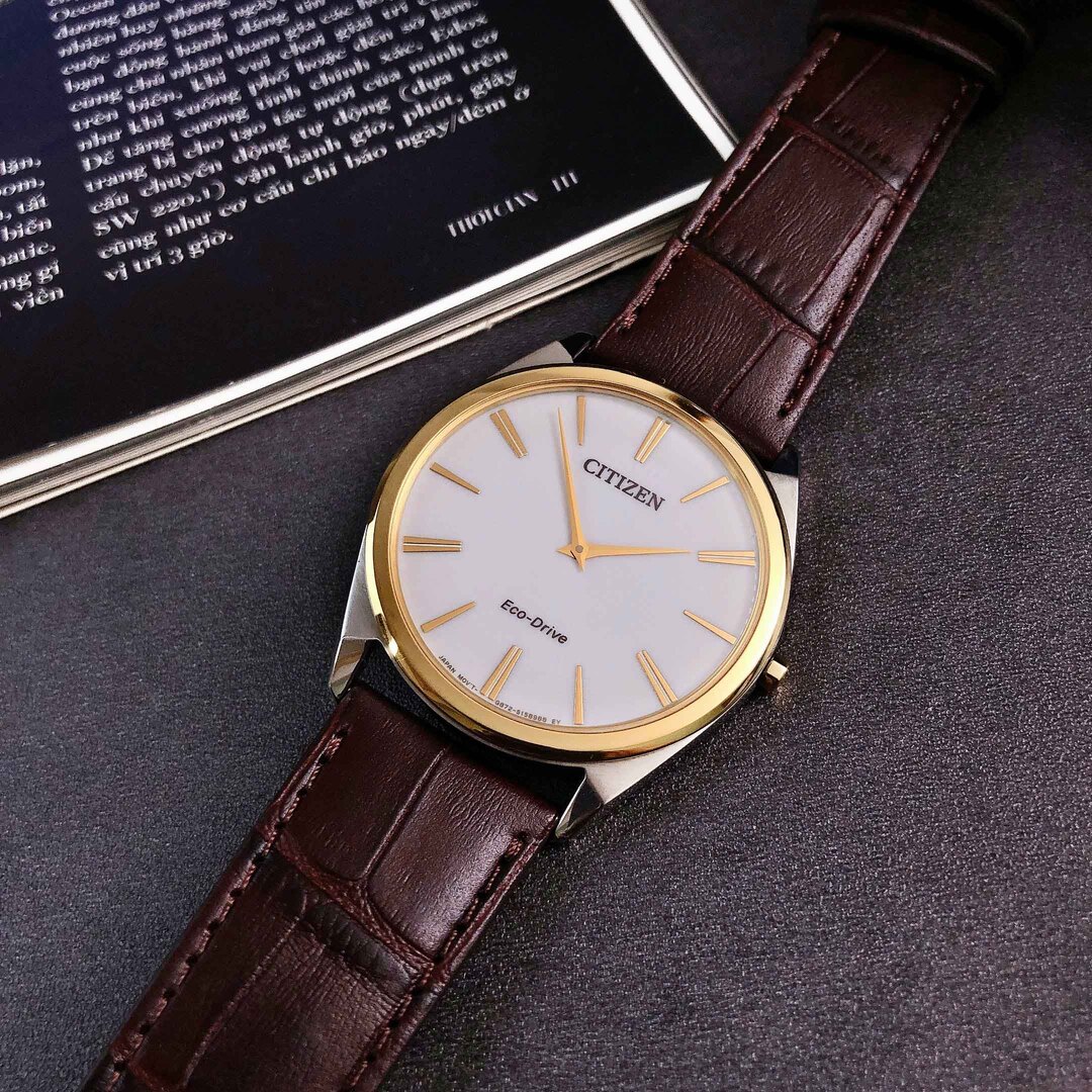 Citizen eco-drive thin stiletto AR3074-03A nam dây da mặt trắng