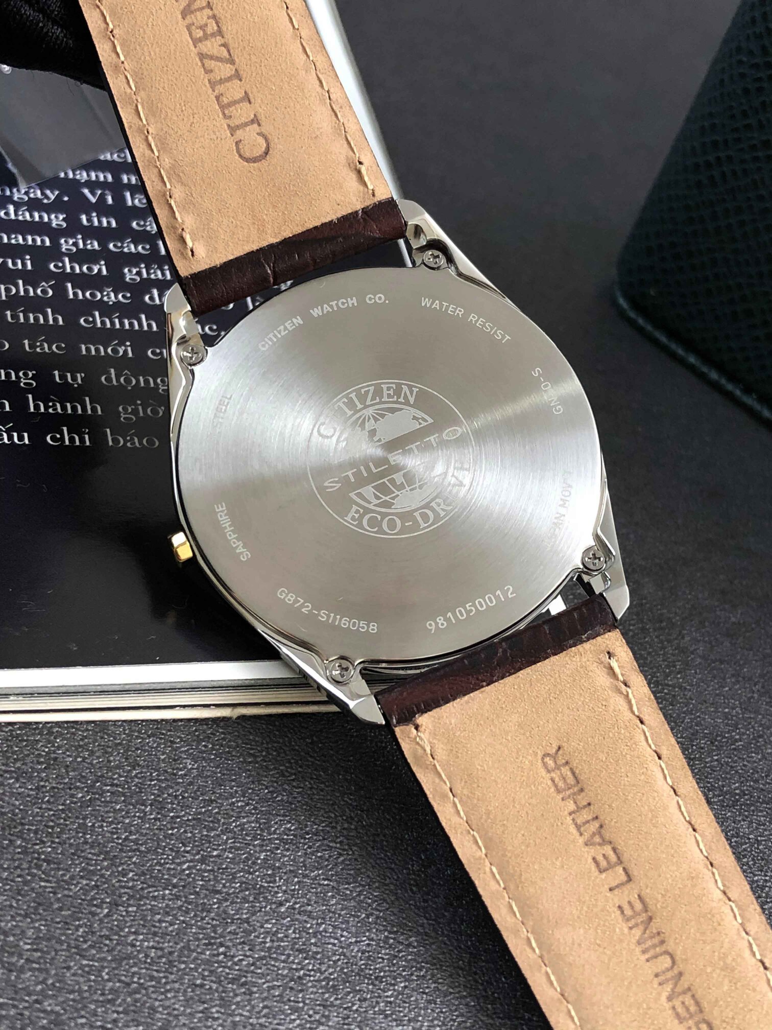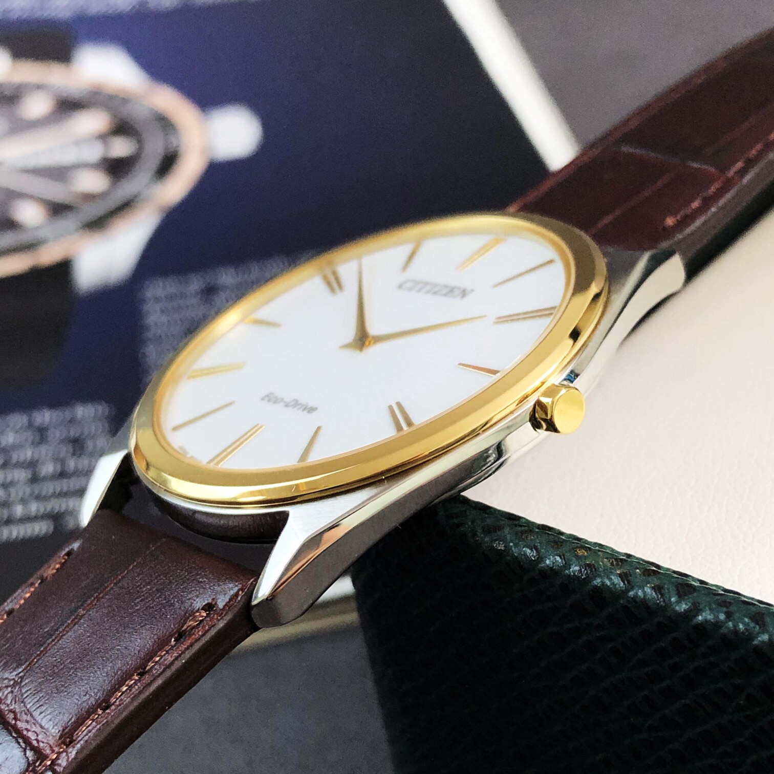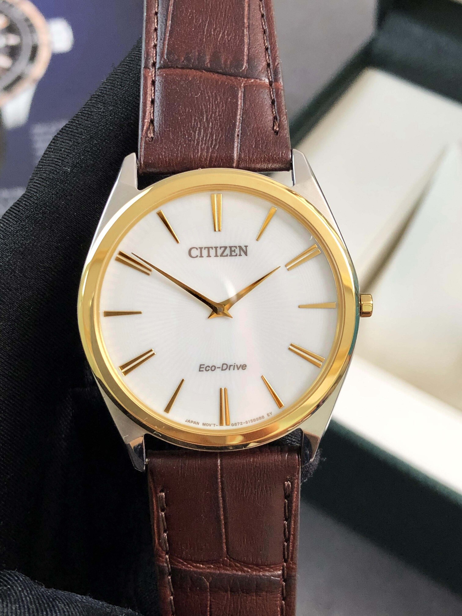 Citizen eco-drive thin stiletto AR3074-03A nam dây da mặt trắng