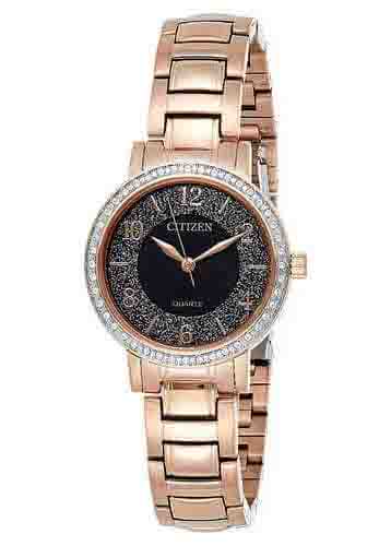 Đồng Hồ Nữ Citizen Pin EL3048-53E Dây Sắt Vỏ Vàng Hồng Mặt Đen