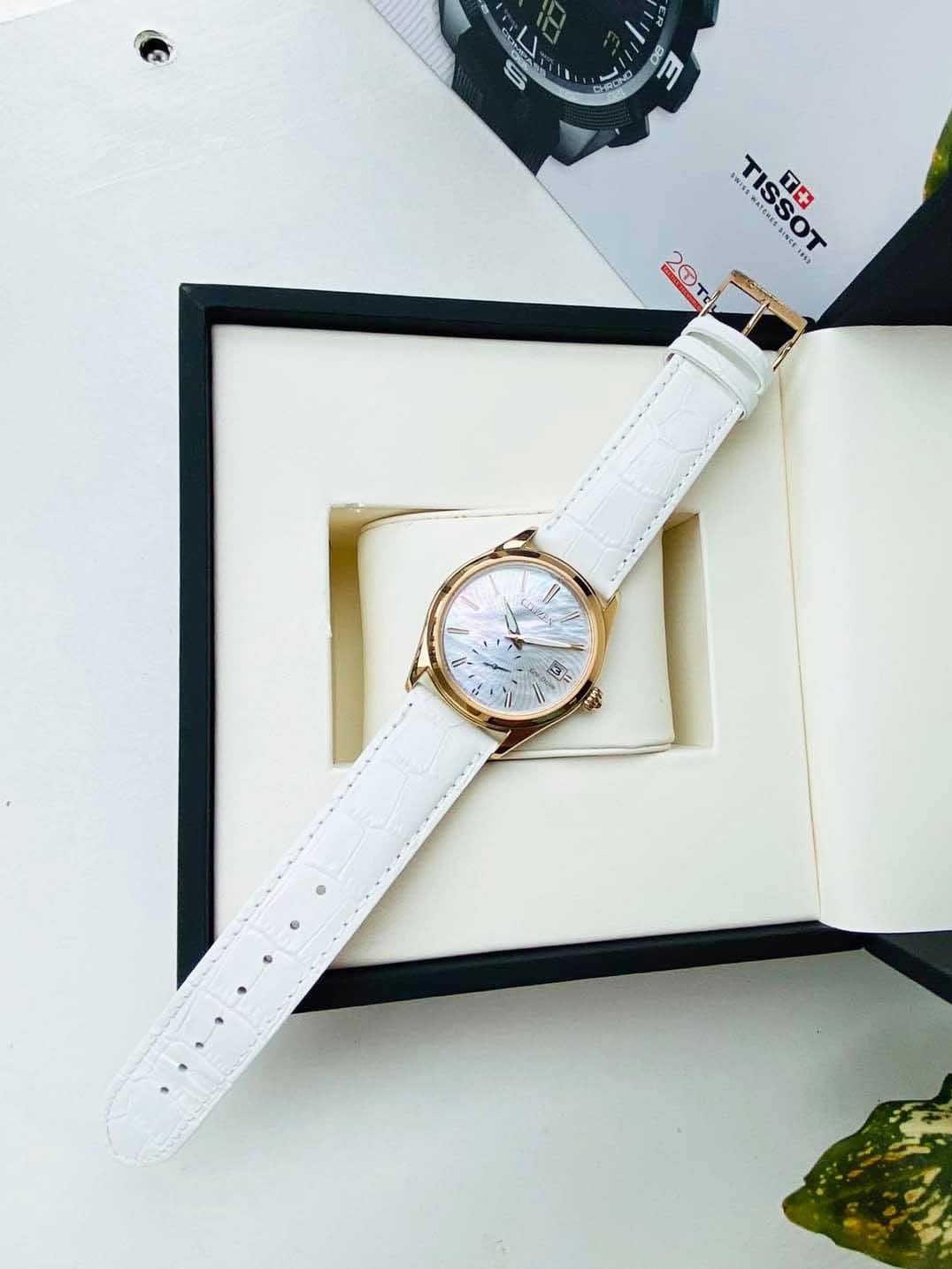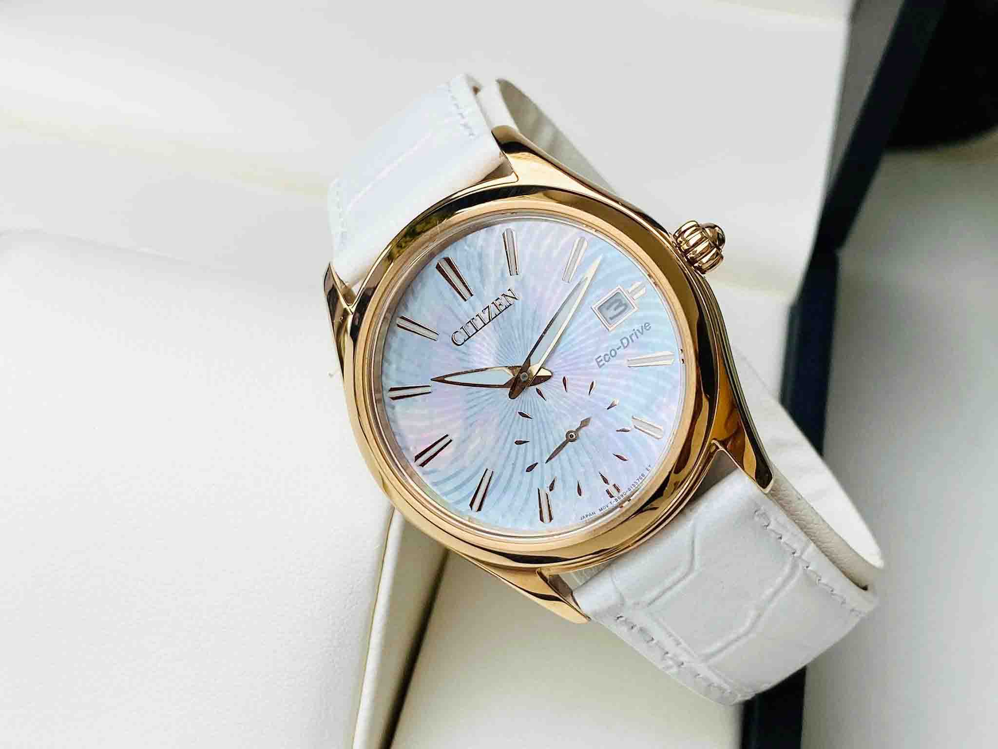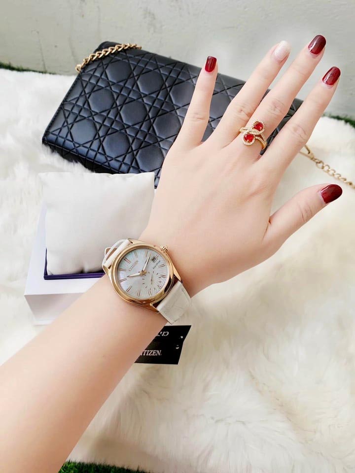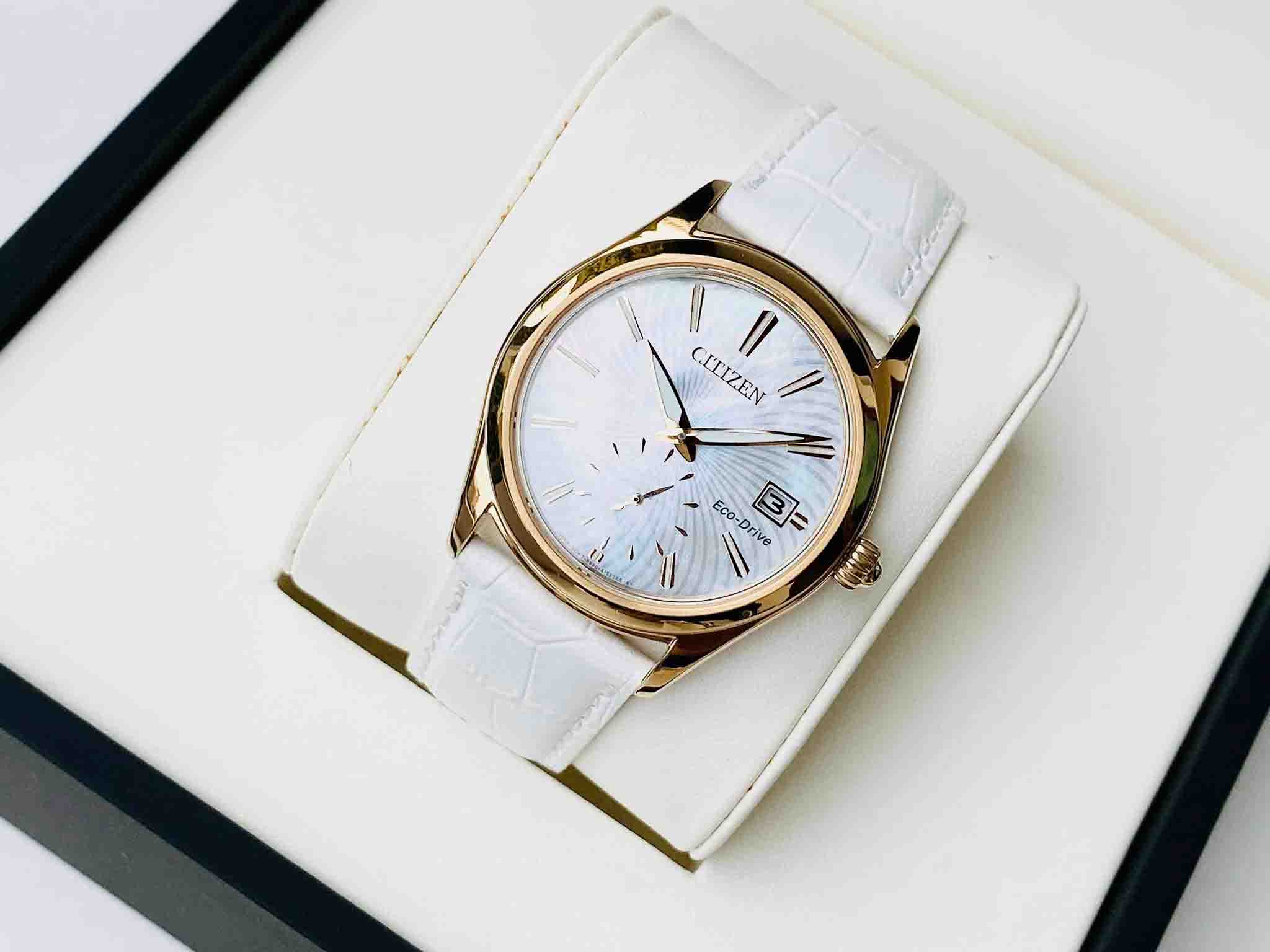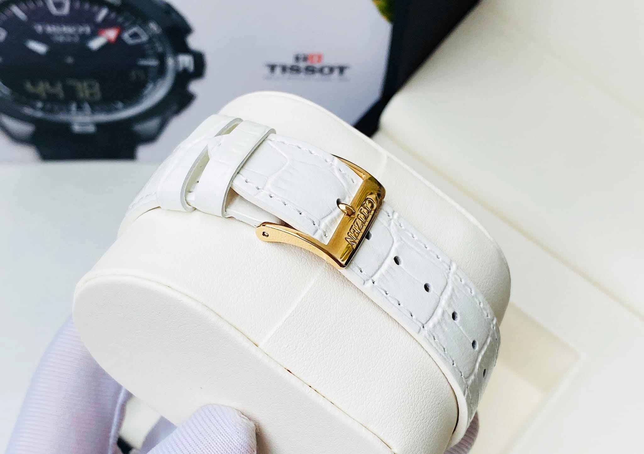 Citizen EV1033-08D Đồng Hồ Nữ Dây Da Trắng