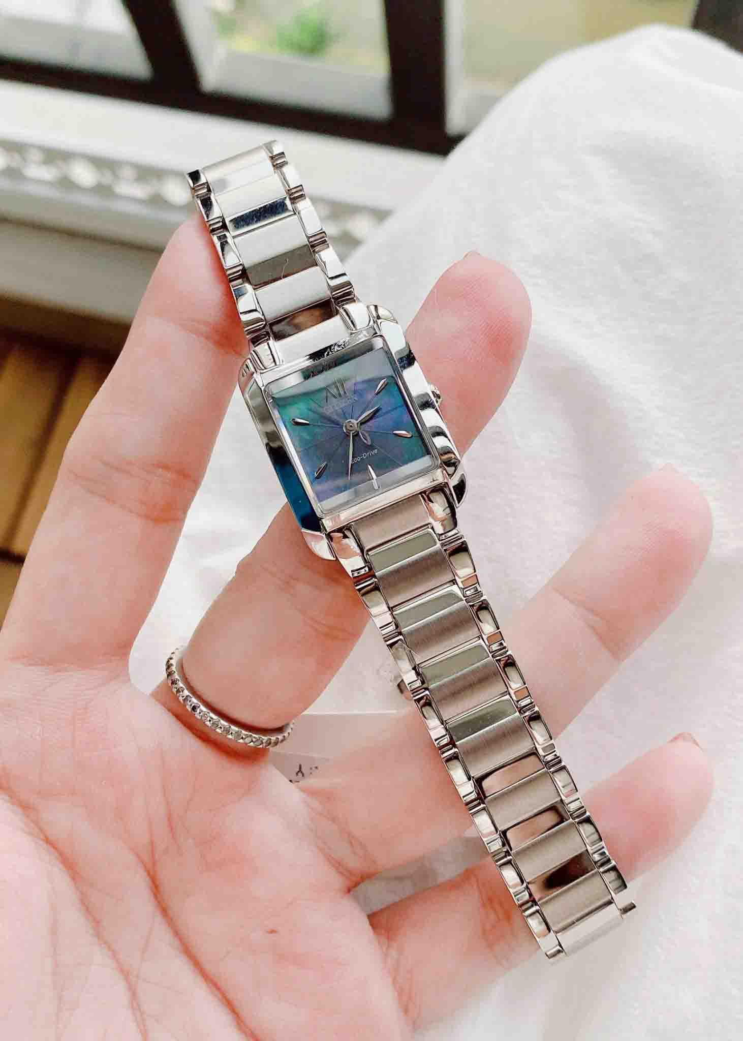 Citizen EW5551-56N Eco-drive Mặt Khảm Trai Xanh