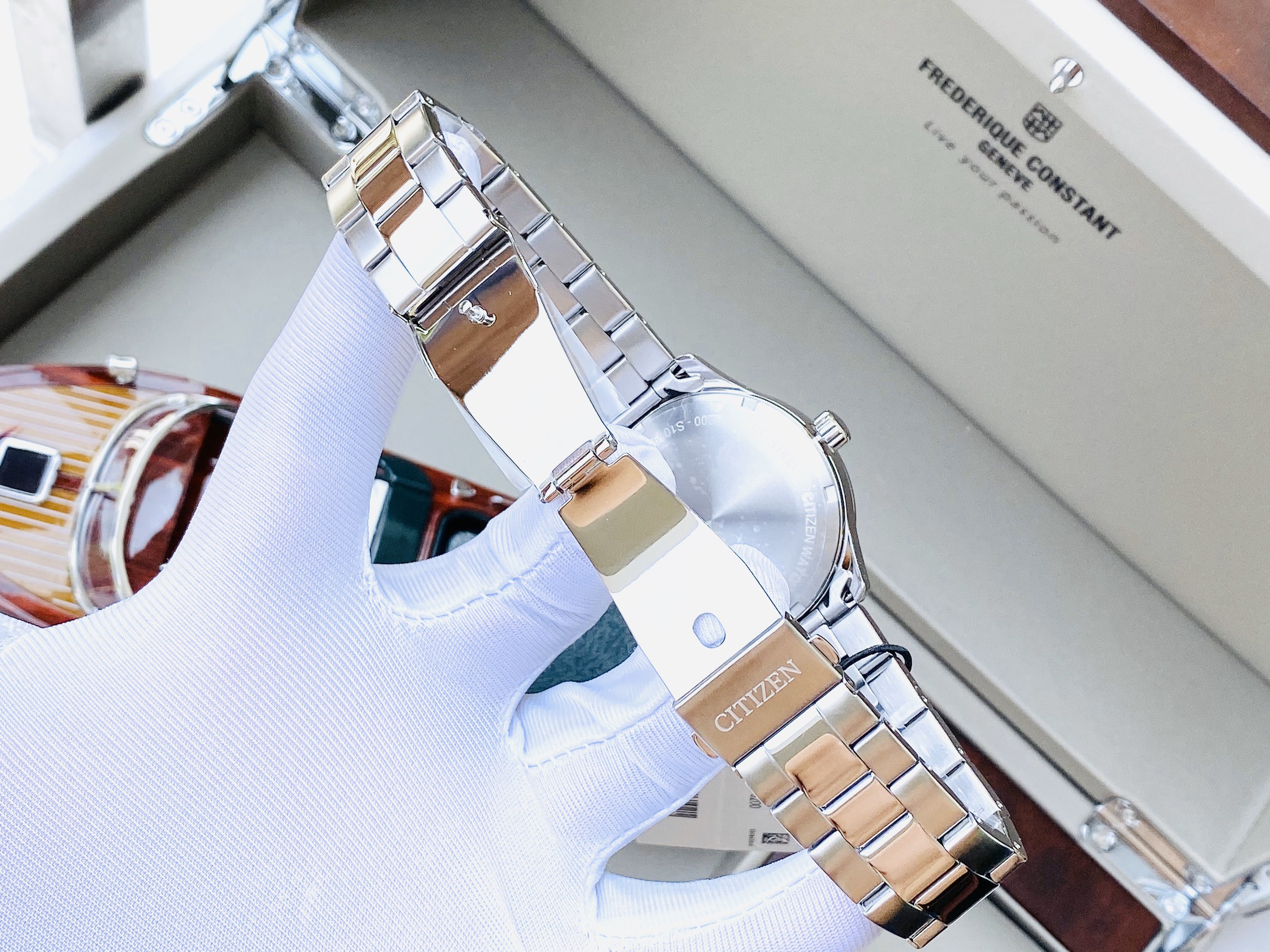 Mặt dial trắng, kim và vạch giờ thanh mảnh tinh tế