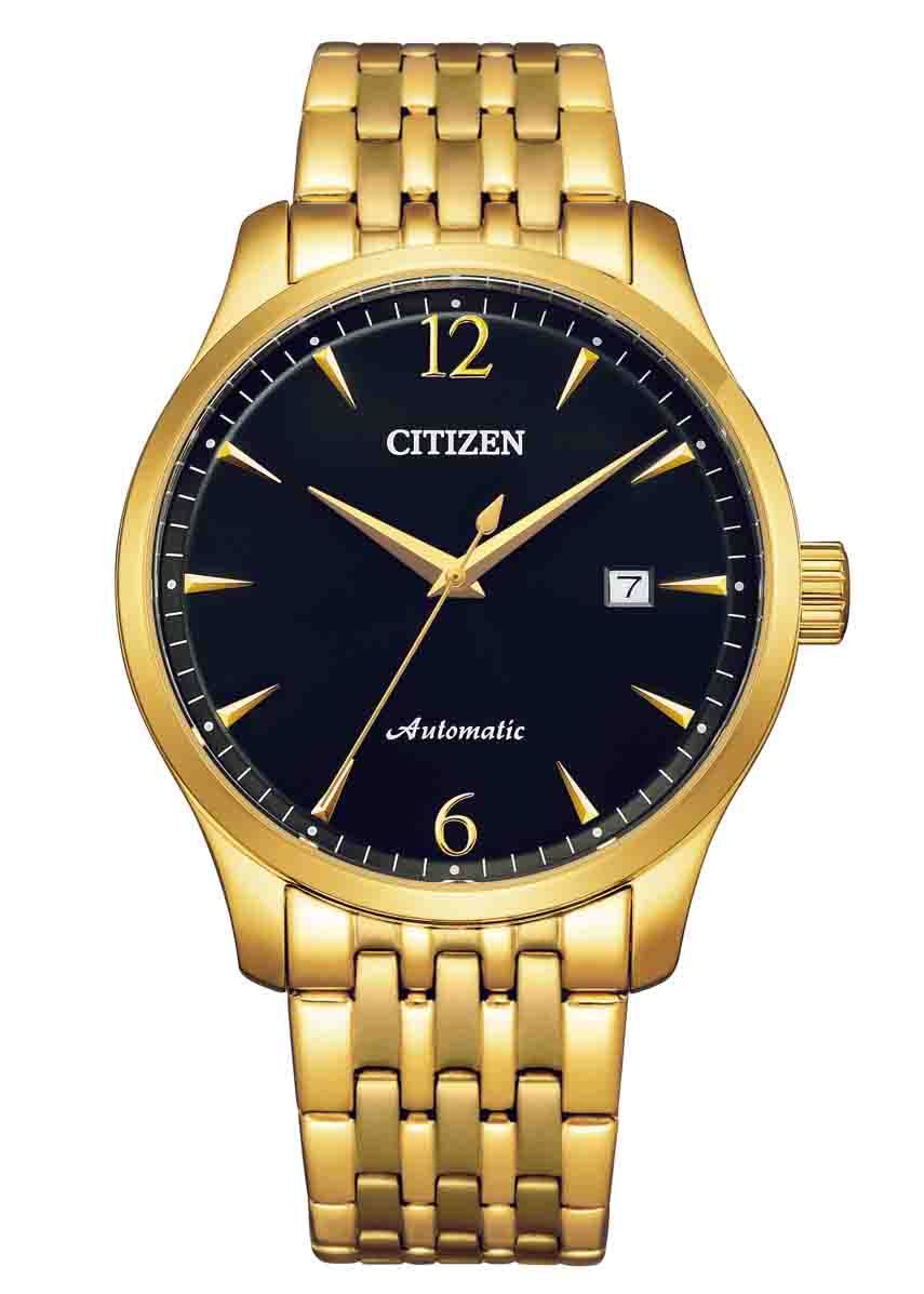 Mẫu đồng hồ Nam Citizen Automatic NJ0112-80E được phủ lên mình lớp mạ vàng PVD cực chất, với mặt số màu đen thêm vẻ huyền bí. Lịch ngày góc 3h cổ điển, bộ kim được chế tác tinh xảo mạ vàng nổi bật tên nền đen của mặt số
