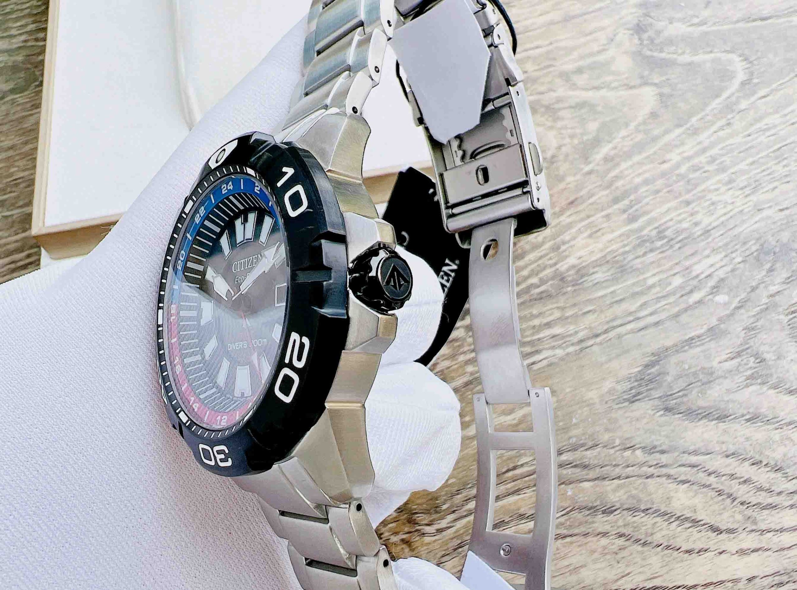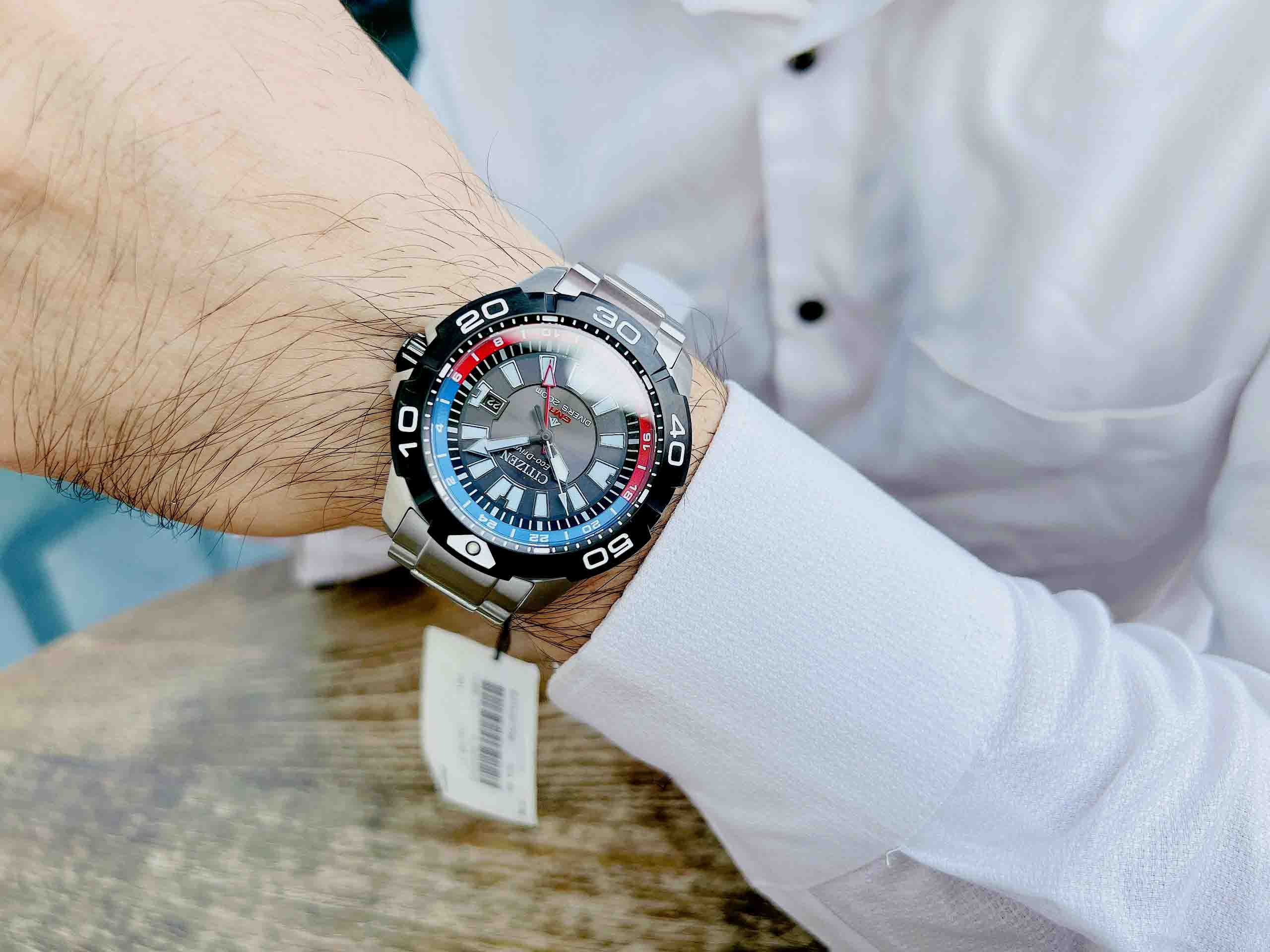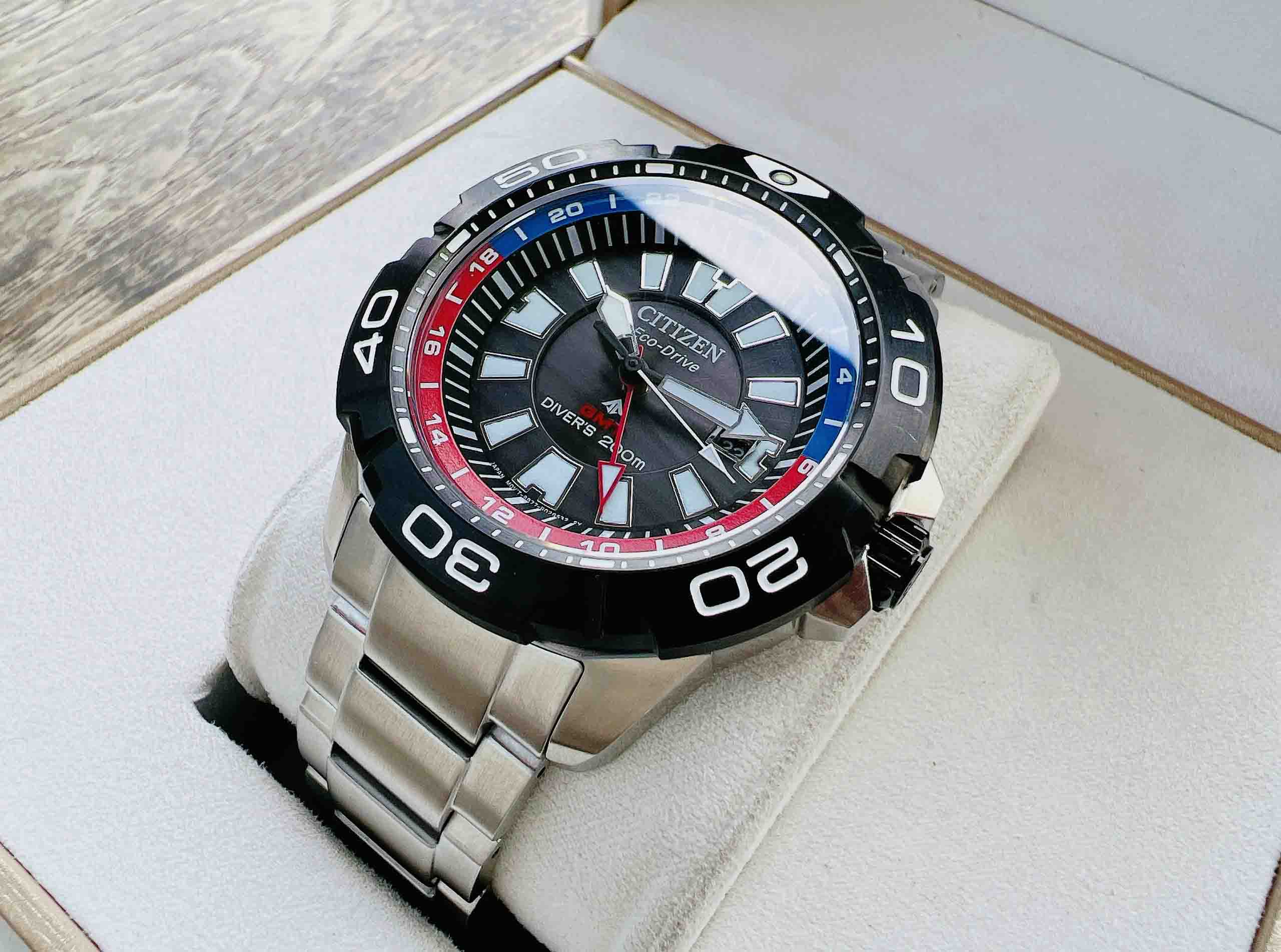 Citizen Promaster Diver BJ7128-59E với Chức năng: GMT Eco-Drive là đồng hồ chạy bằng năng lượng được chuyển hóa từ nguồn sáng nhân tạo hoặc tự nhiên siêu bền đến từ thương hiệu Nhật Bản Citizen