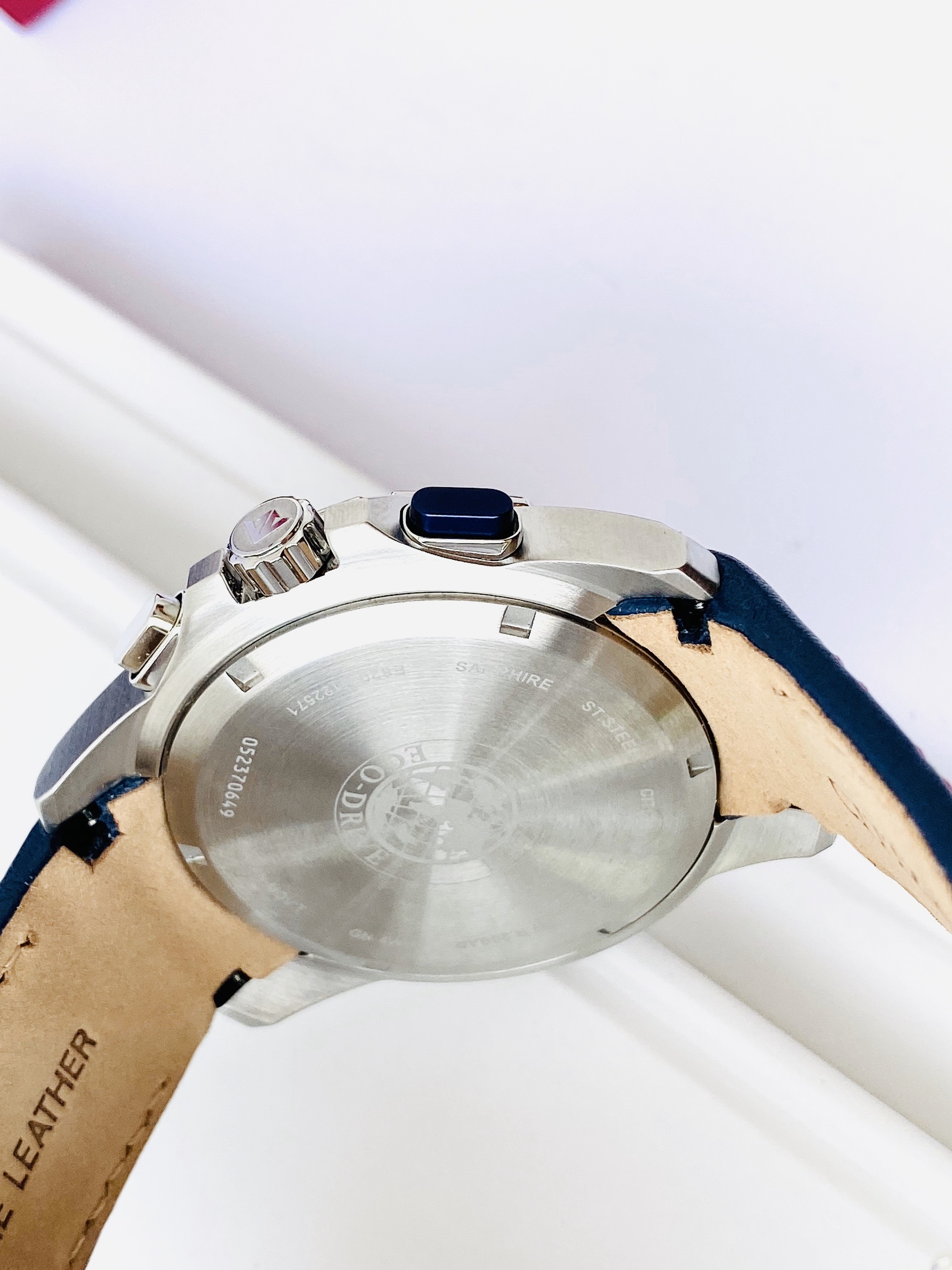 Độ hoàn thiện tỷ mỹ sắc sảo trong từng chi tiết dù là nhỏ nhất, mặt số xanh họa tiết đỏ tôn lên vẻ sang trọng thời thượng.