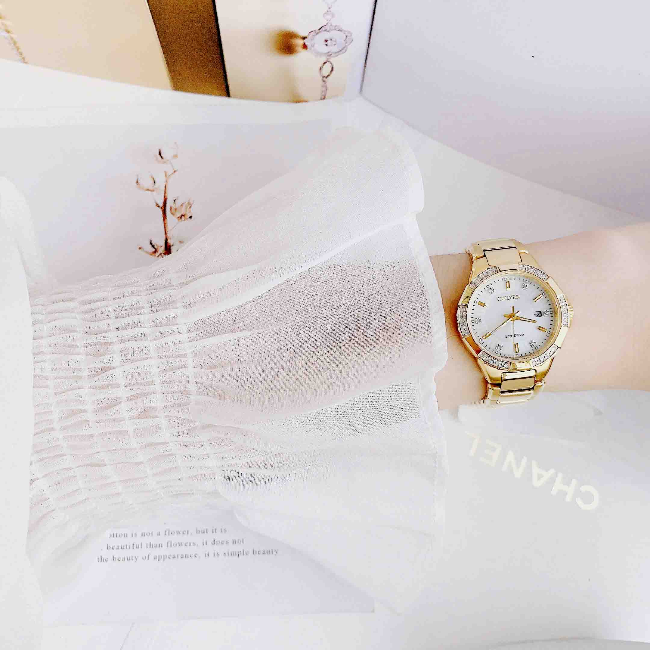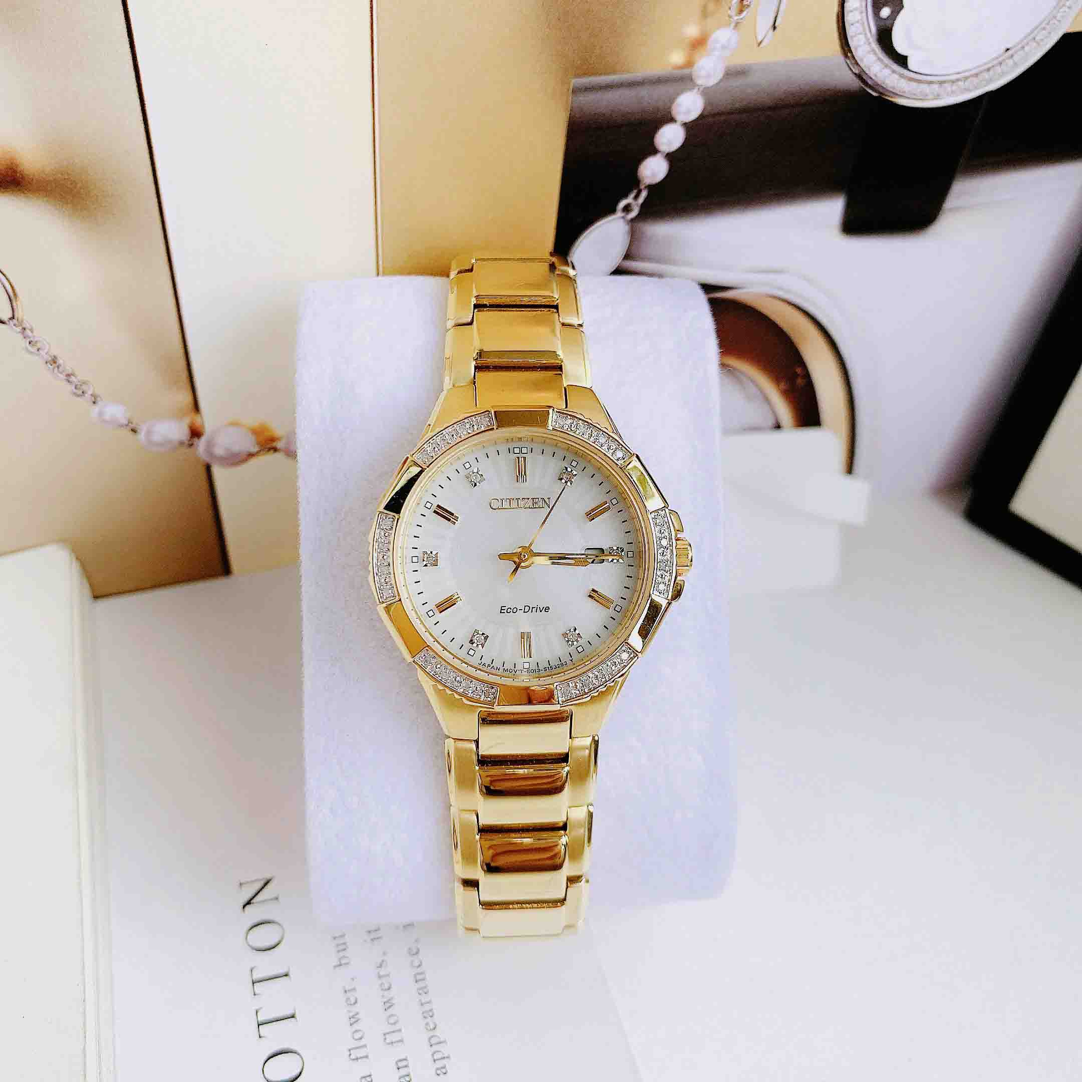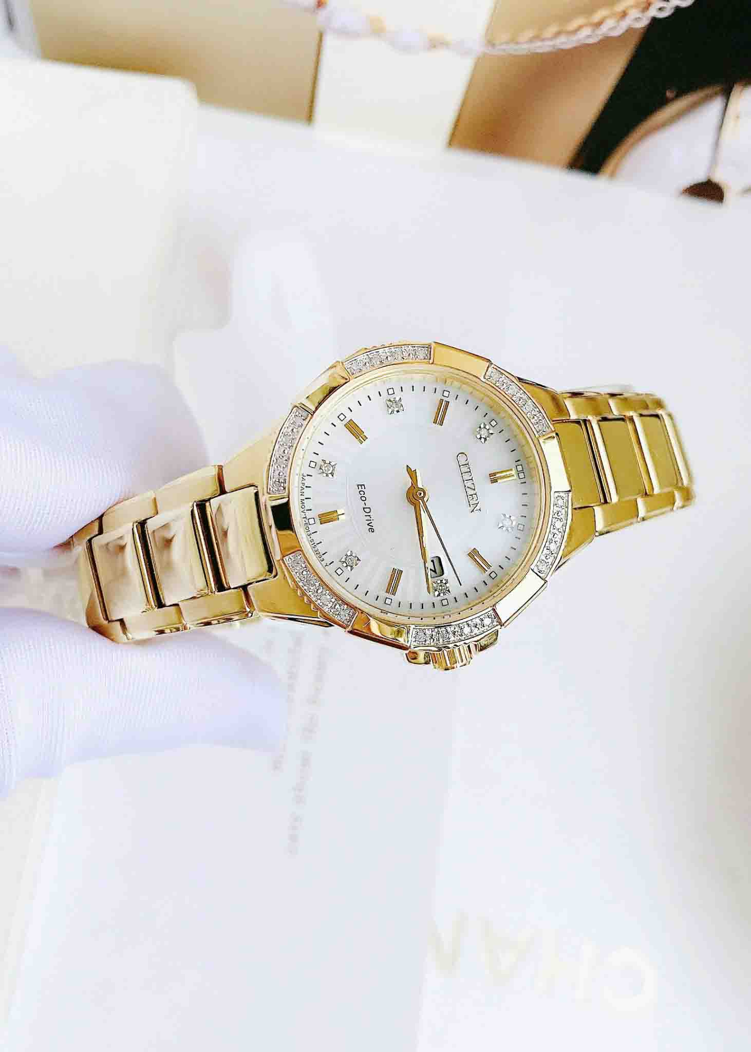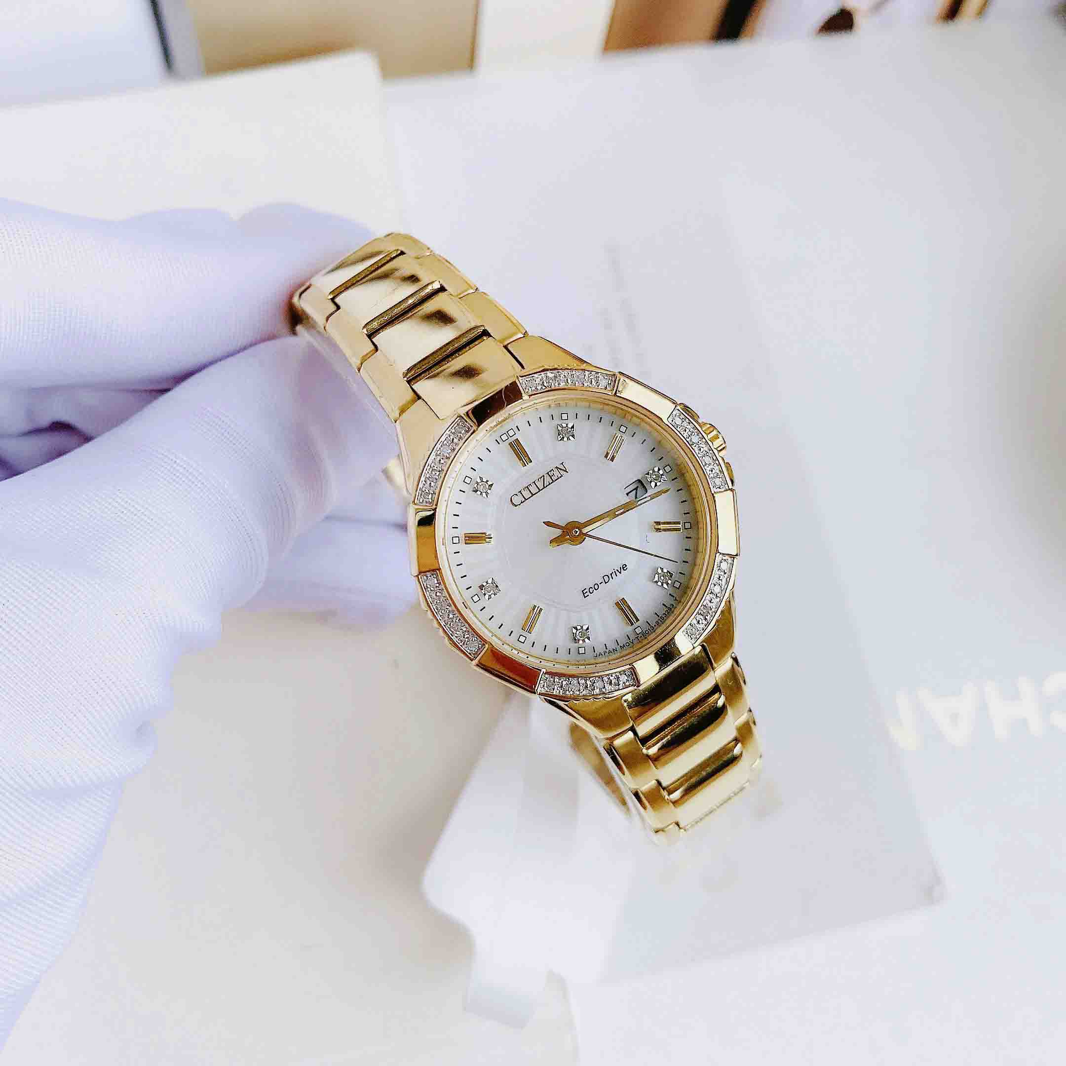 • Tỏa sáng rực rỡ với bộ sưu tập Citizen Riva, được cung cấp năng lượng bởi bất kỳ ánh sáng nào với công nghệ Pin Eco-Drive. Được trang trí bằng kim cương trên viền và mặt số, bạn sẽ chắc chắn nổi bật khi đeo Riva. Nổi bật với chất liệu thép không gỉ tông vàng với mặt số và ngày màu bạc rực rỡ.