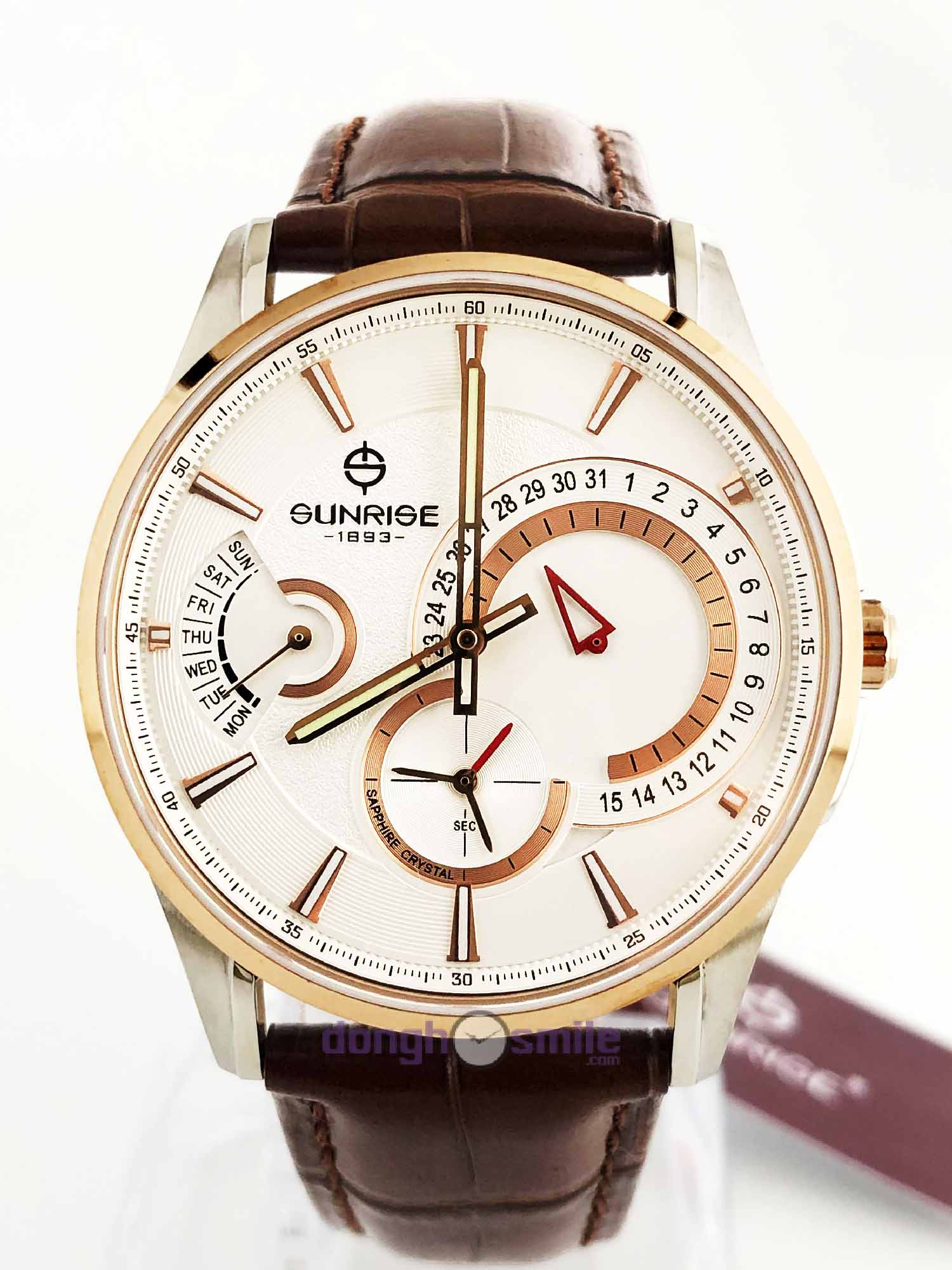 Hướng dẫn chọn sizeĐồng hồ đeo tay Sunrise dây da nam 1201PA-01