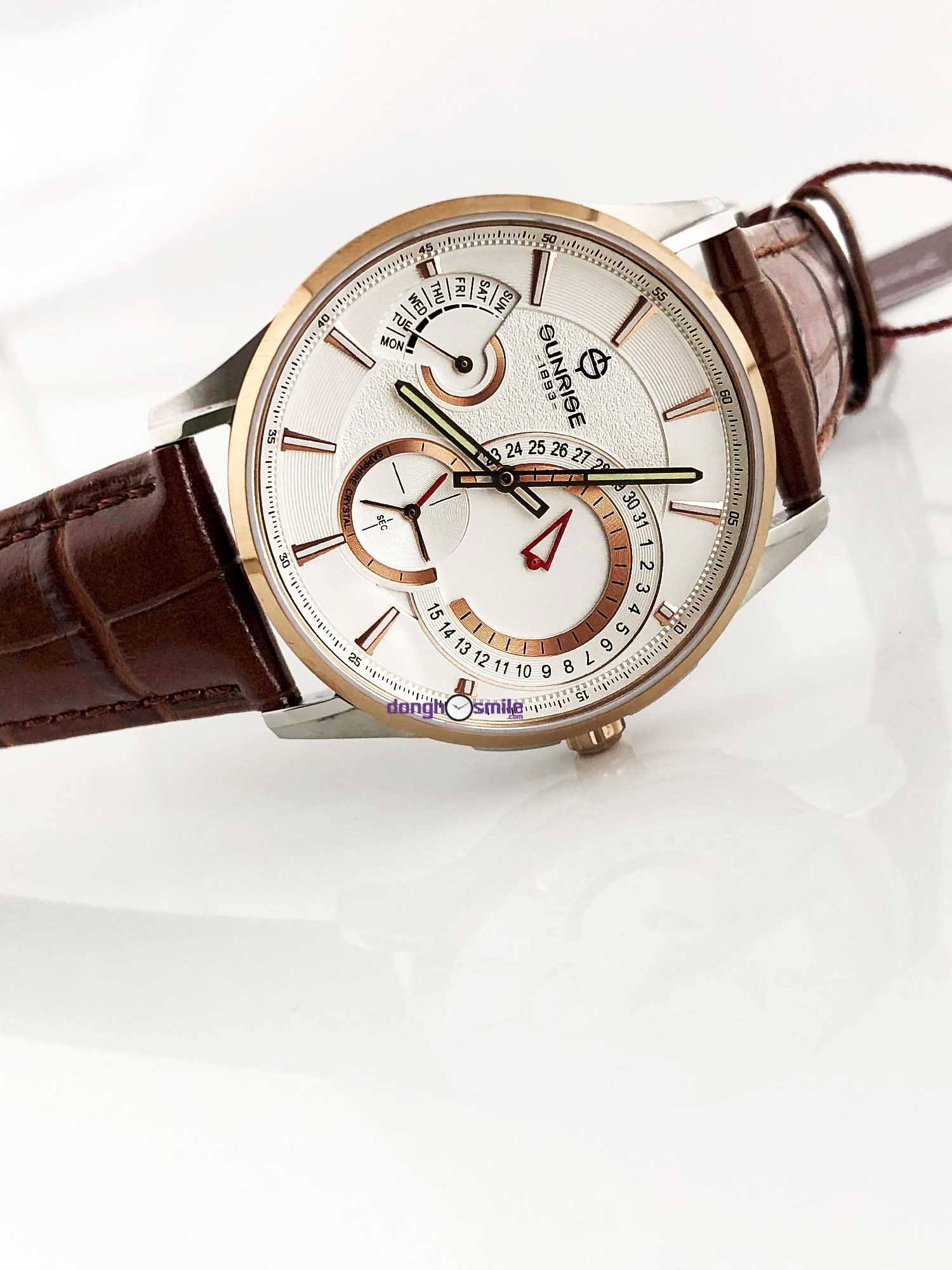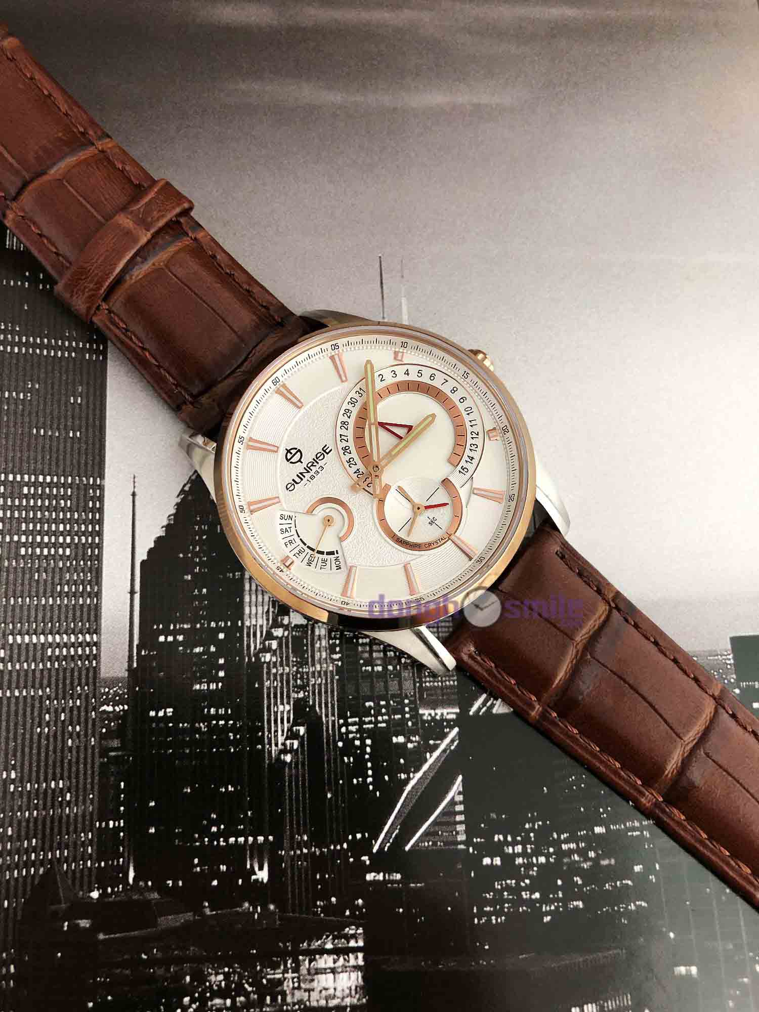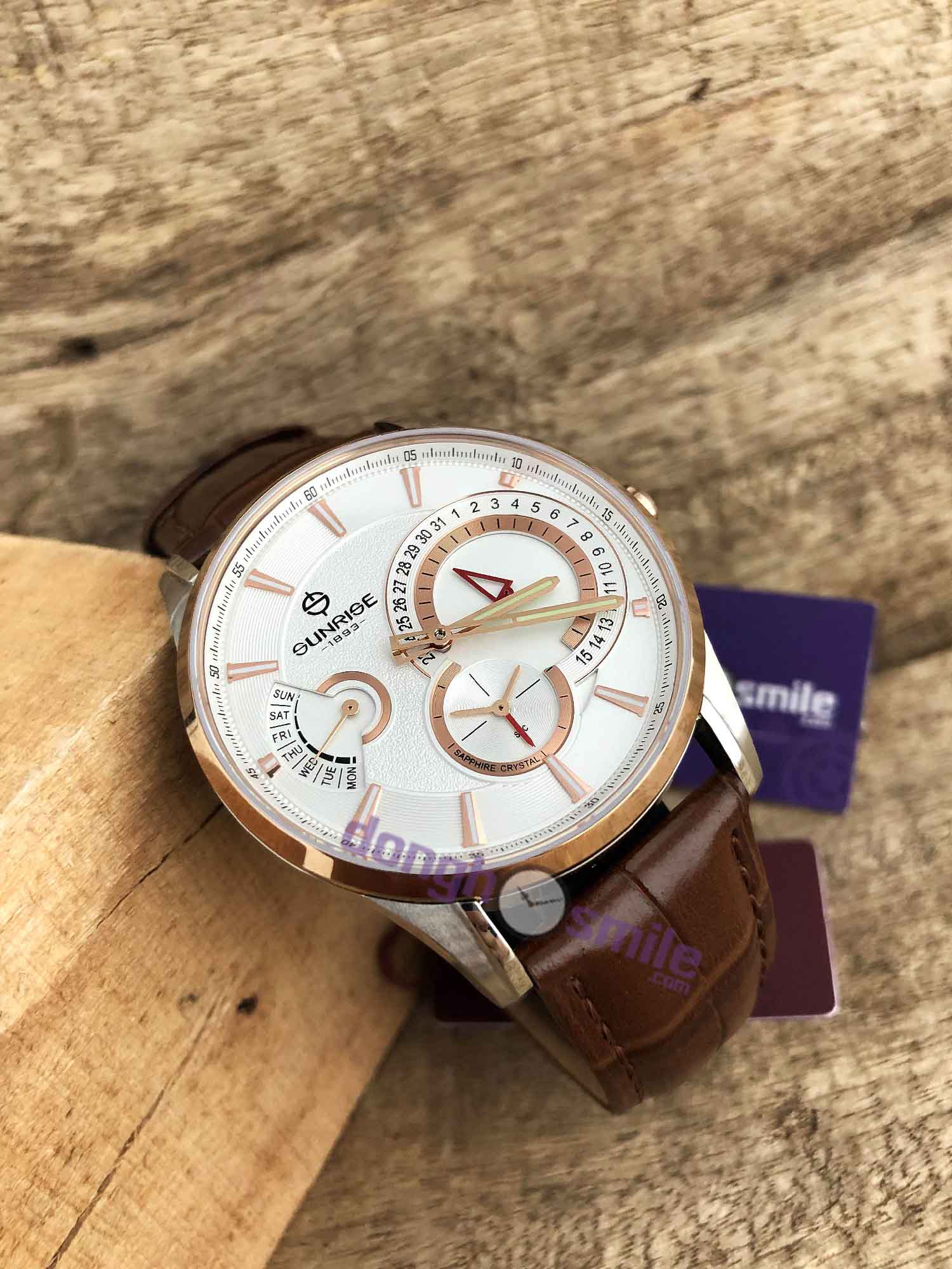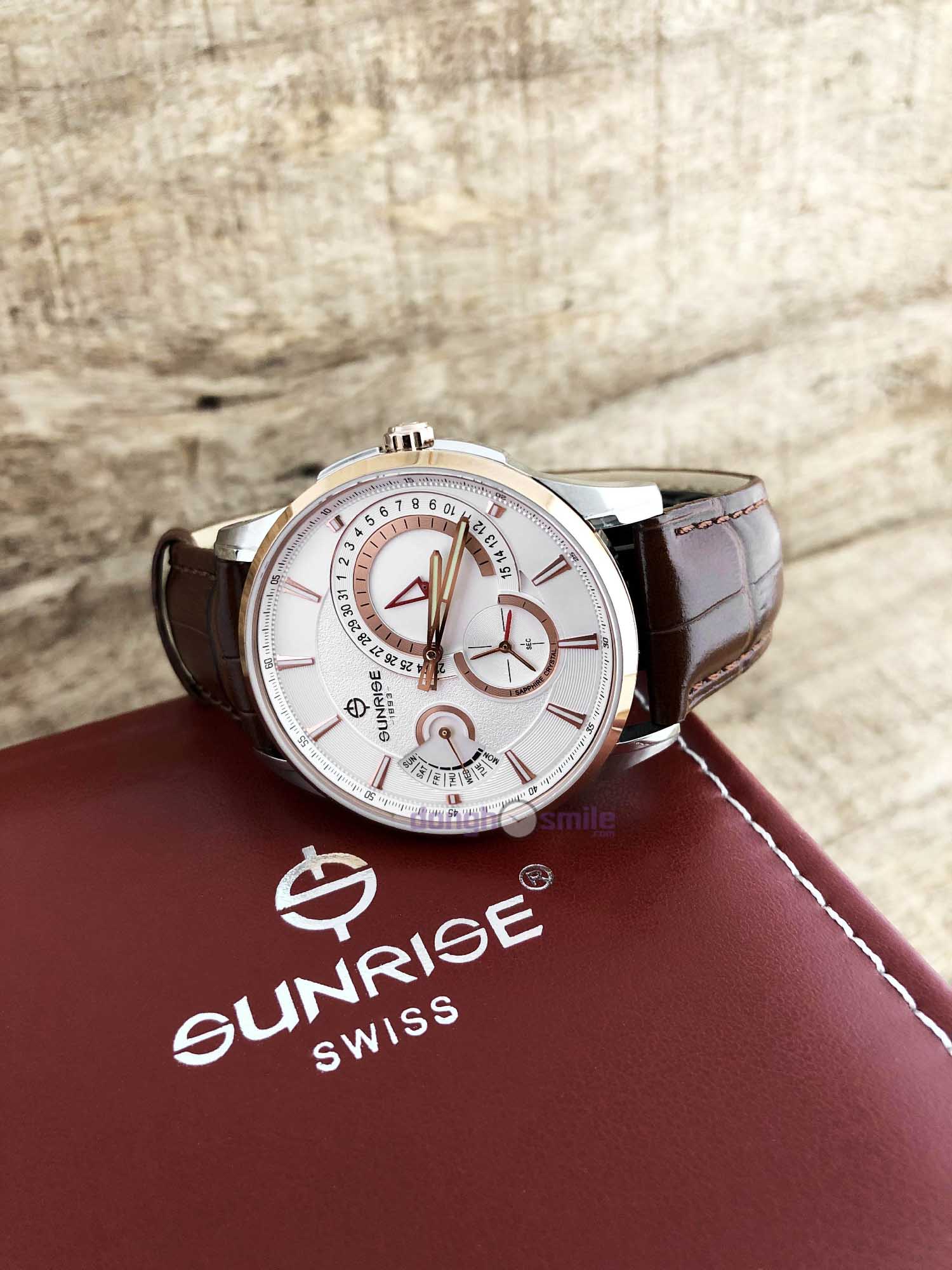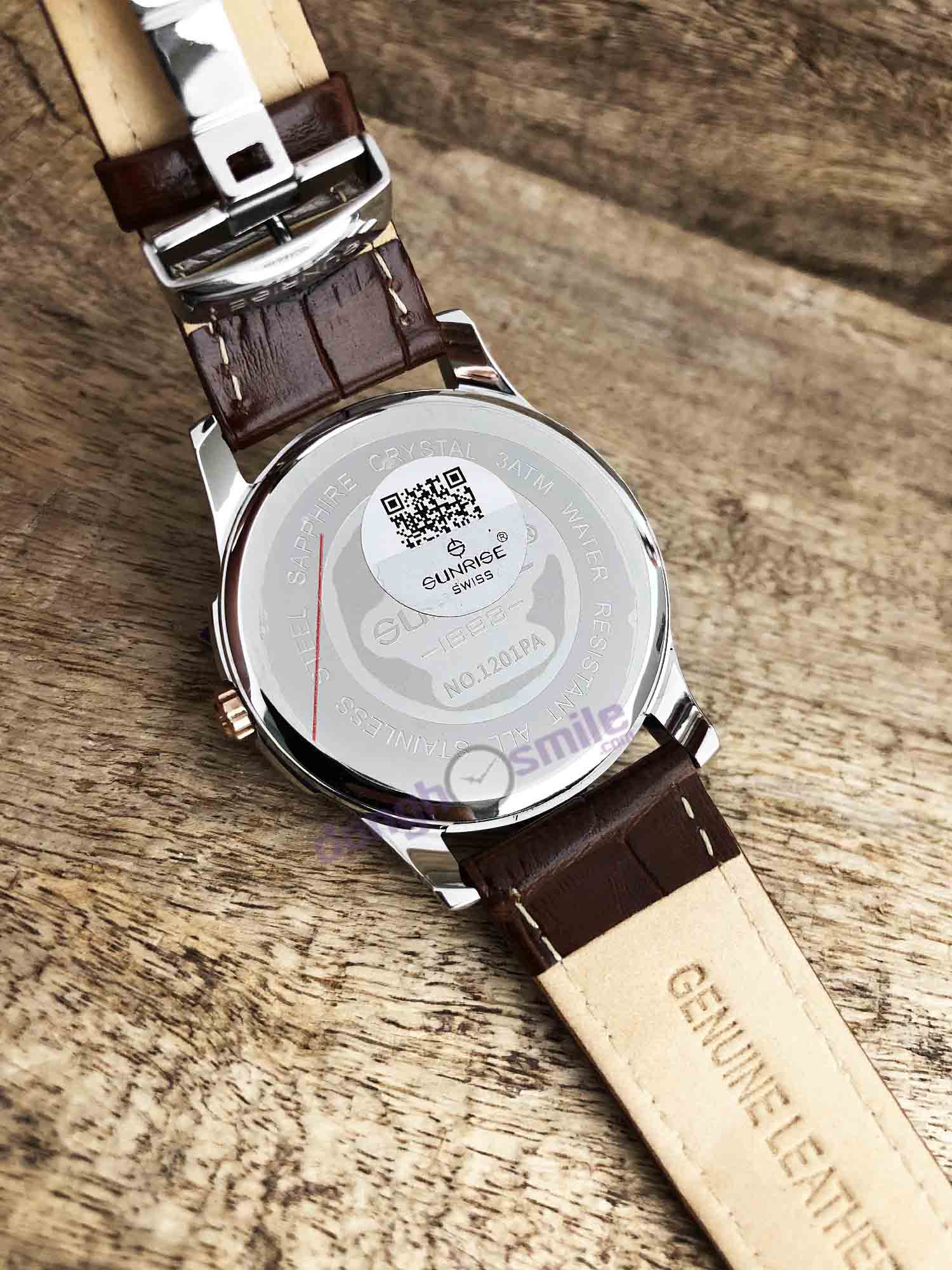 Hướng dẫn chọn sizeĐồng hồ đeo tay Sunrise dây da nam 1201PA-01