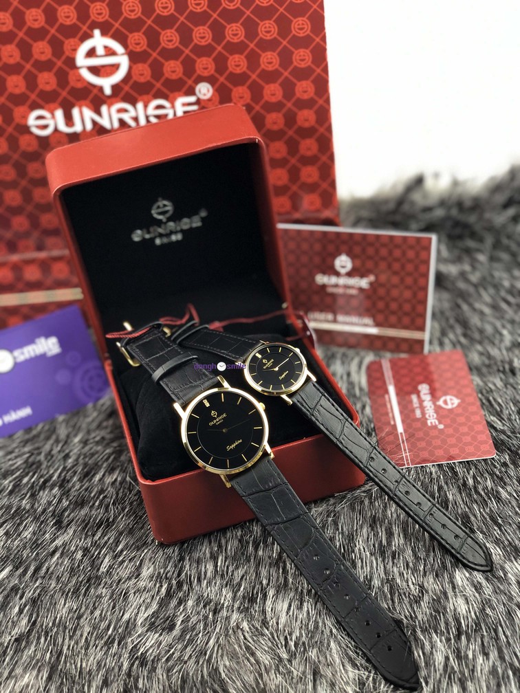 Đồng hồ đôi dây da giá rẻ Sunrise C-DM737PWC