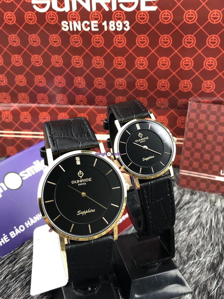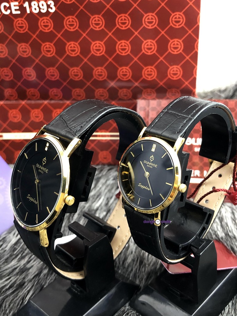 Đồng hồ đôi dây da giá rẻ Sunrise C-DM737PWC