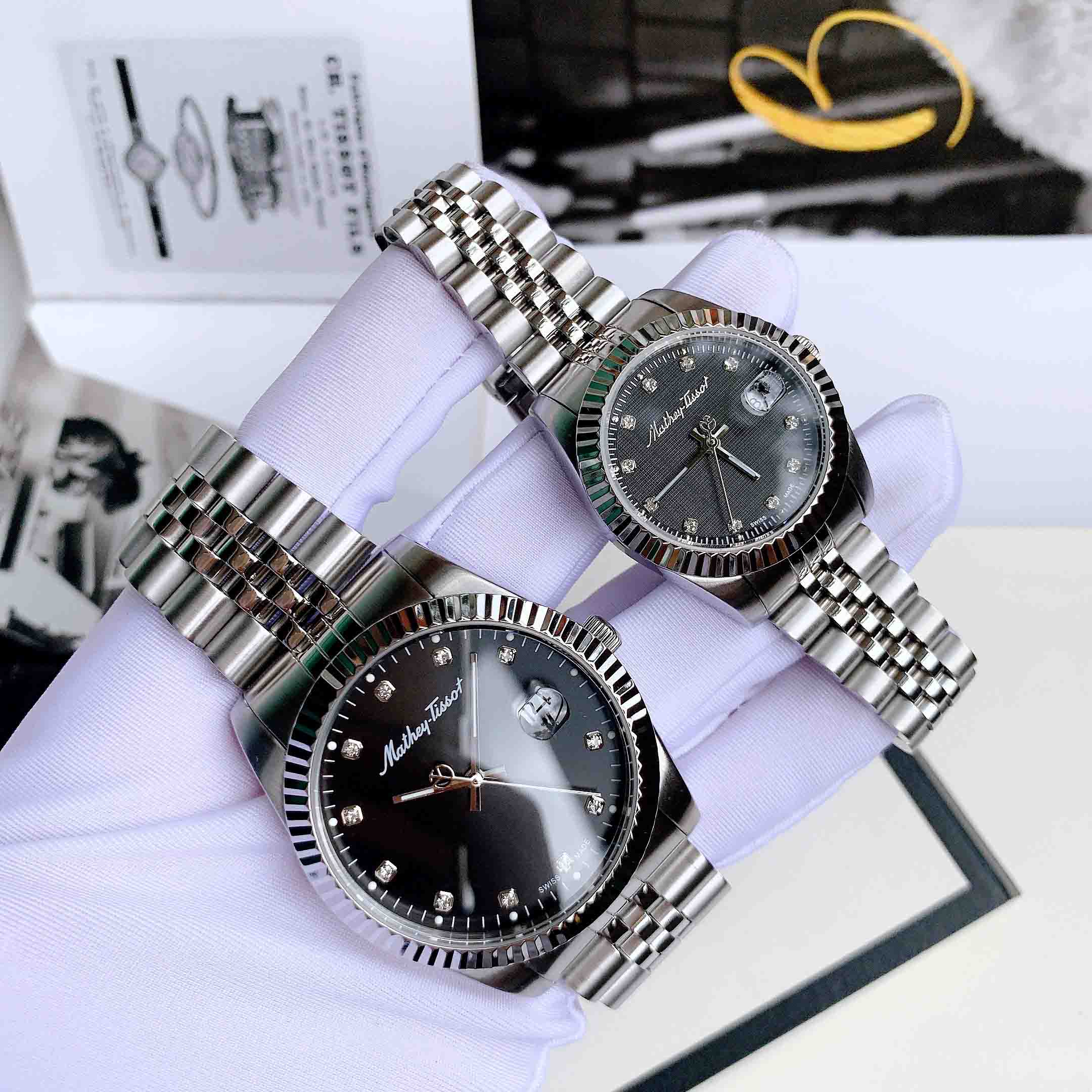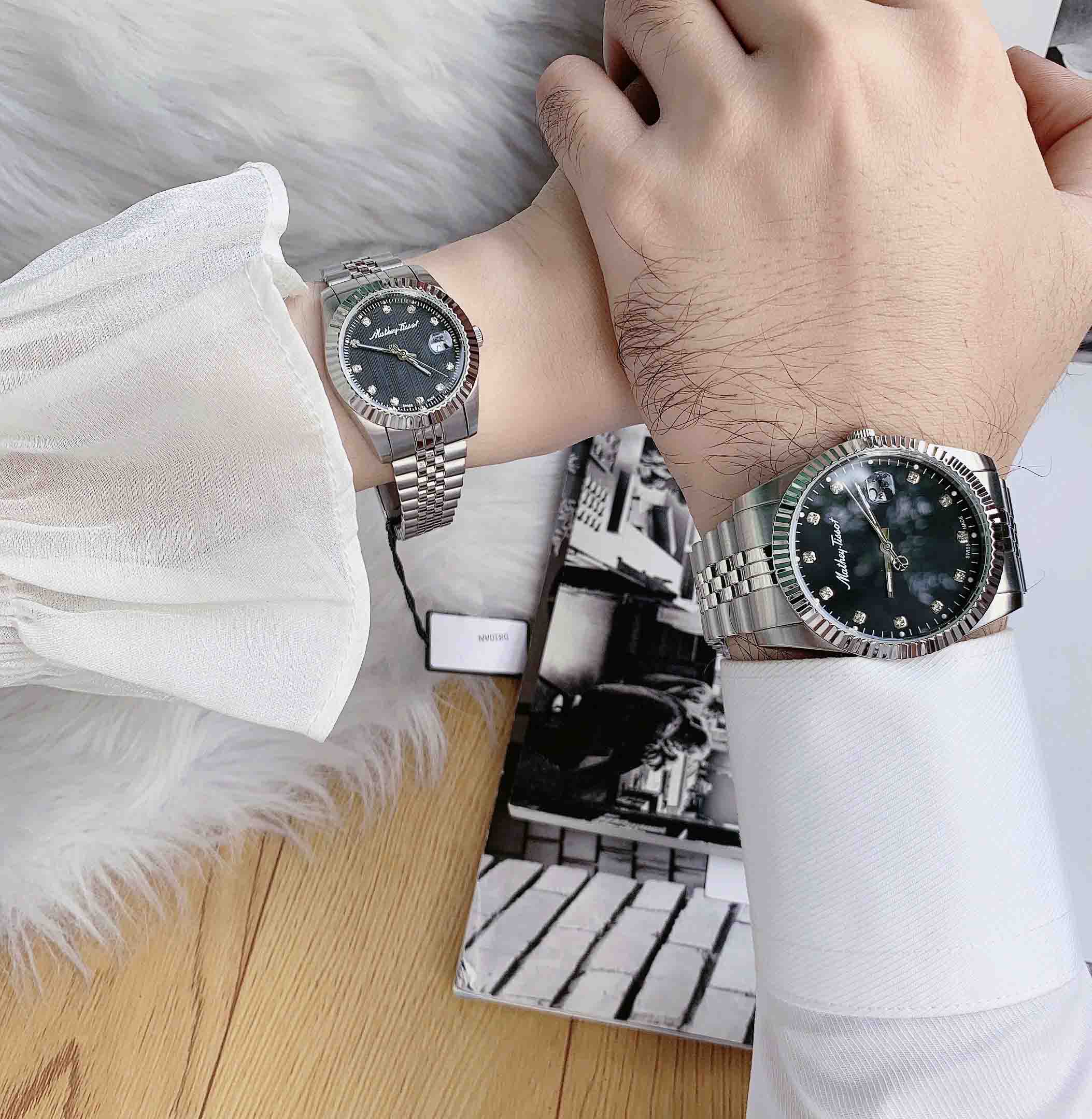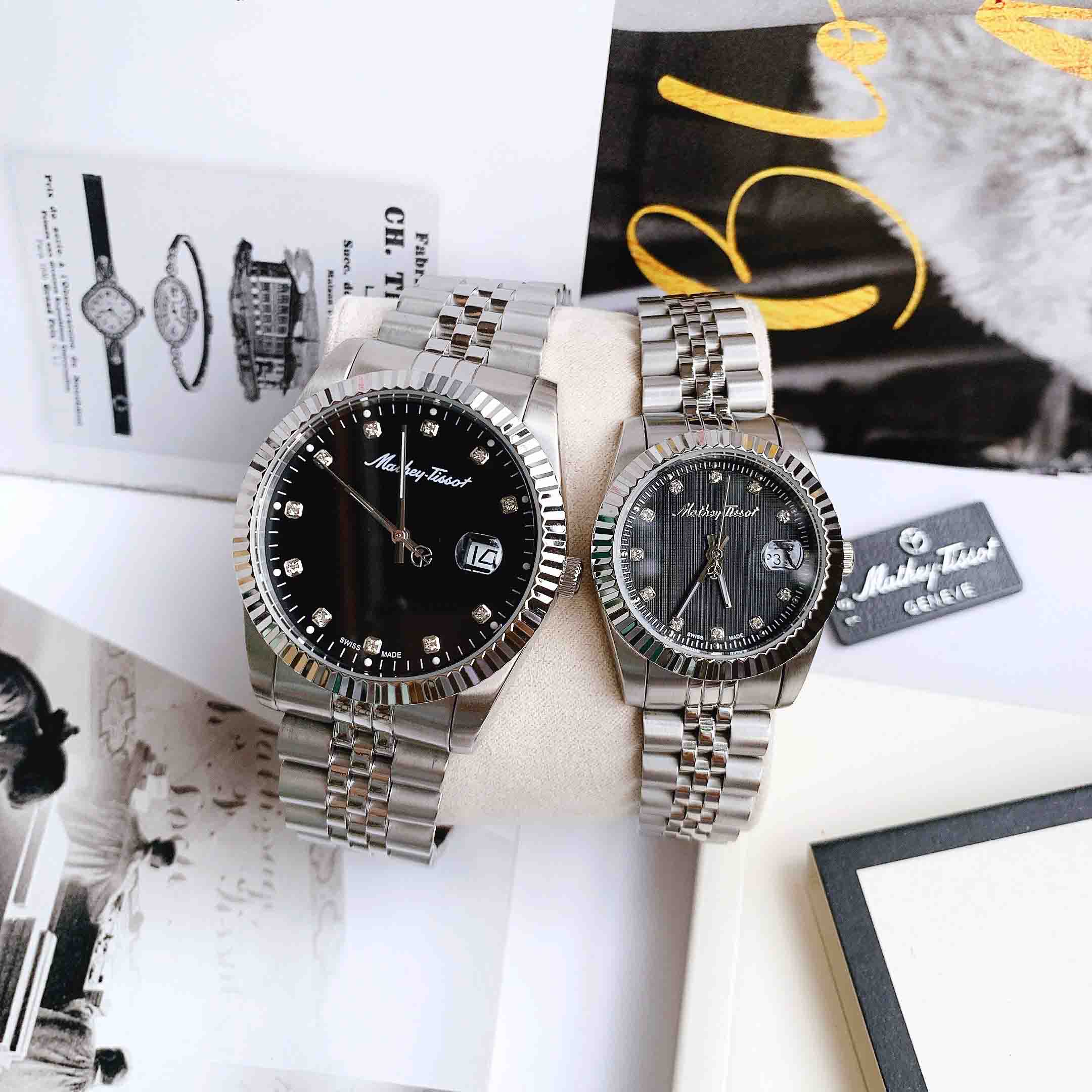 Đồng Hồ Đôi Mathey Tissot H710AN D810AN Mặt Đen