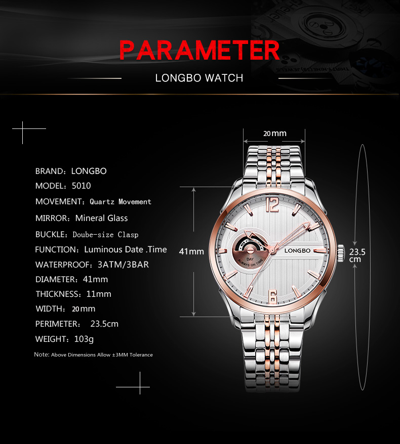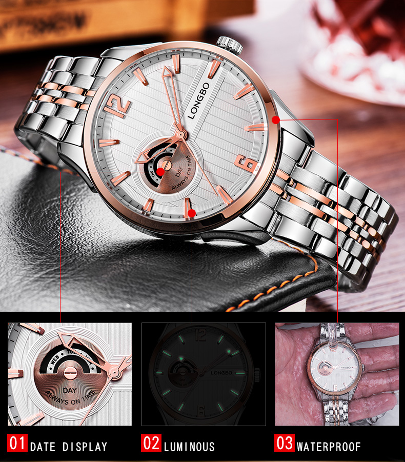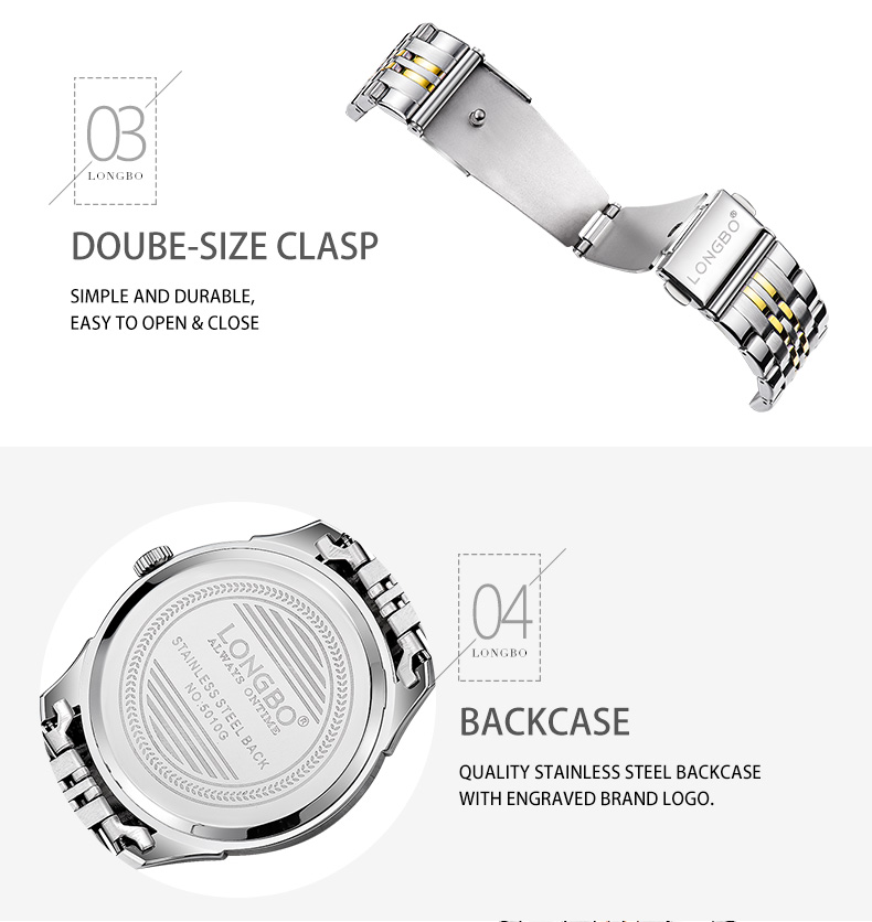 Đồng hồ longbo nam dây inox chính hãng LB5010-01