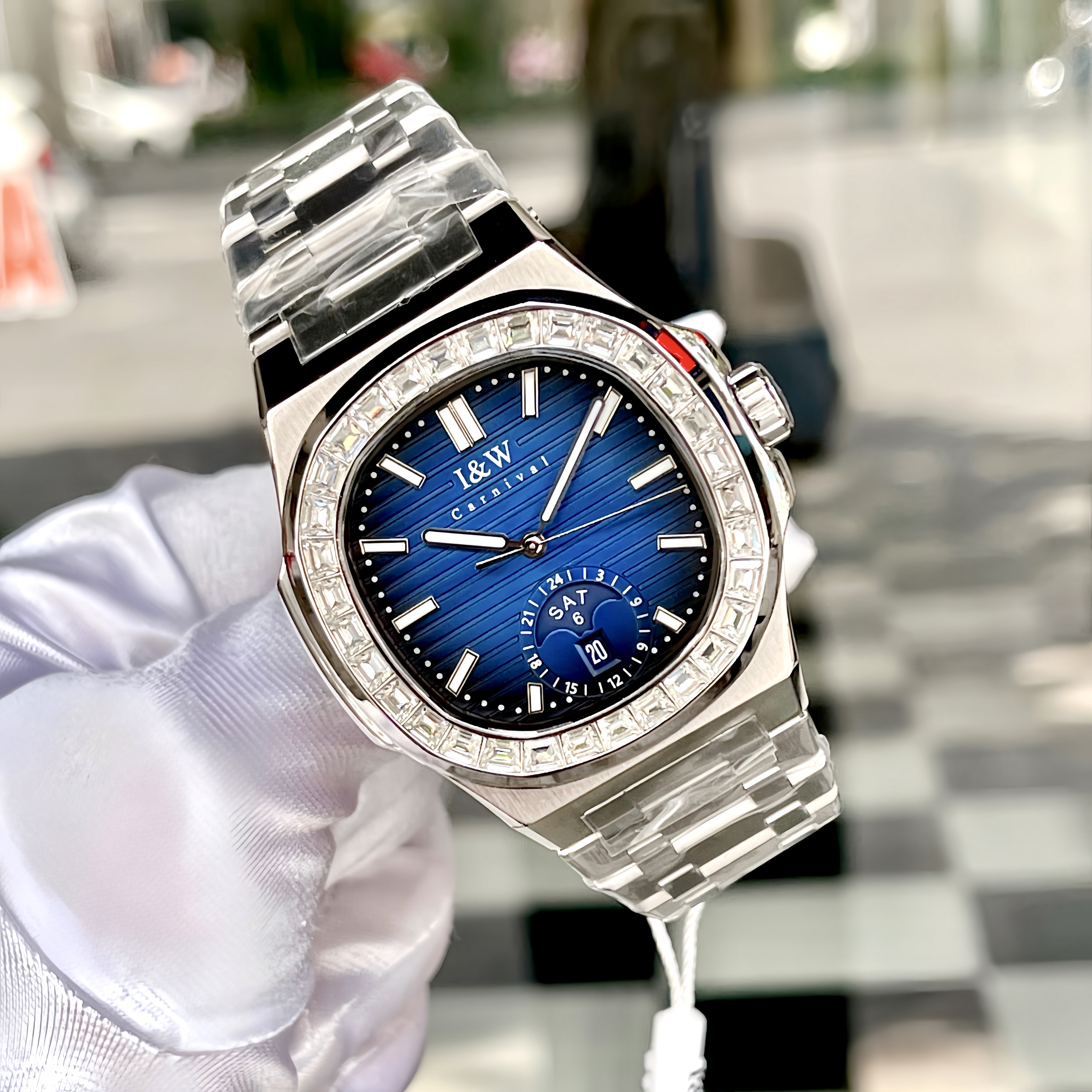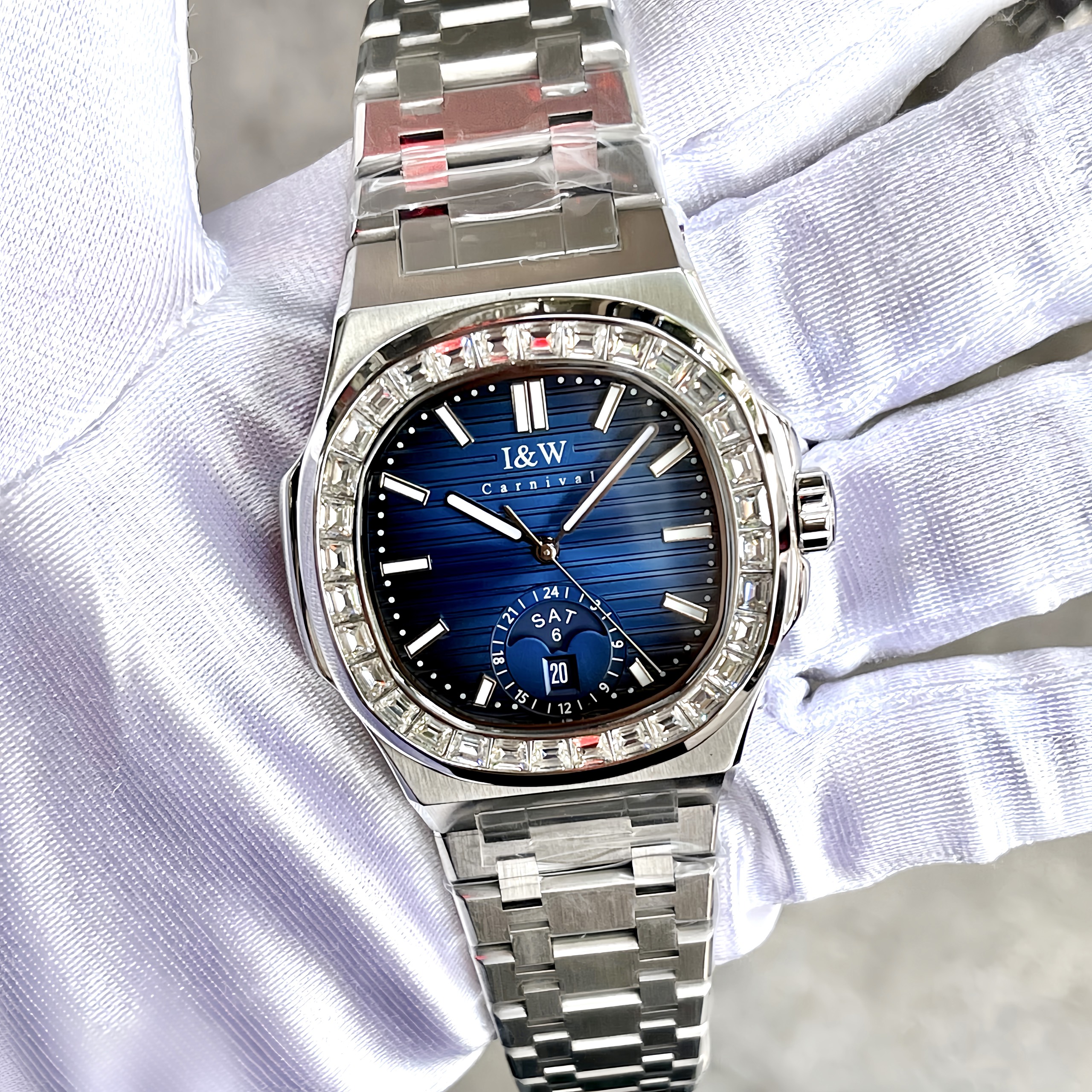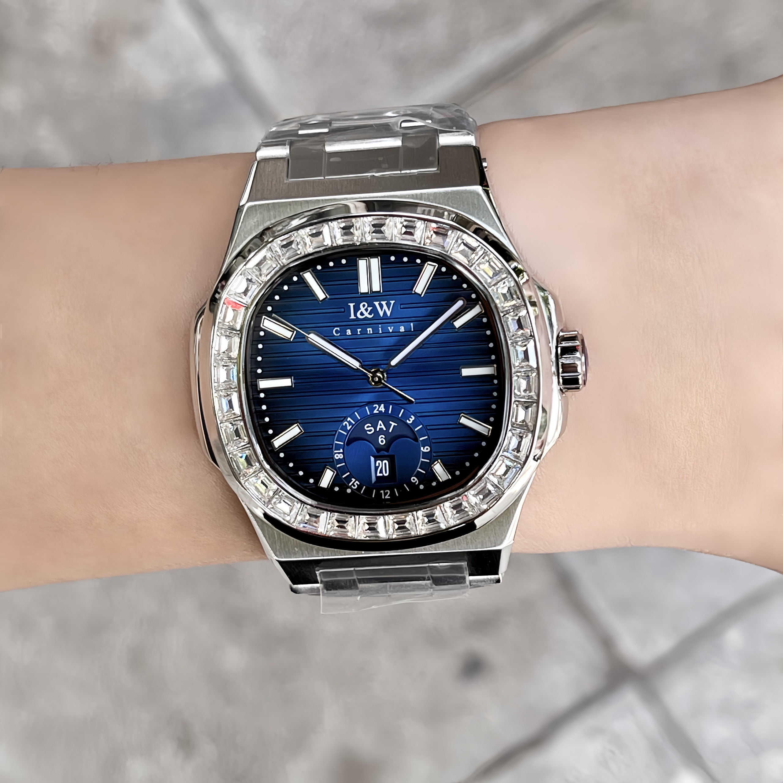 Trong thế giới đồng hồ, I&W Carnival 735G đã tạo nên sức hút đặc biệt với thiết kế mặt vuông và các chi tiết tinh tế. Được trang bị mặt số màu xanh đặc trưng, viền đính đá sang trọng cùng dây đeo thép, chiếc đồng hồ này không chỉ ghi điểm với vẻ ngoài thu hút mà còn mang đến sự chính xác và đáng tin cậy.