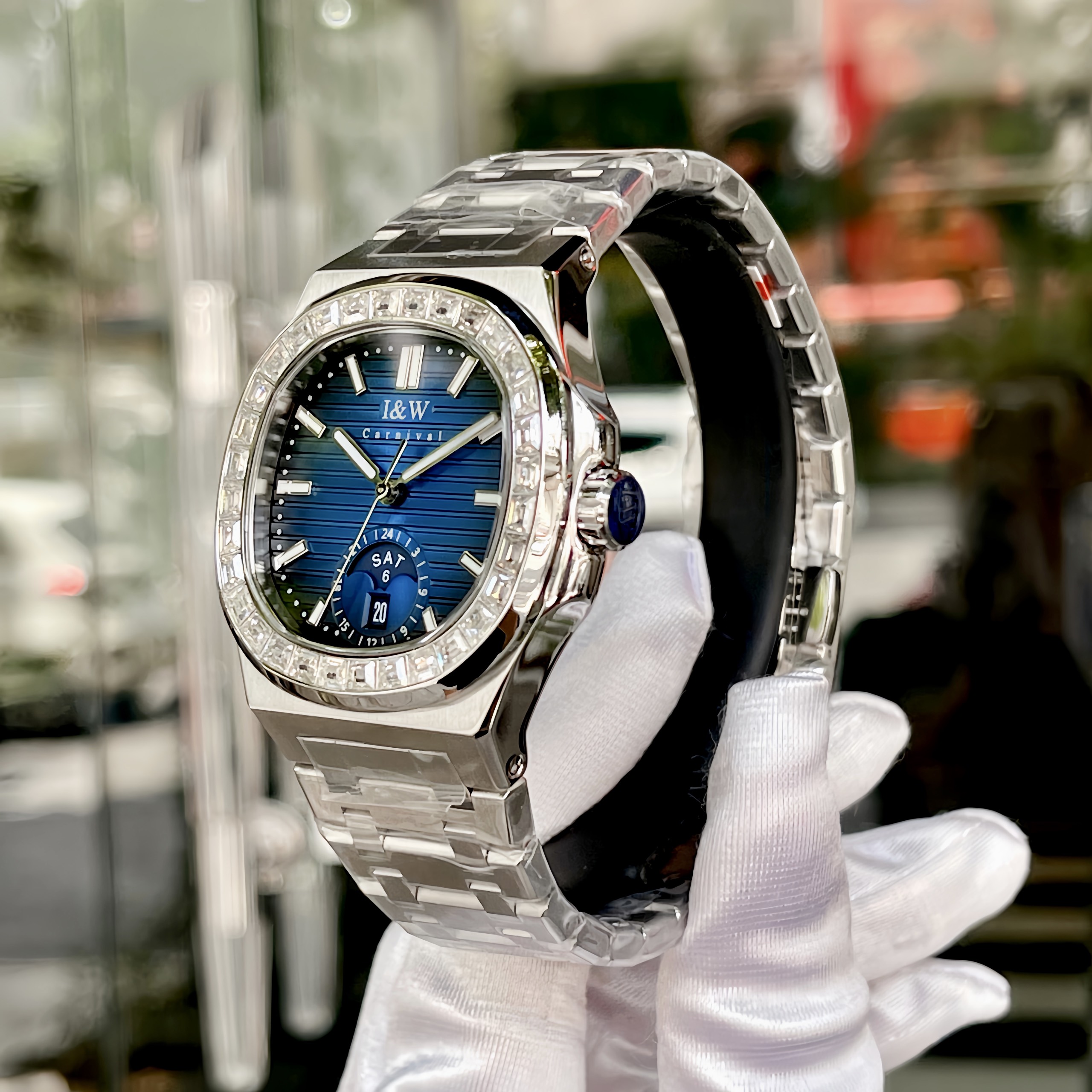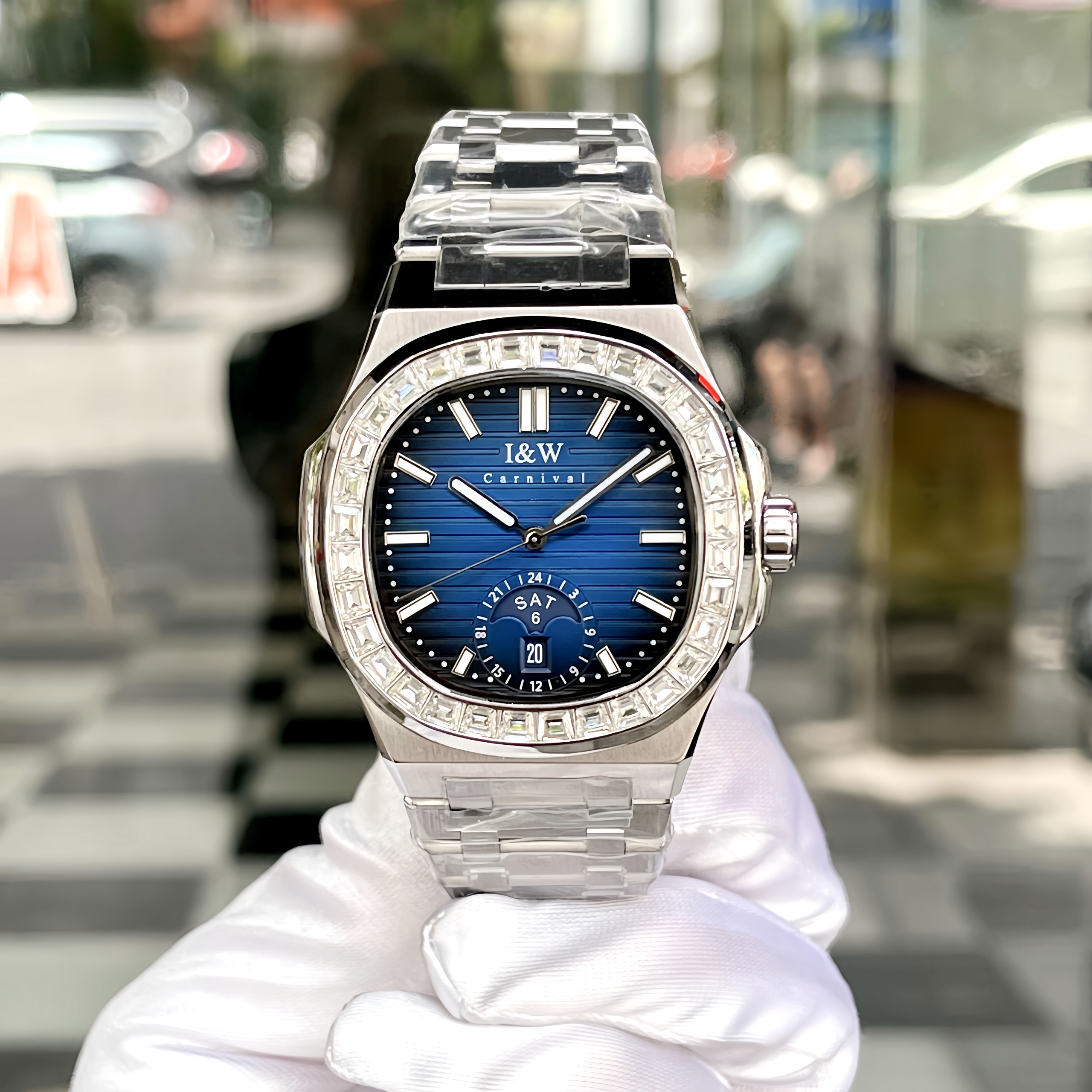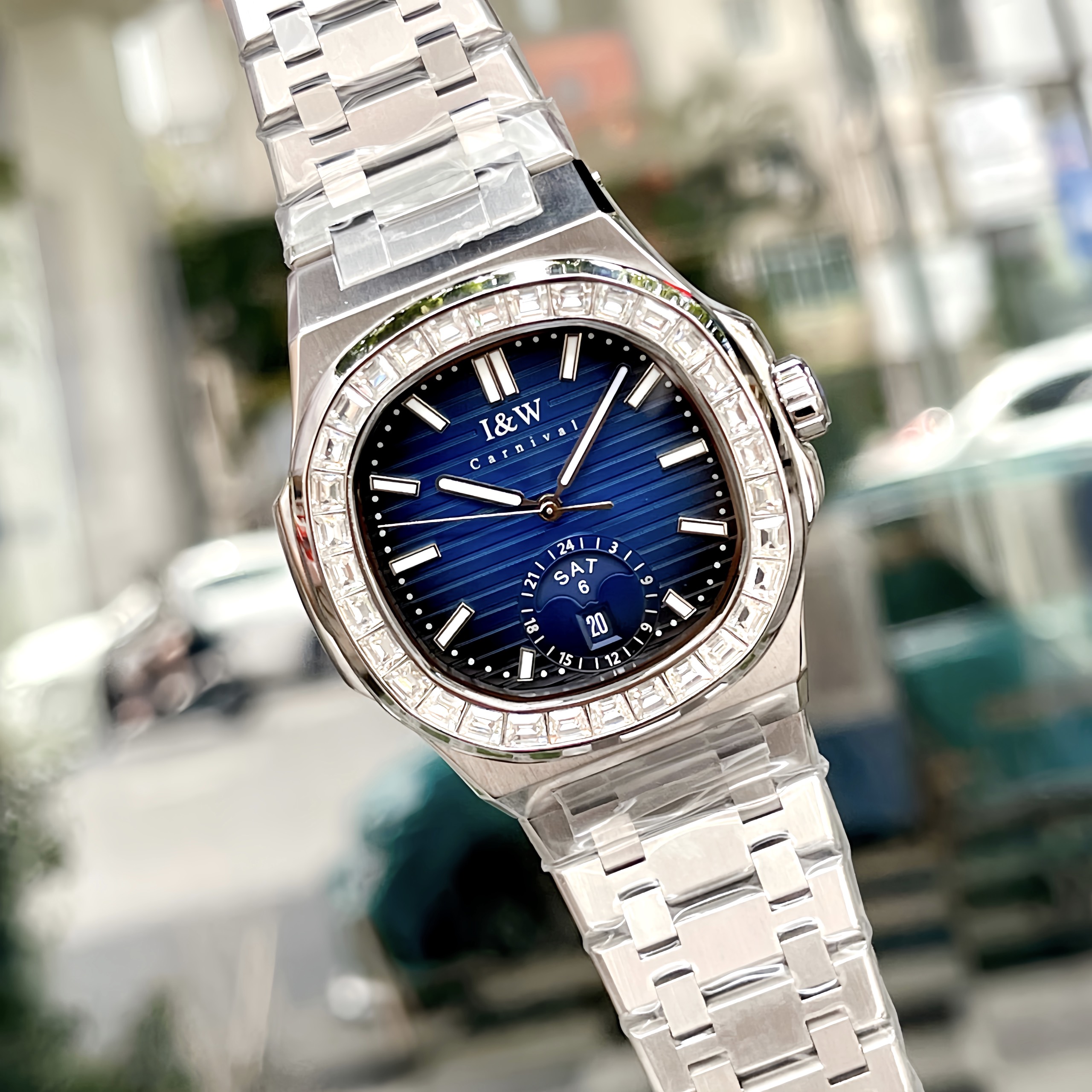 Trong thế giới đồng hồ, I&W Carnival 735G đã tạo nên sức hút đặc biệt với thiết kế mặt vuông và các chi tiết tinh tế. Được trang bị mặt số màu xanh đặc trưng, viền đính đá sang trọng cùng dây đeo thép, chiếc đồng hồ này không chỉ ghi điểm với vẻ ngoài thu hút mà còn mang đến sự chính xác và đáng tin cậy.