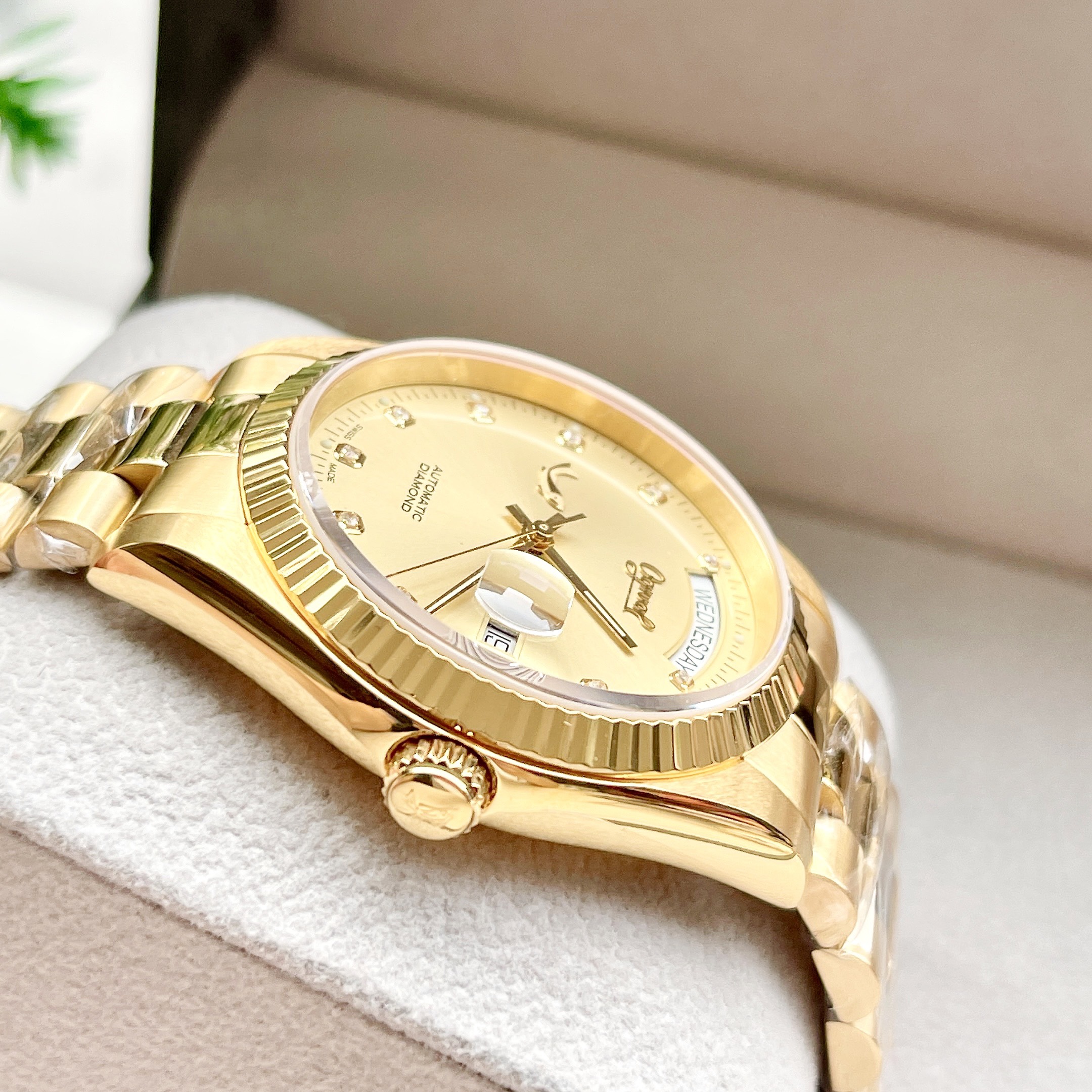 – Thiết góc cạnh, đường bo viền tinh tế, mặt số không cầu kỳ cùng cọc số kim cương nhân tạo -thực sự là một sự lựa chọn ko thể tuyệt vời hơn cho những quý ông thích sự đơn giản.