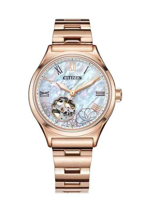 – Đồng Hồ Nữ Citizen Automatic PC1007-81D Dây Sắt Vàng Hồng Mặt Khảm Trai Sapphire