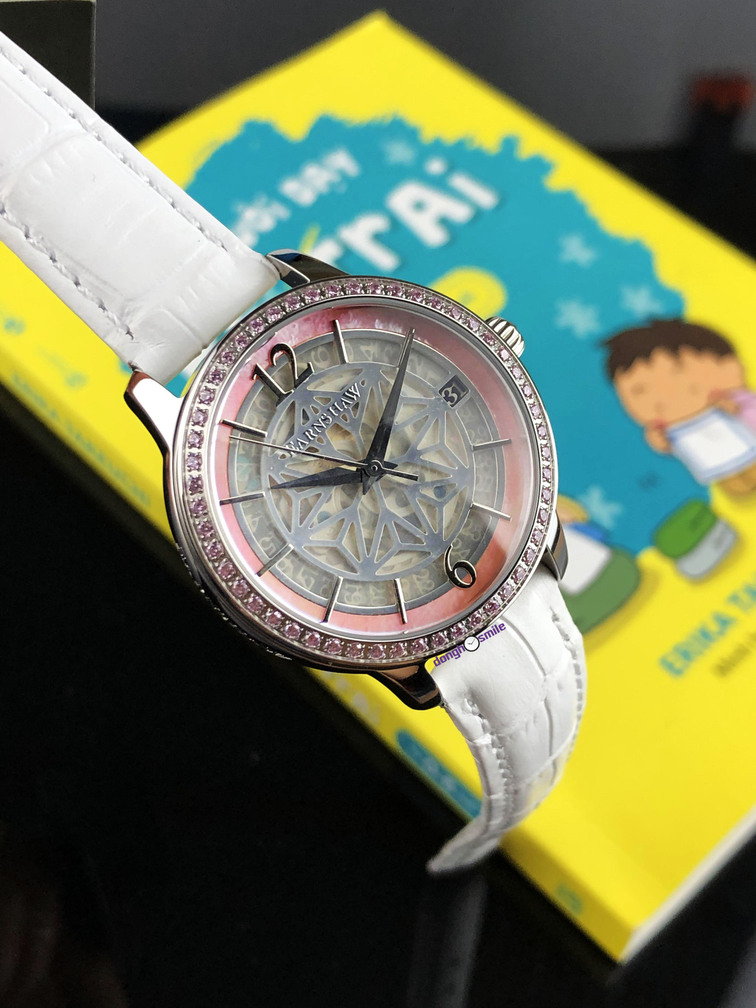Đồng hồ nữ dây da trắng Earnshaw ES-8064-01
