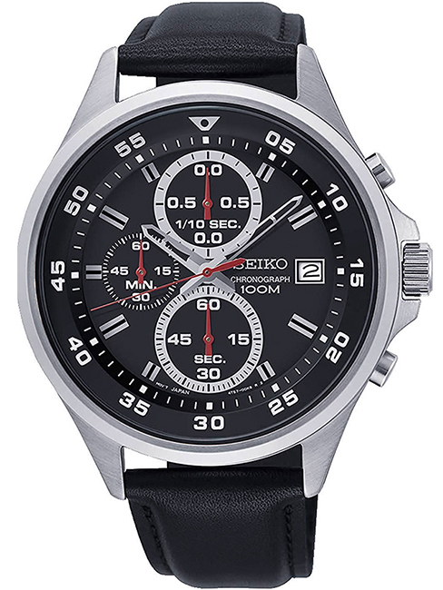 Đồng hồ thể thao nam đẹp Seiko mặt đen 6 kim SKS635P1