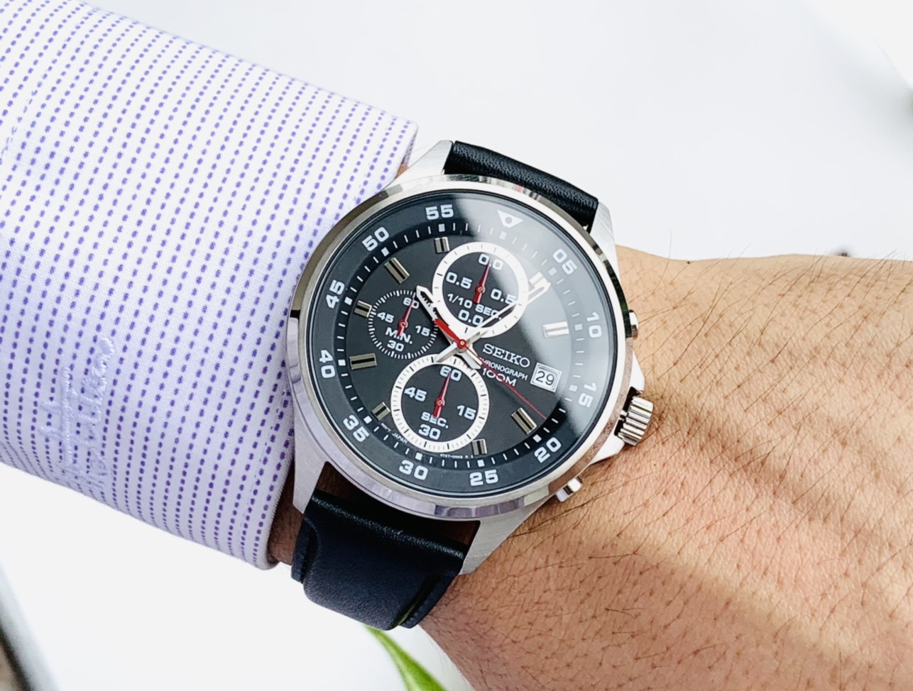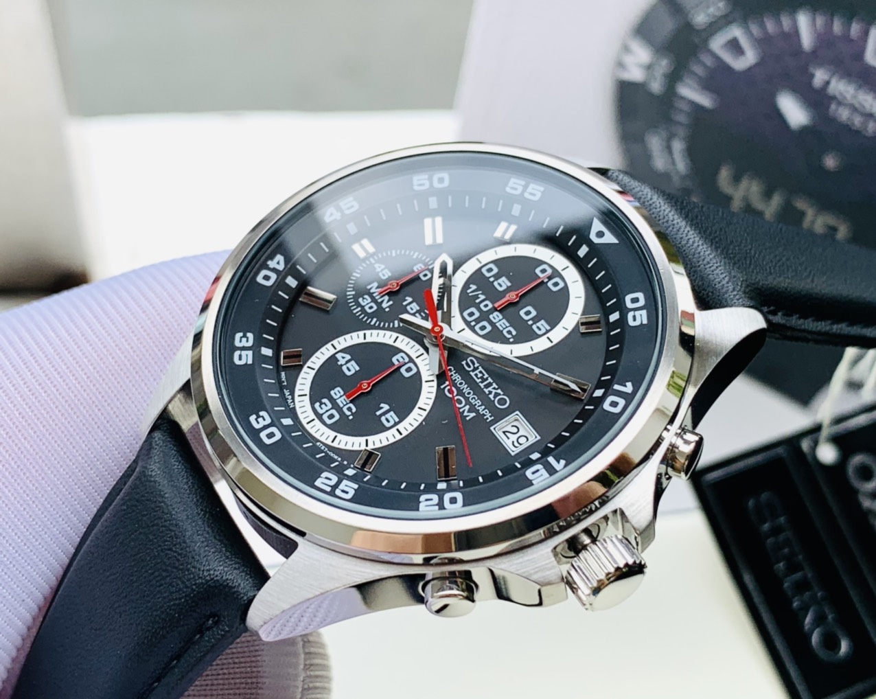 Đồng hồ thể thao nam đẹp Seiko mặt đen 6 kim SKS635P1