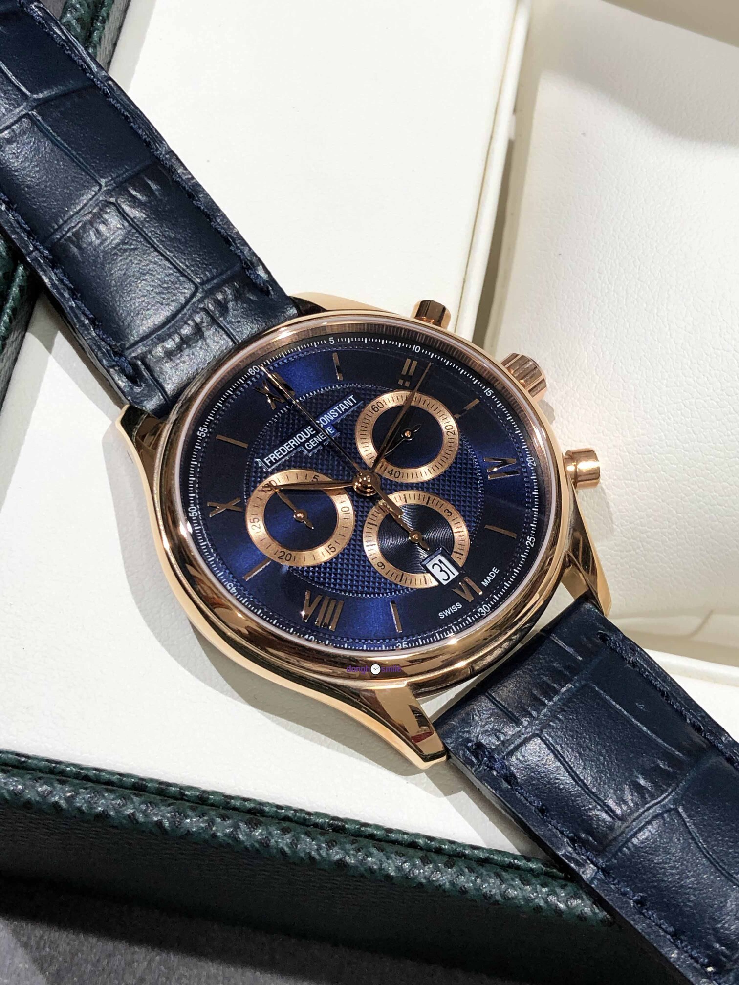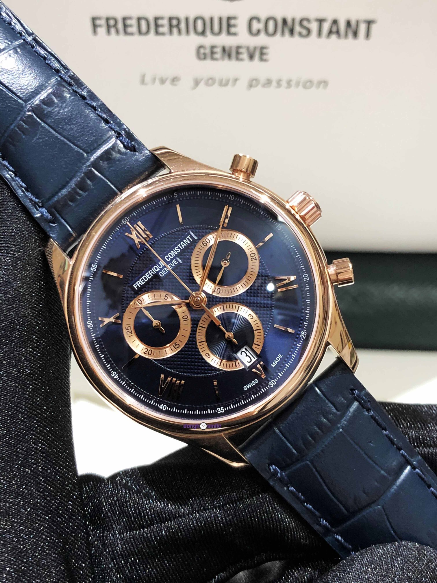 Frederique Constant Chronograph Rose Gold Blue Dial FC-292MNG5B4