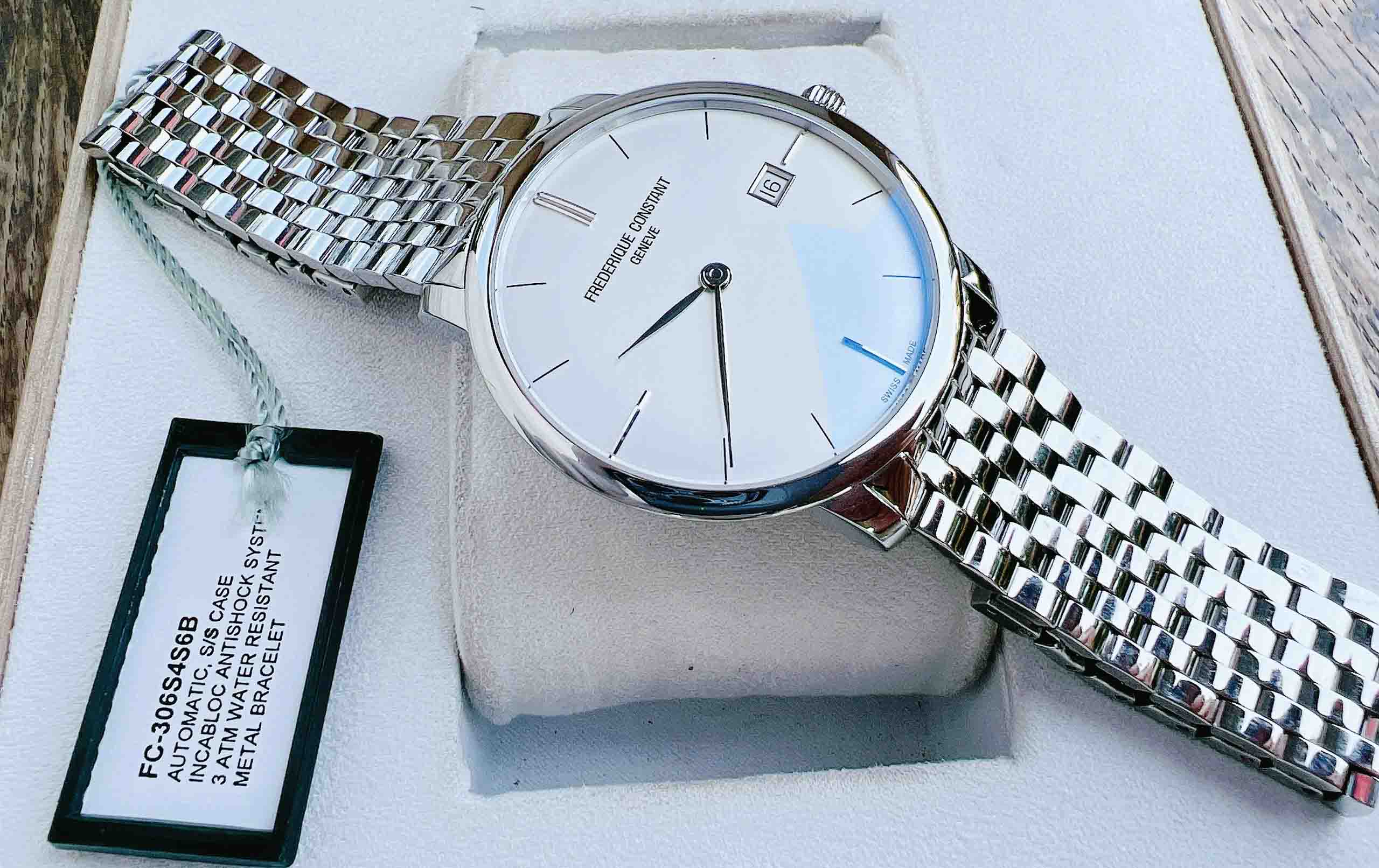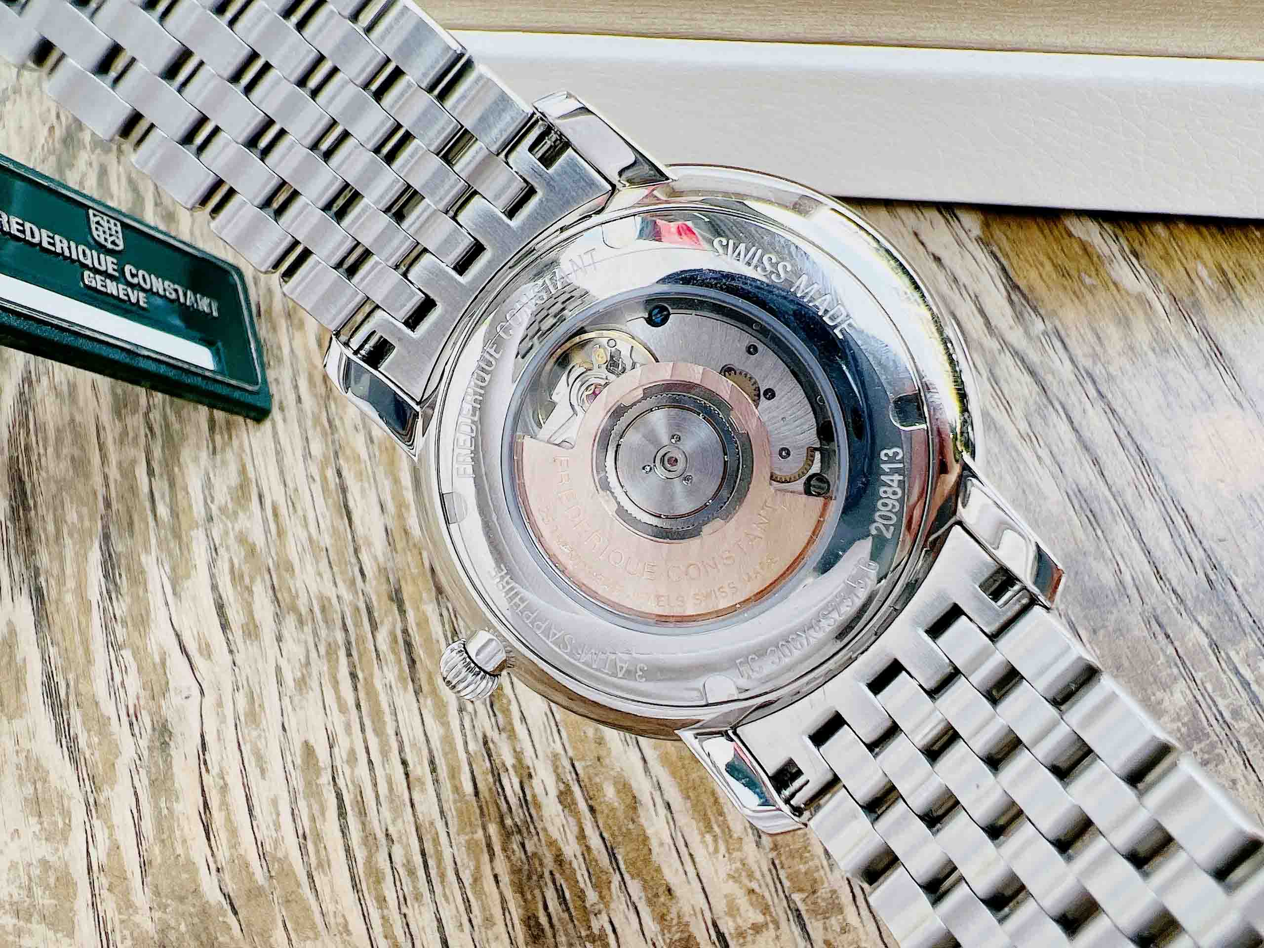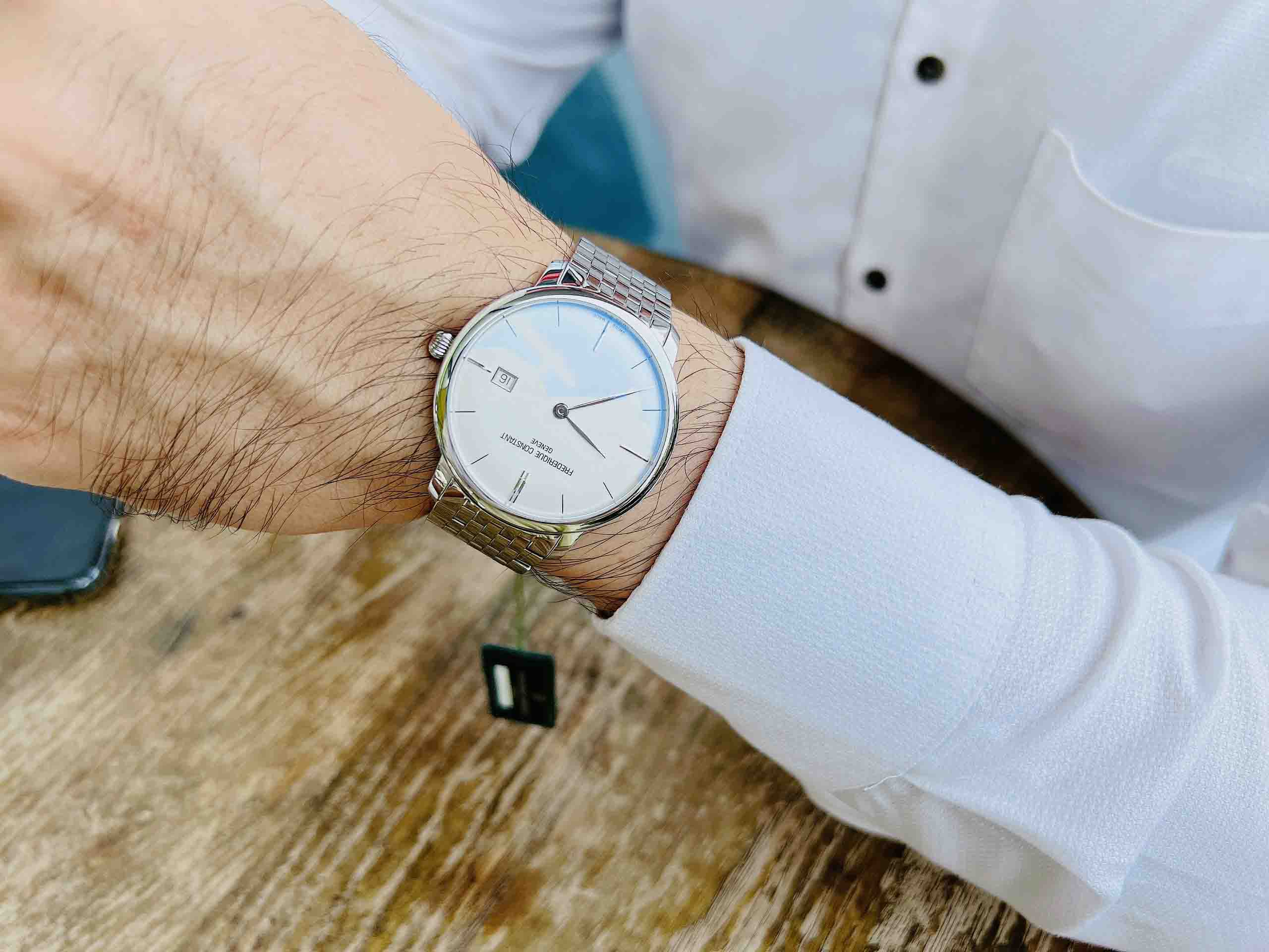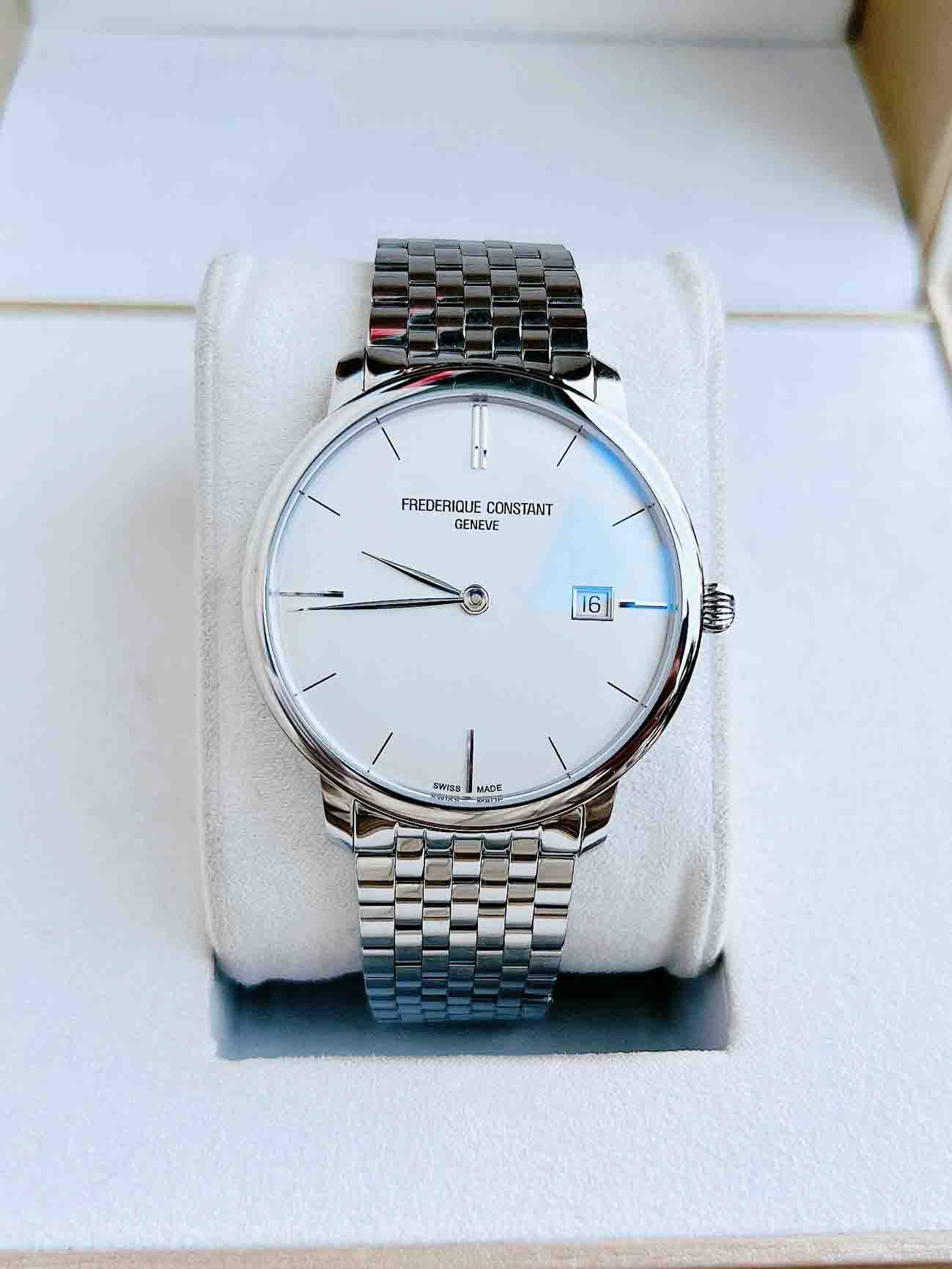 Frederique Constant một chiếc dress watch quá sang trọng, tinh tế và đẳng cấp. Lấy cảm hứng từ sự đơn giản cùng một chút nét cổ điển các kỹ sư của FC đã chế tác một tác phẩm hoản hảo về mặt thiết kế cùng với độ mỏng của chiếc đồng hồ cơ thuộc dòng Slimline chỉ 8.3 mm