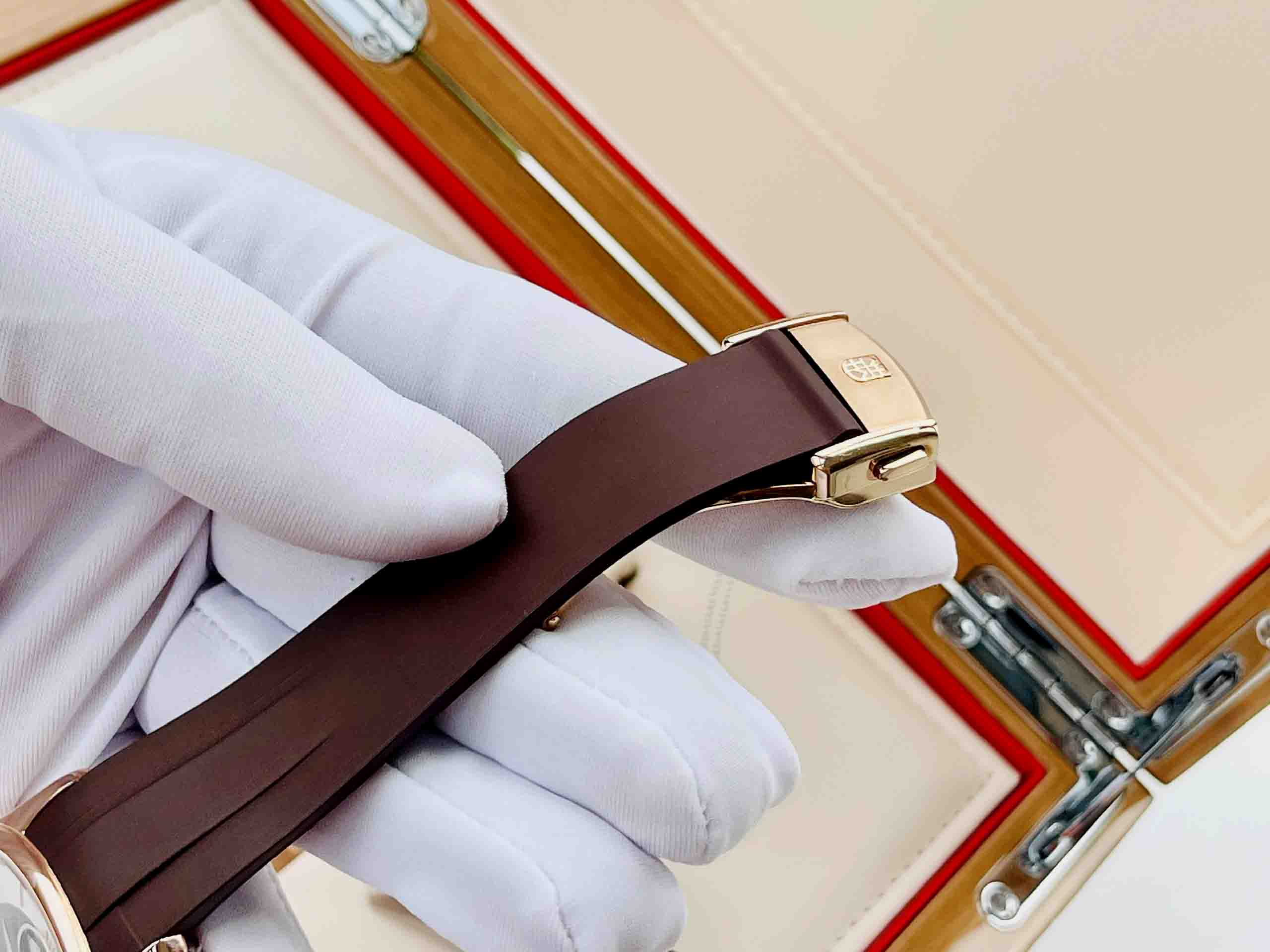 – Vỏ mạ vàng hồng PVD sang trọng kết hợp dia xanh tuyệt đẹp, bên cạnh đó là bộ dây rubber trẻ trung