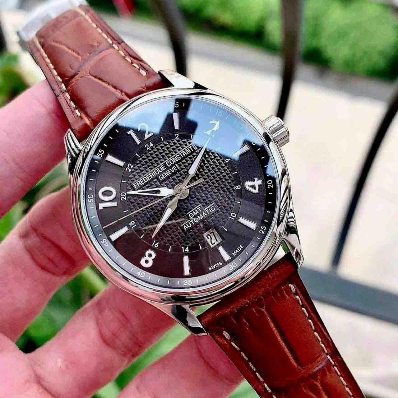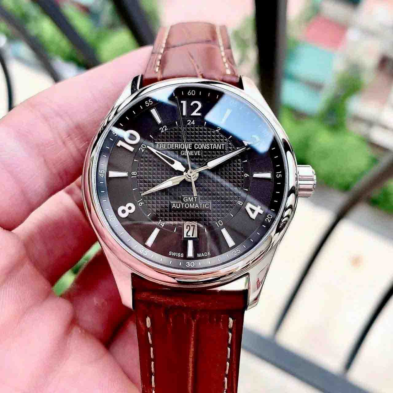 Chiếc đồng hồ cổ điển, thiết kế tỉ mỉ với giờ, phút, giây, ngày và một giờ GMT.