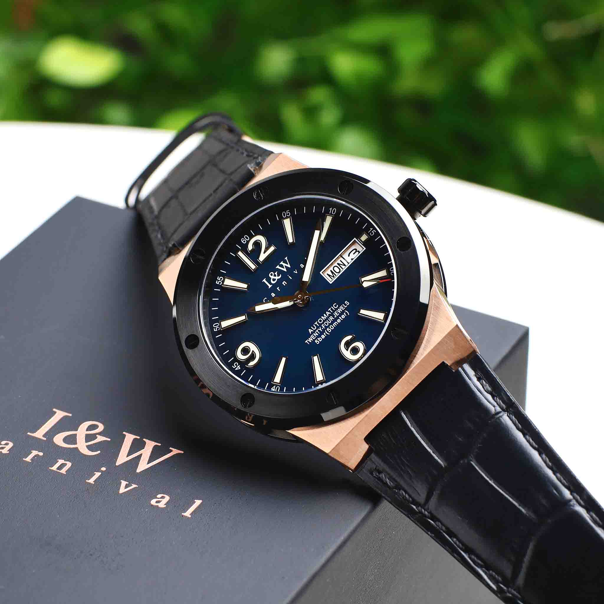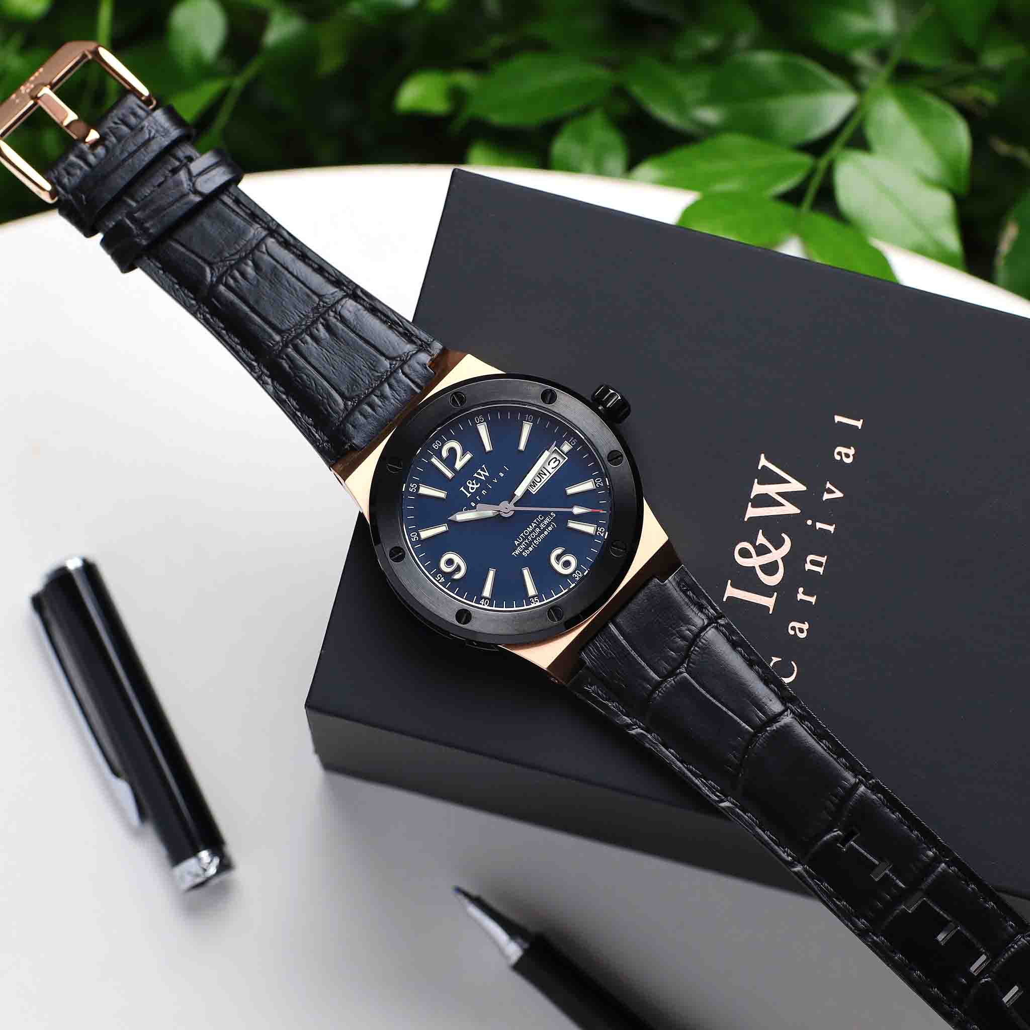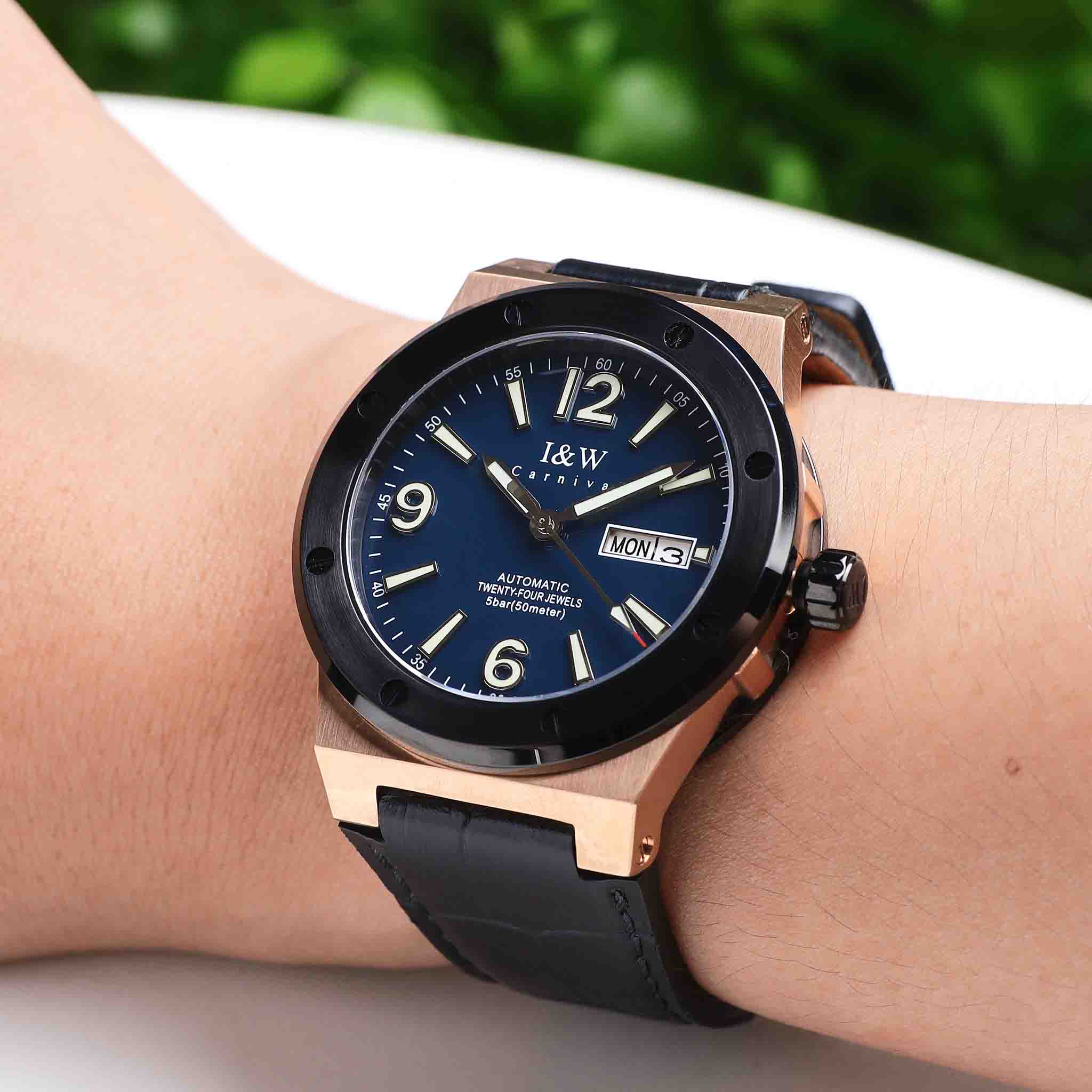 I&W Carnival 589G-VH-X1 Dây Da Automatic 42mm