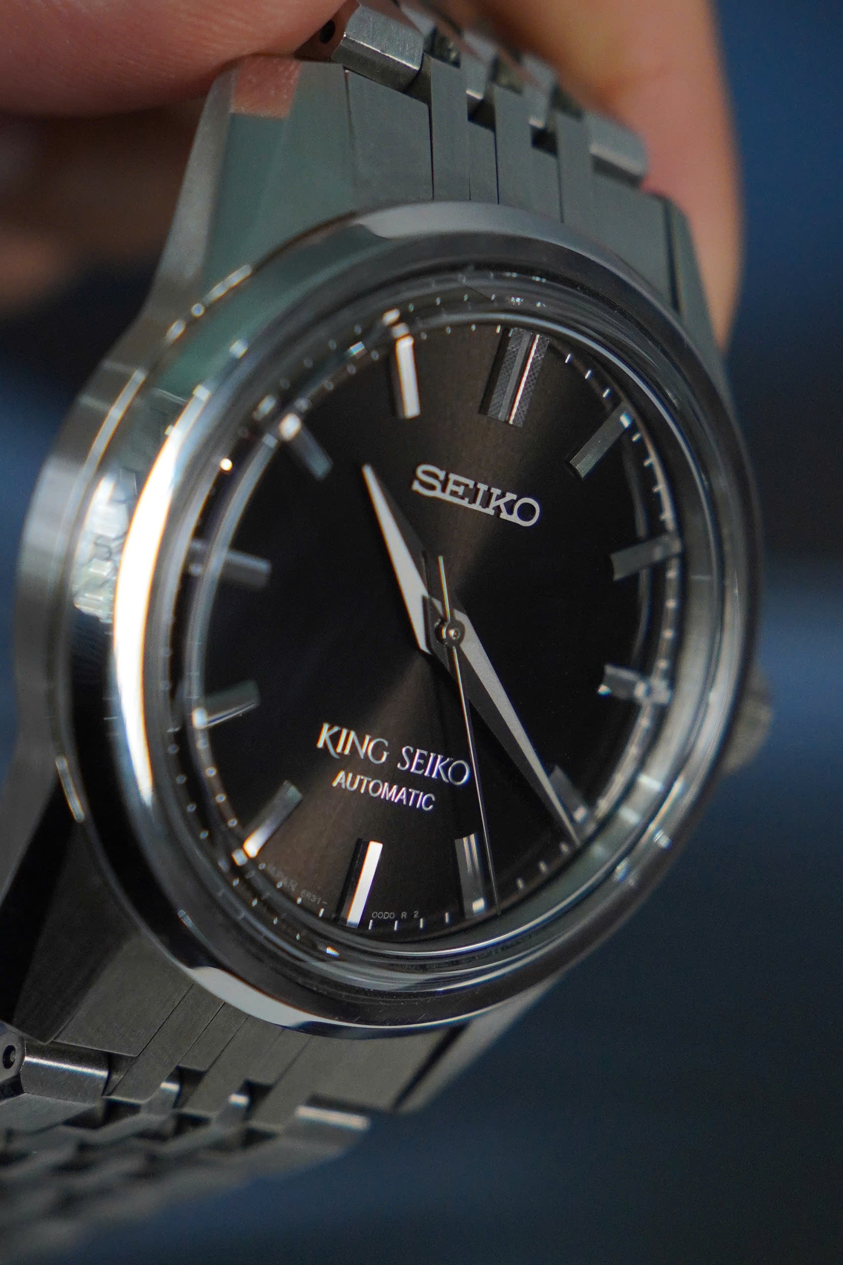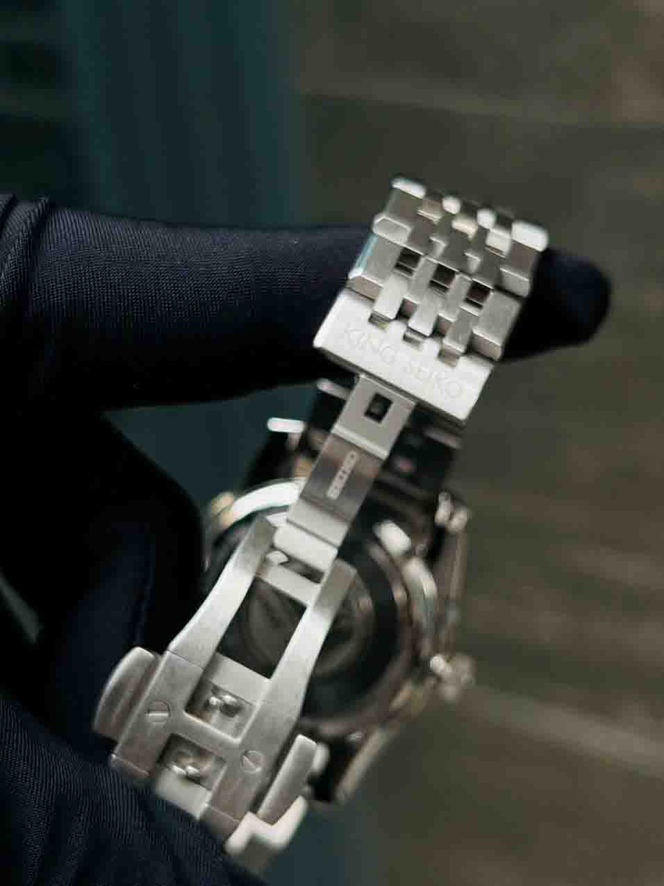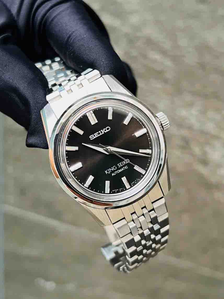 Dáng King Seiko cực dễ nhận dạng với các góc vác thẳng khỏe khoắn , mạnh mẽ. Dial Charcoal Grey đen ánh xám khói huyền ảo , kết hợp với bộ cọc số đặc trưng bắt sáng siêu tốt.