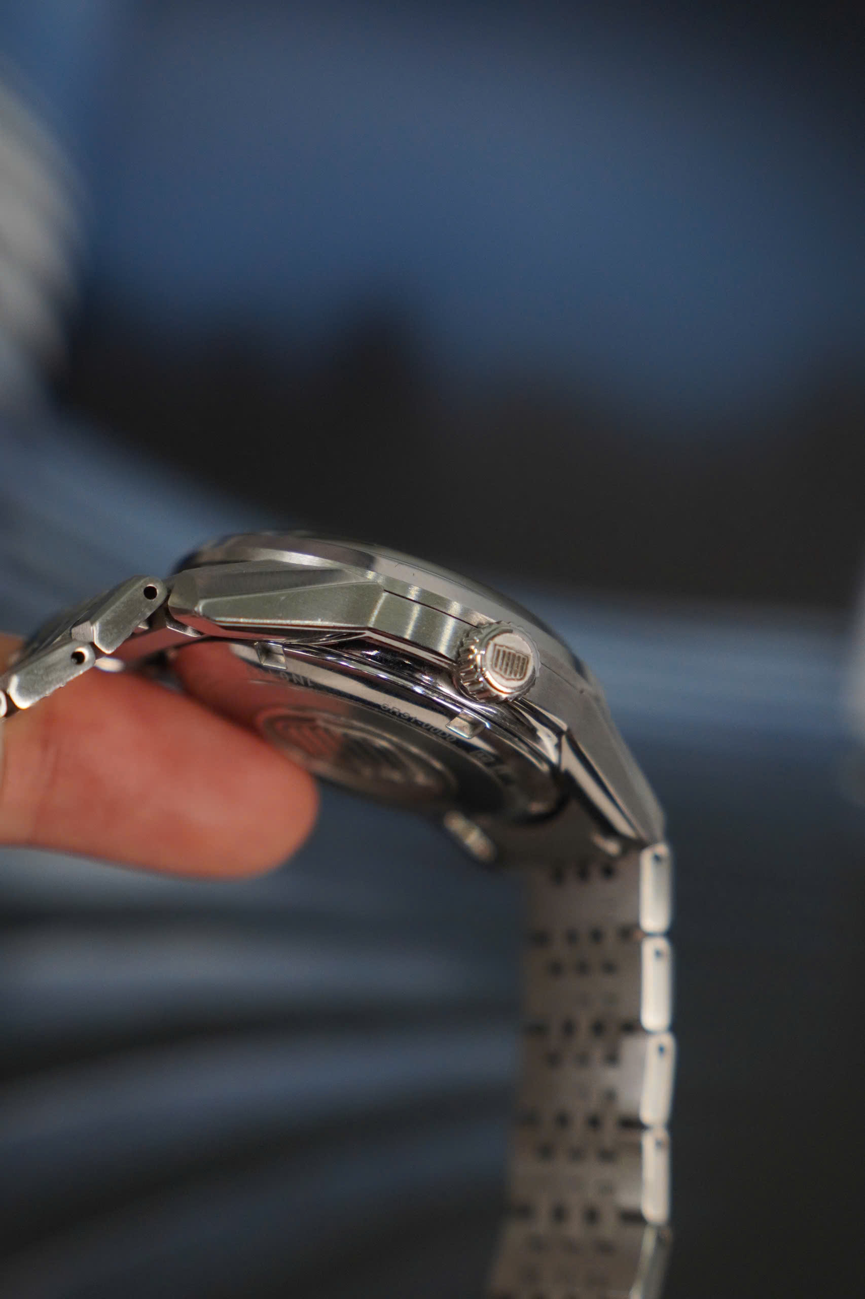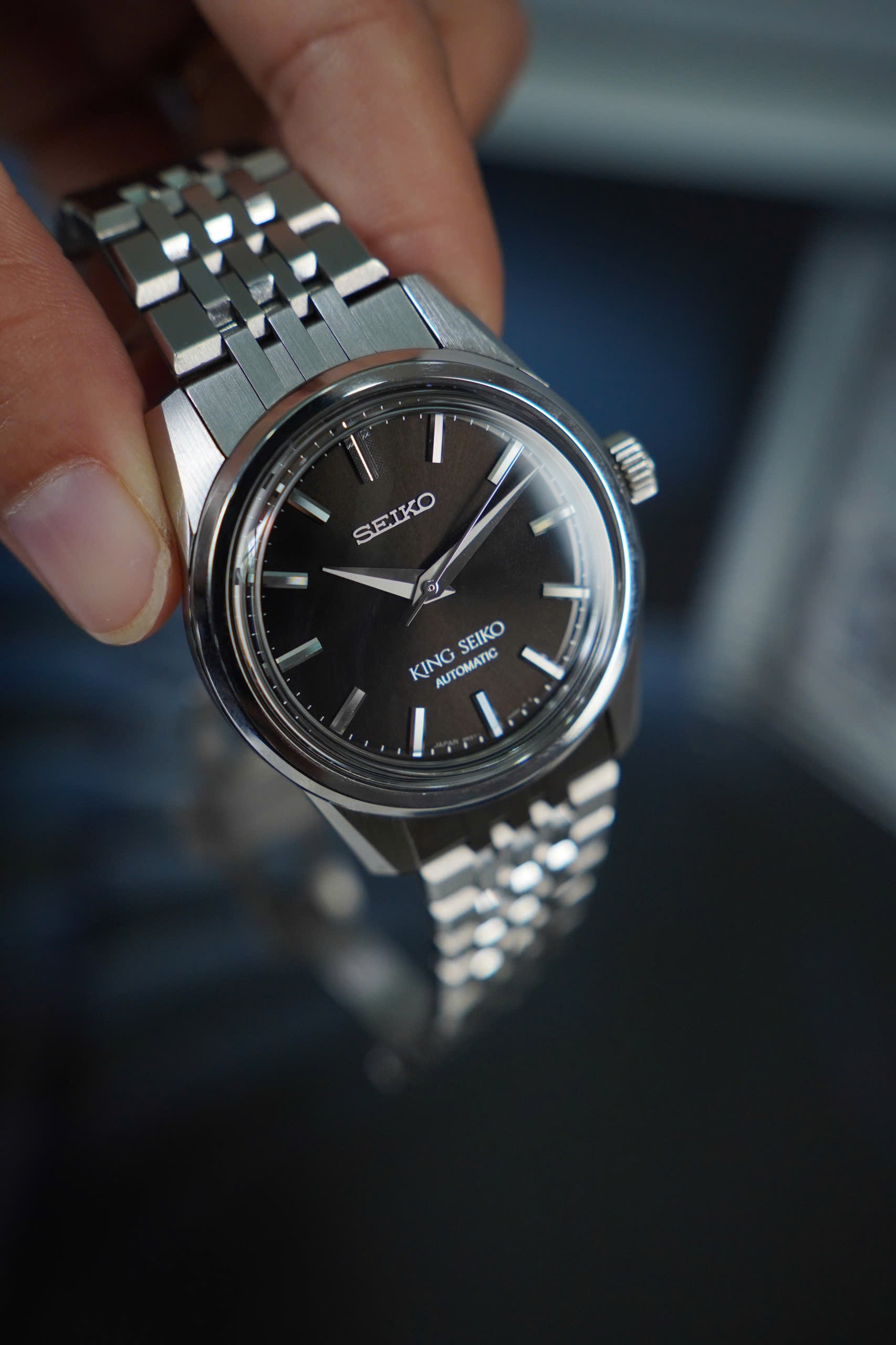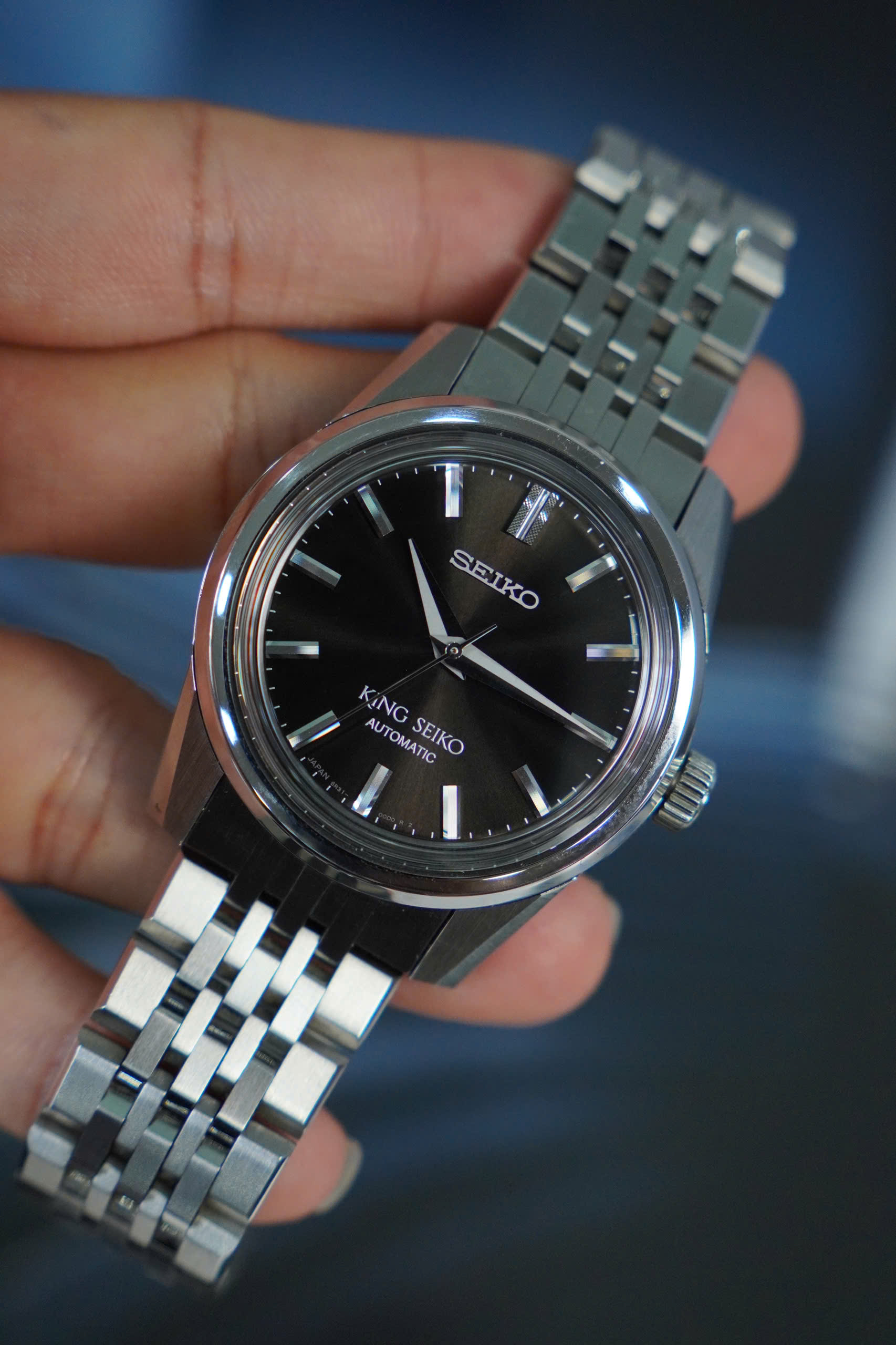 Dáng King Seiko cực dễ nhận dạng với các góc vác thẳng khỏe khoắn , mạnh mẽ. Dial Charcoal Grey đen ánh xám khói huyền ảo , kết hợp với bộ cọc số đặc trưng bắt sáng siêu tốt.