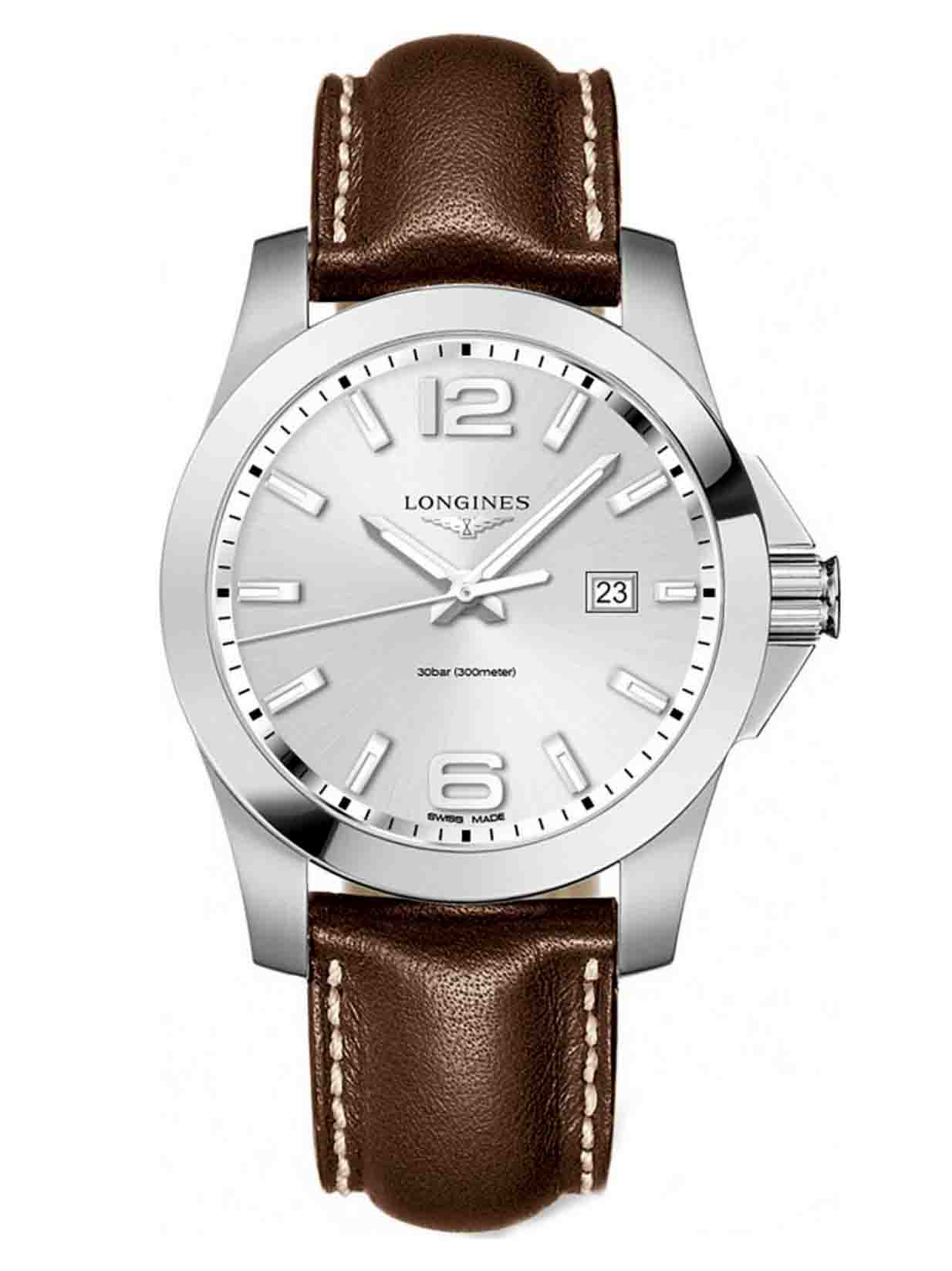 Tag: Longines Conquest Silver Dial Brown Leather Mens L3.760.4.76.5 ( L37604765 )