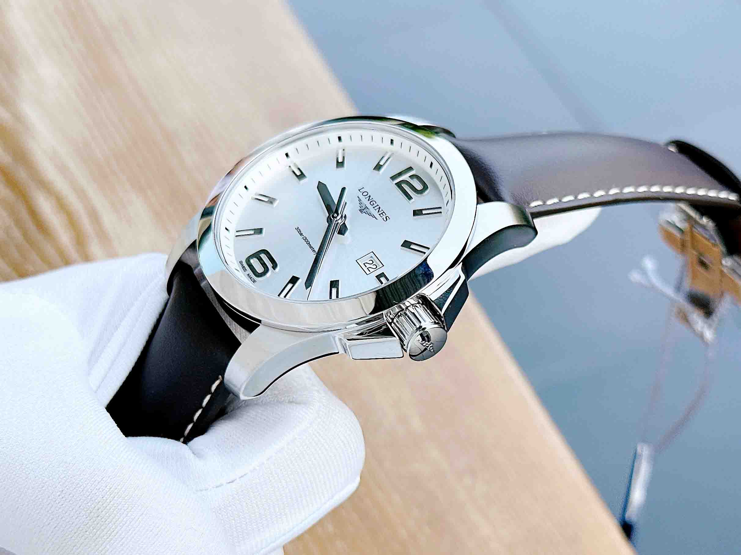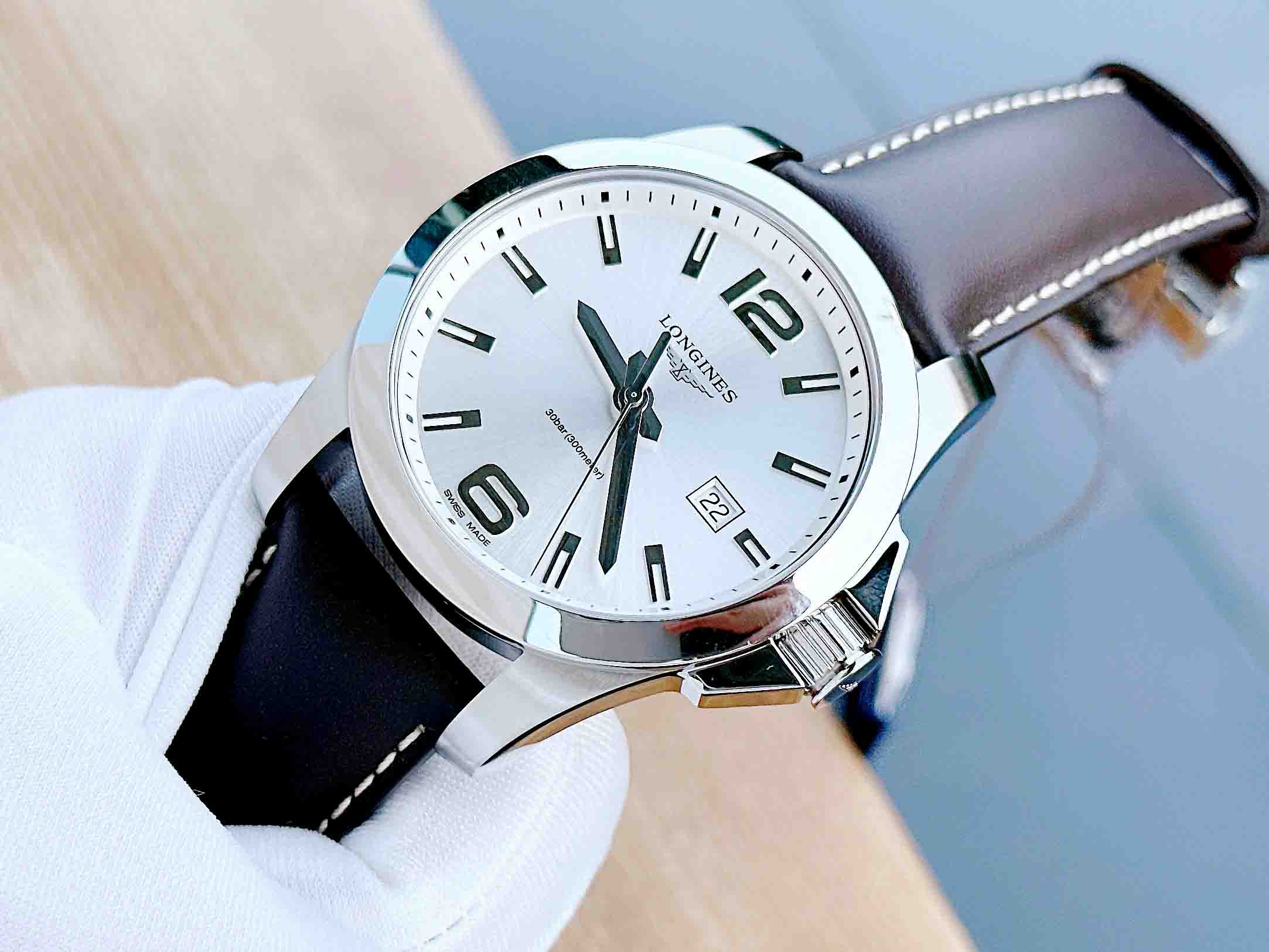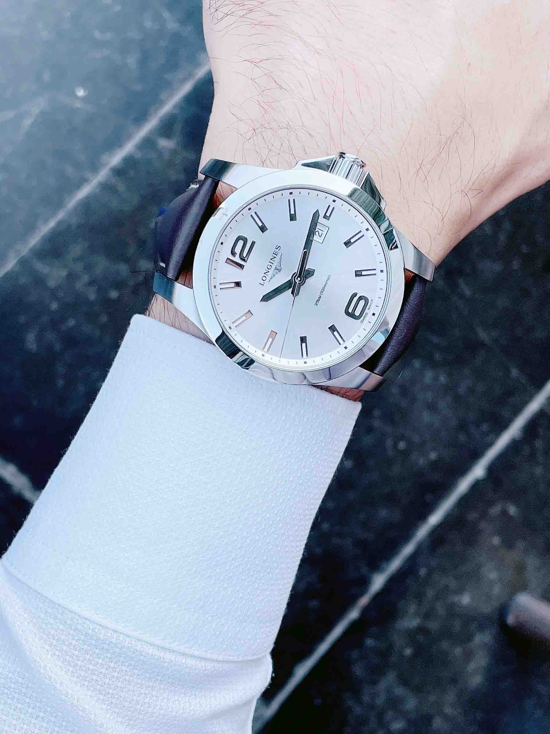 Tag: Longines Conquest Silver Dial Brown Leather Mens L3.760.4.76.5 ( L37604765 )