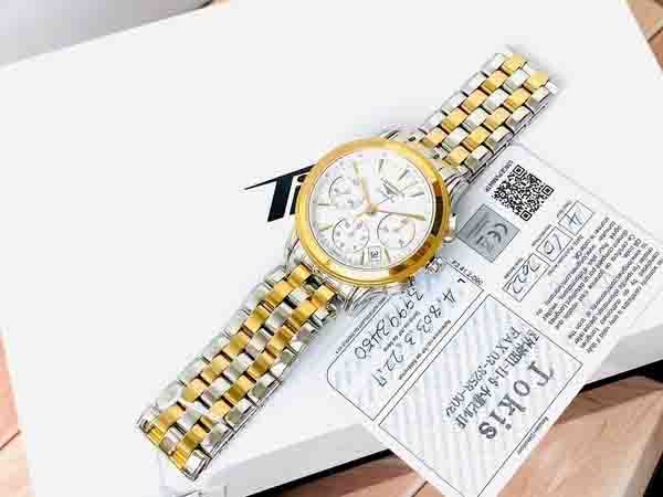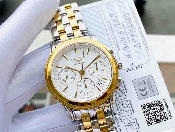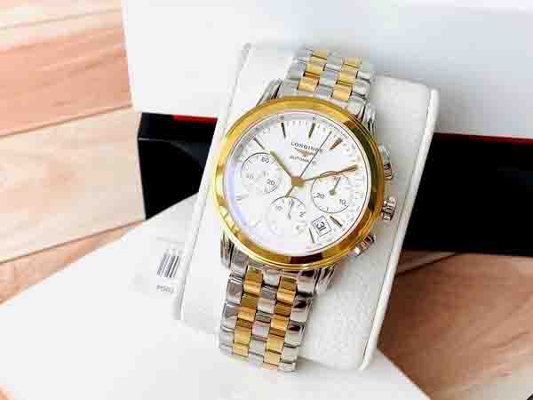 Một mẫu đh tuyệt đẹp đến từ BST Longines Flagship, Dial men trắng sứ đề mi gold, kết hợp bộ kim cọc vàng sang chảnh, dây thép đề mi gold, đầy đủ thẻ chứng nhận hãng BHTC